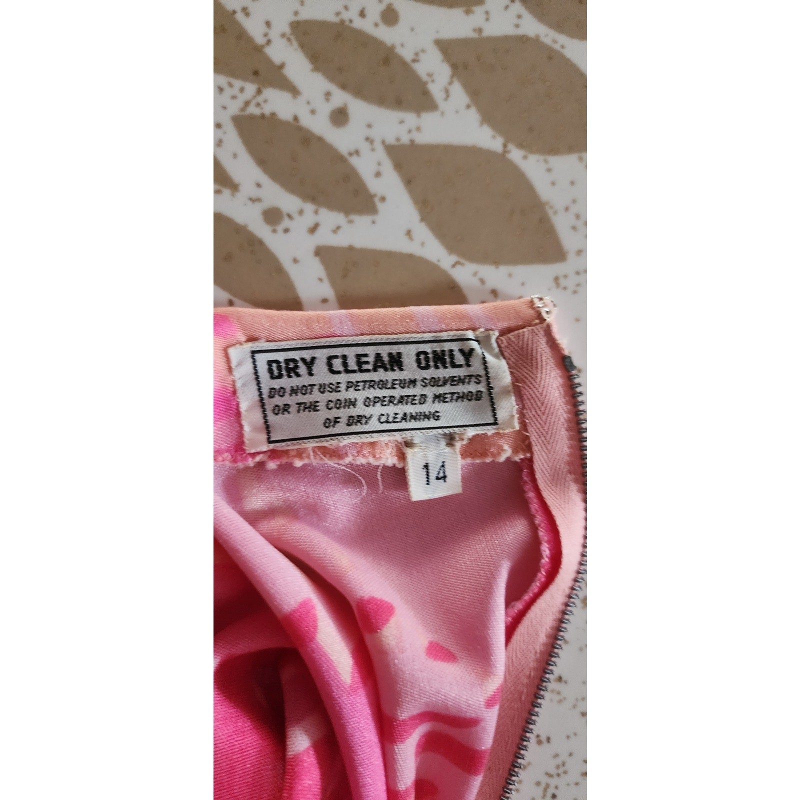 Vintage 1970s Maxi Dress Pink Red Geometric Print Rayon Jersey Stretch