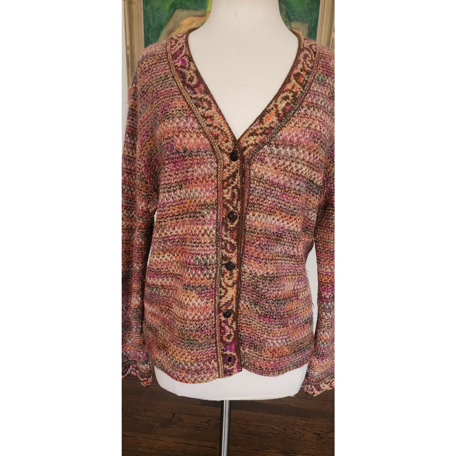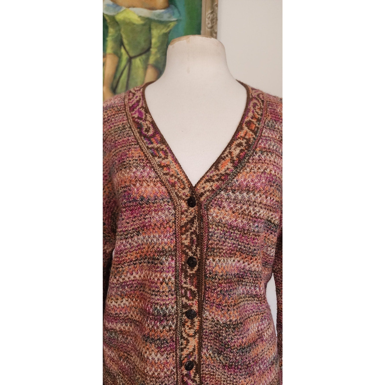 Vintage 1980s MISSONI Cardigan Sweater Orange Brown Red Tones