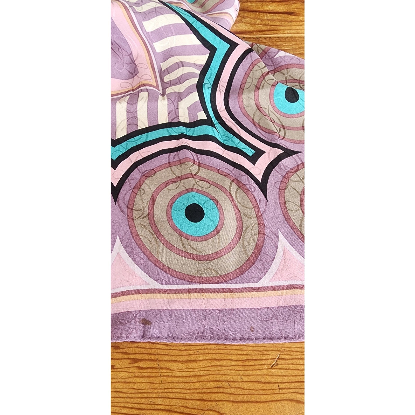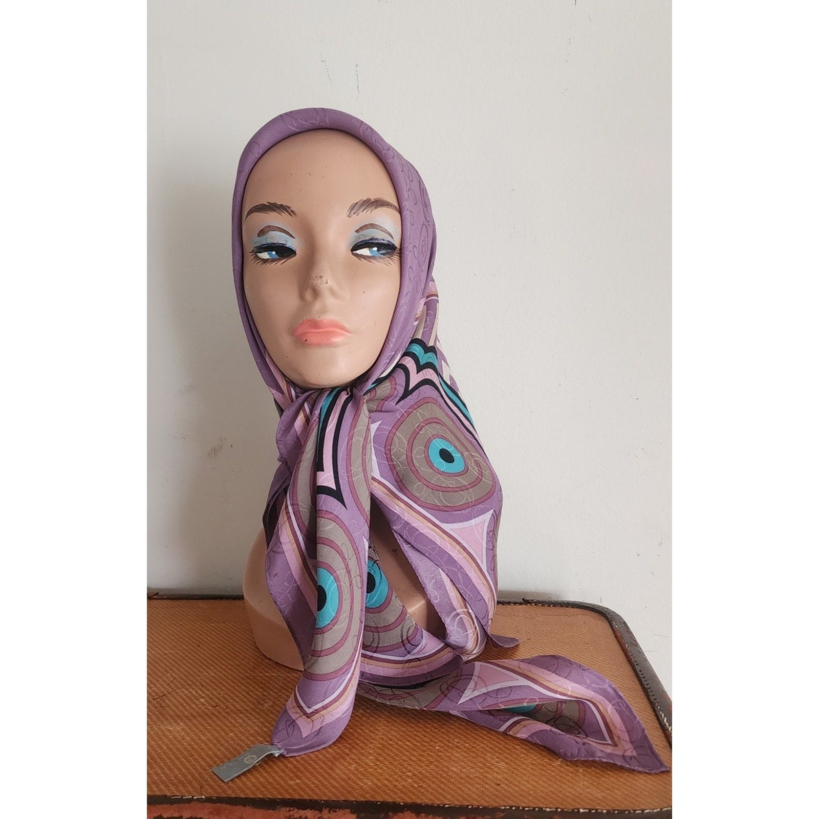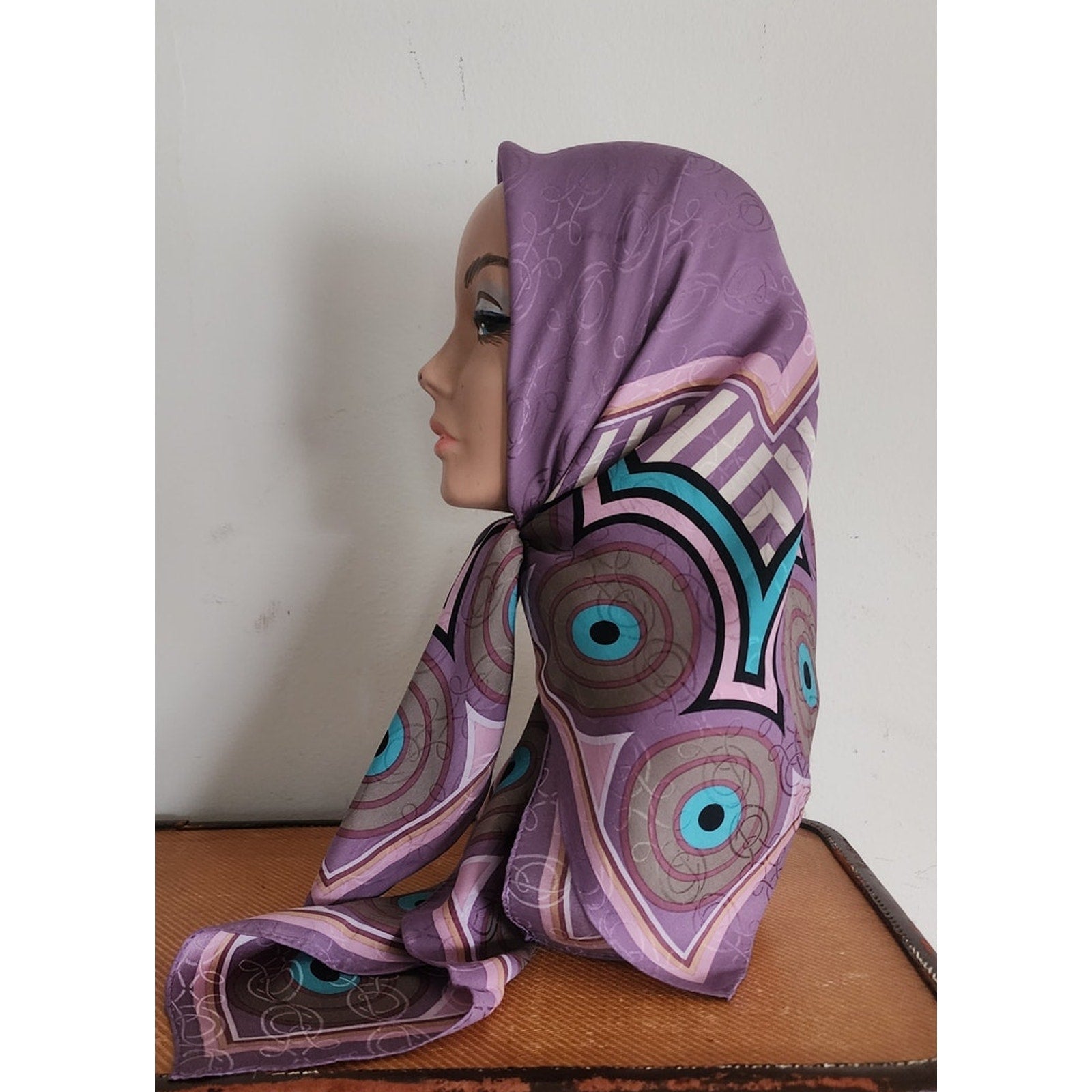 Vintage 1980s Oscar de la Renta Scarf Silk Print Pink Purple Spiral