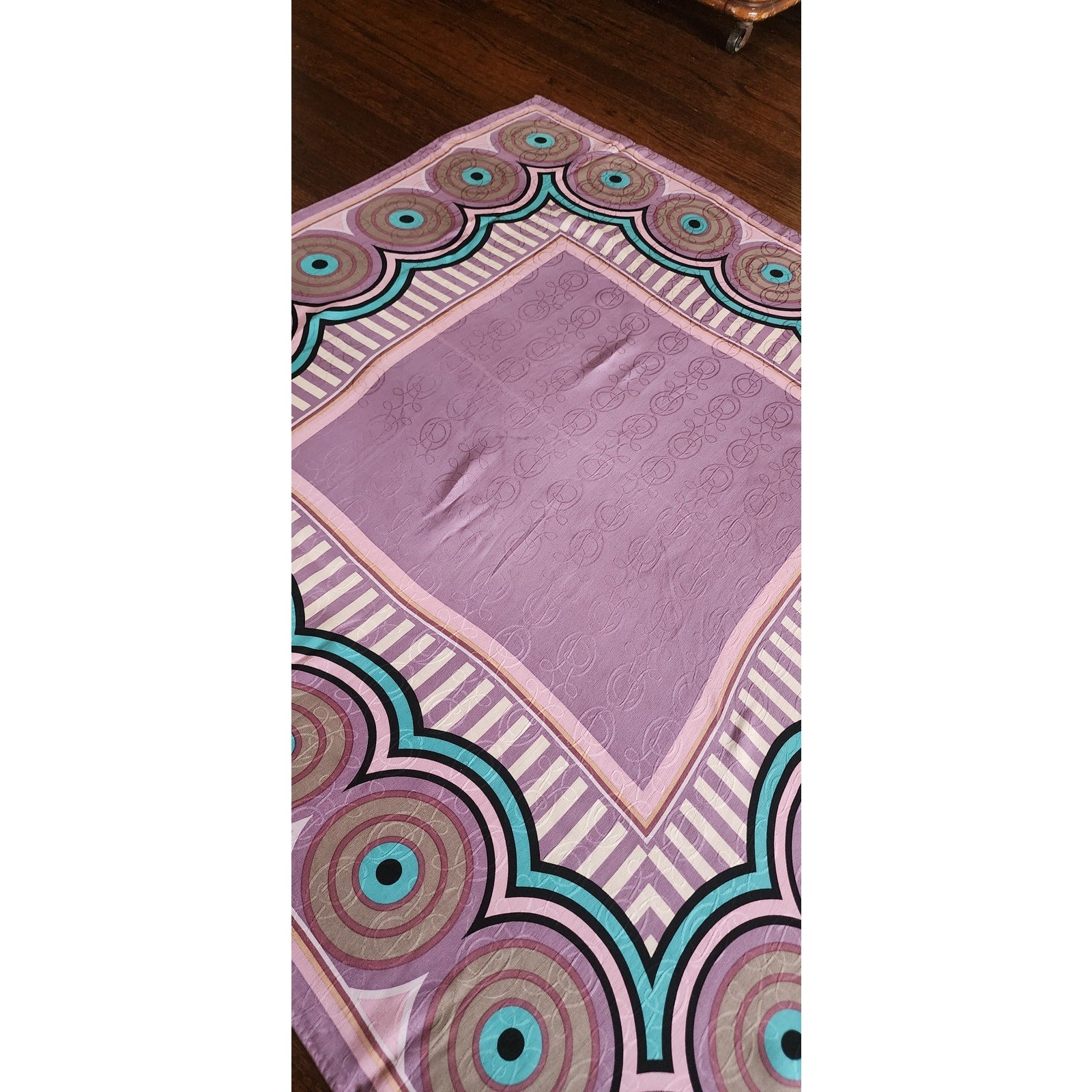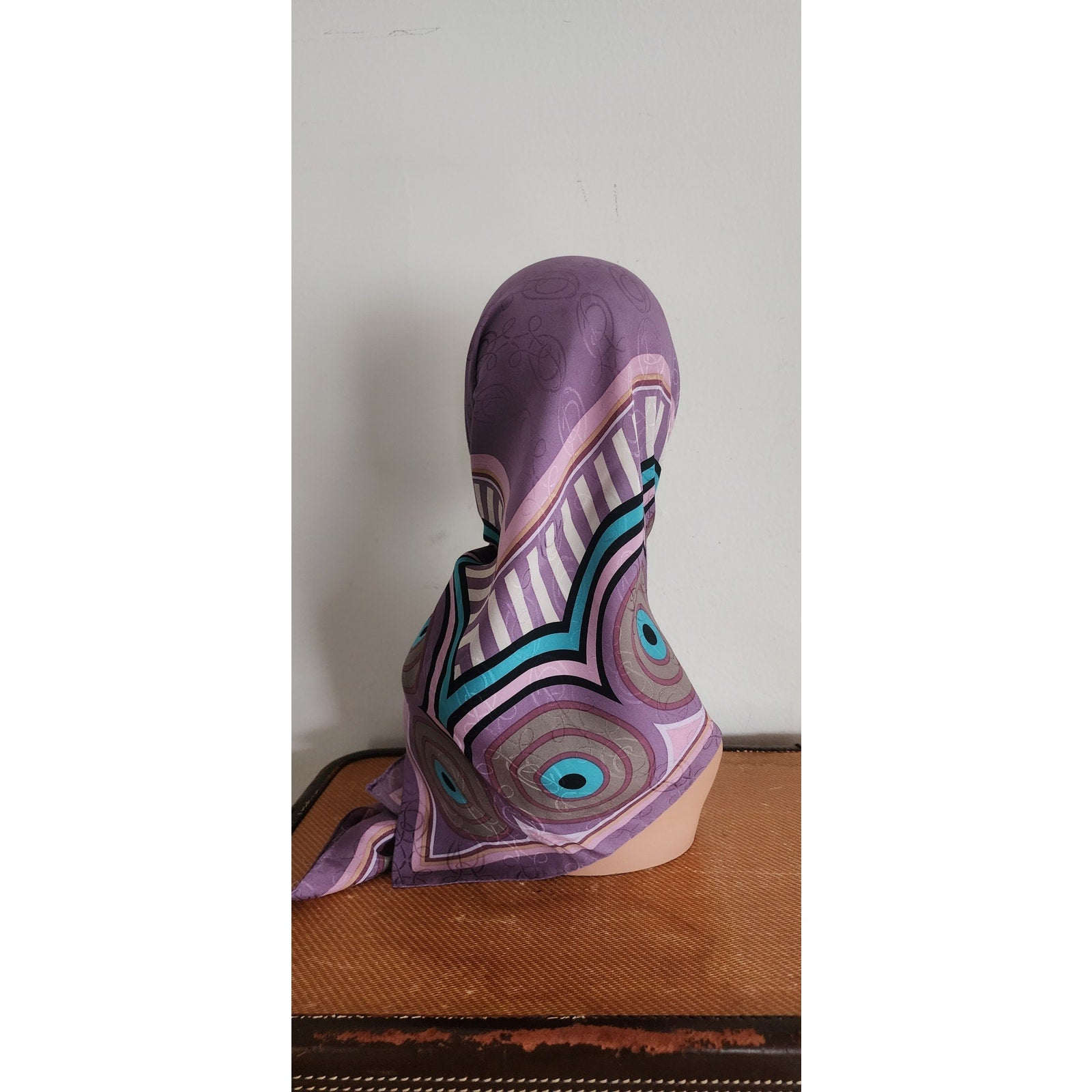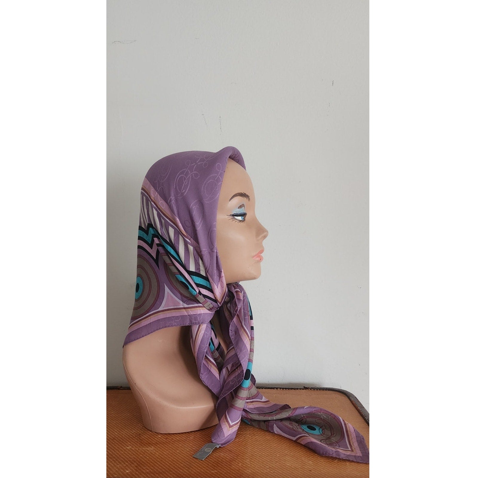 Vintage 1980s Oscar de la Renta Scarf Silk Print Pink Purple Spiral
