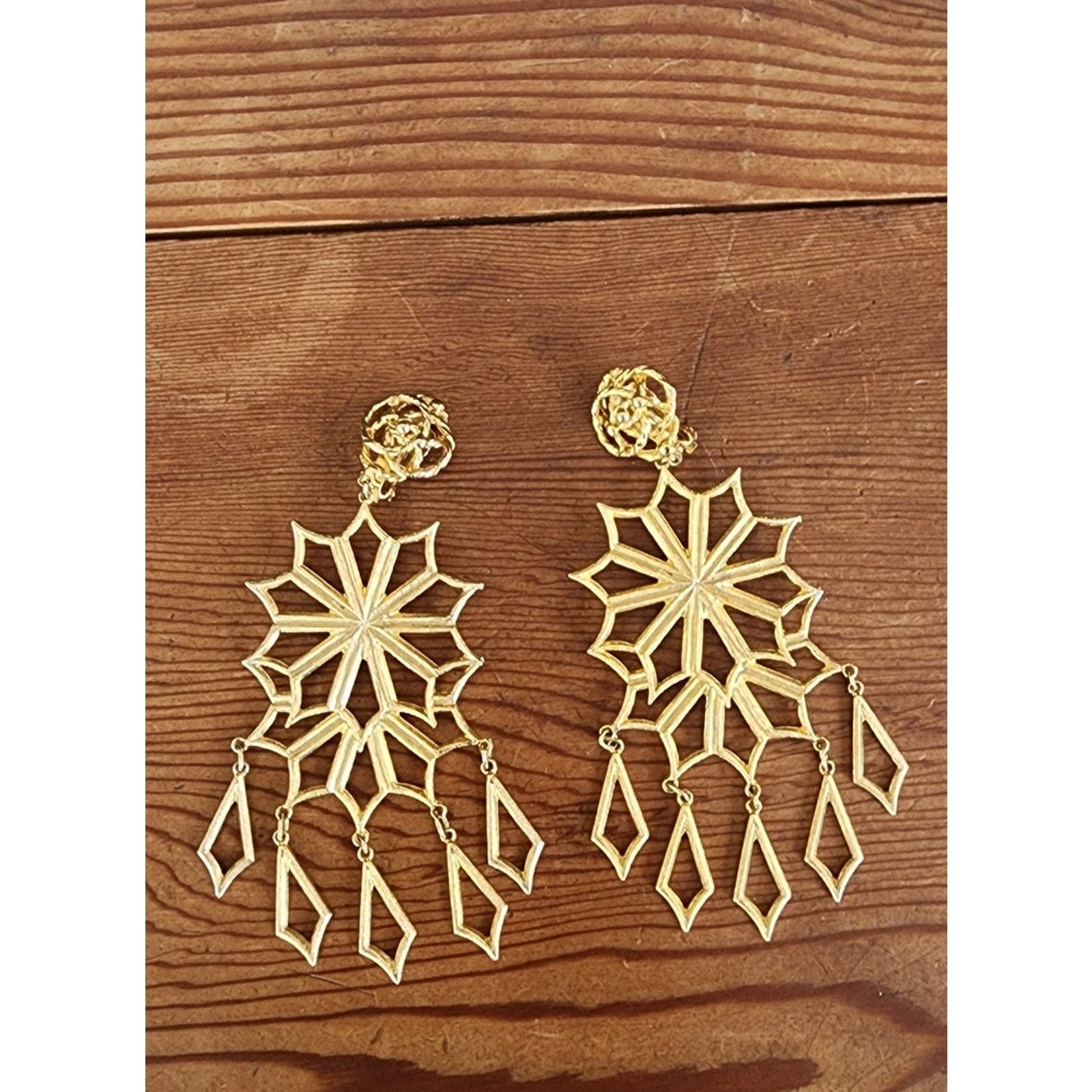 Vintage 1980s Oversized Earrings Gold Snowflake Starbursts