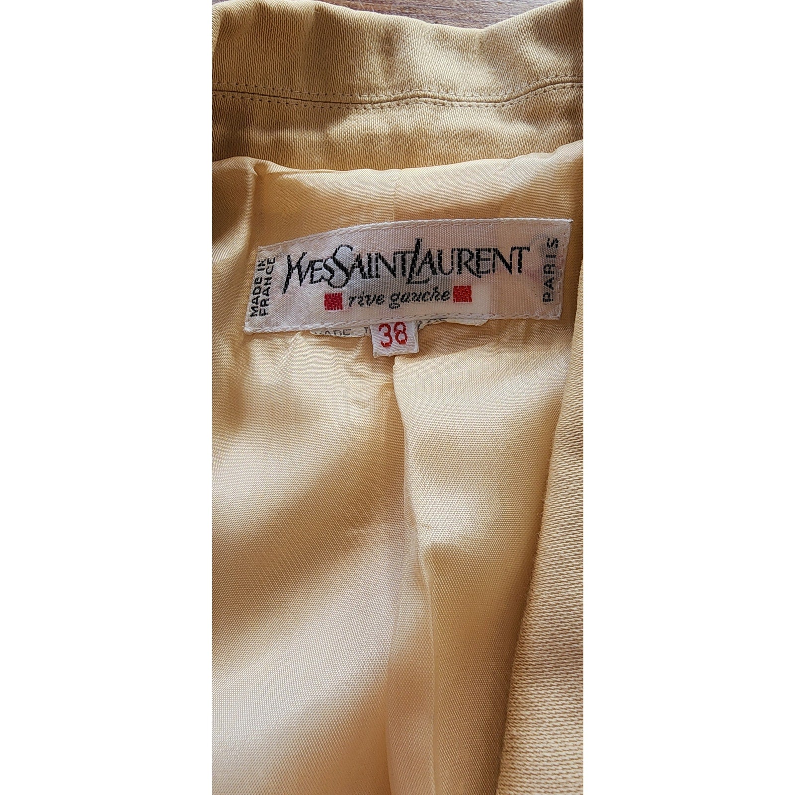 Vintage 80s Yves Saint Laurent Skirt Suit Cream Cotton Mini Skirt + Blazer
