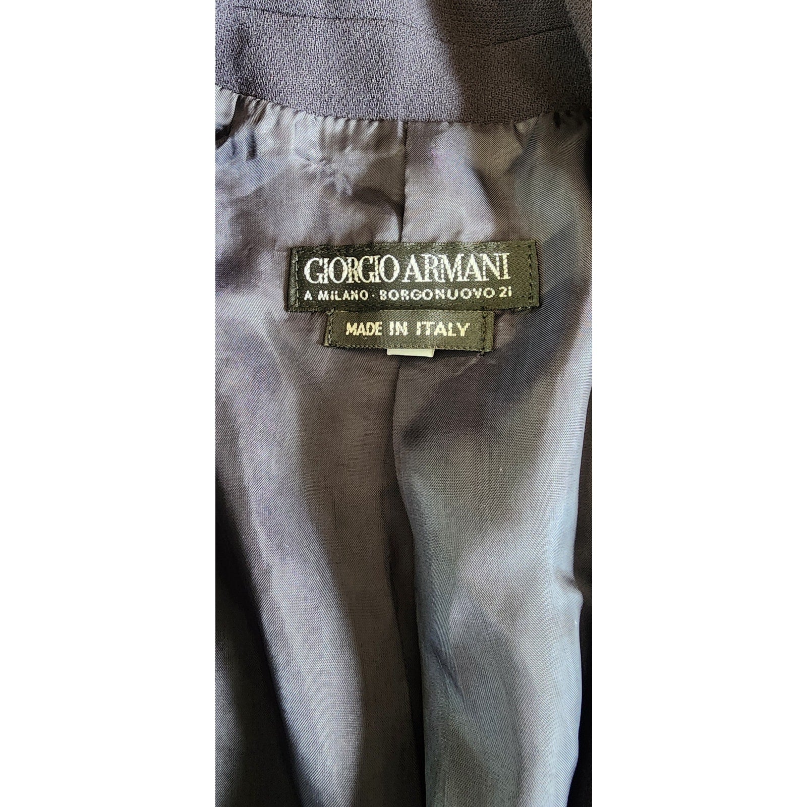Label: Giorgio Armani. Milano. Borgonuovo. Made in Italy