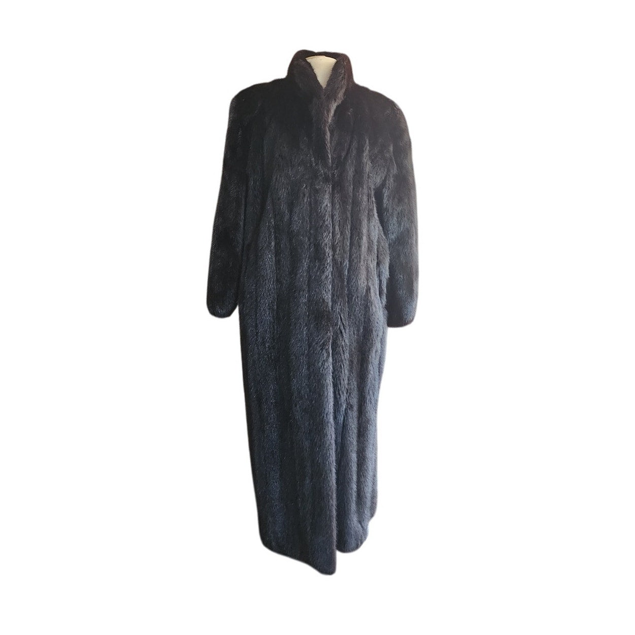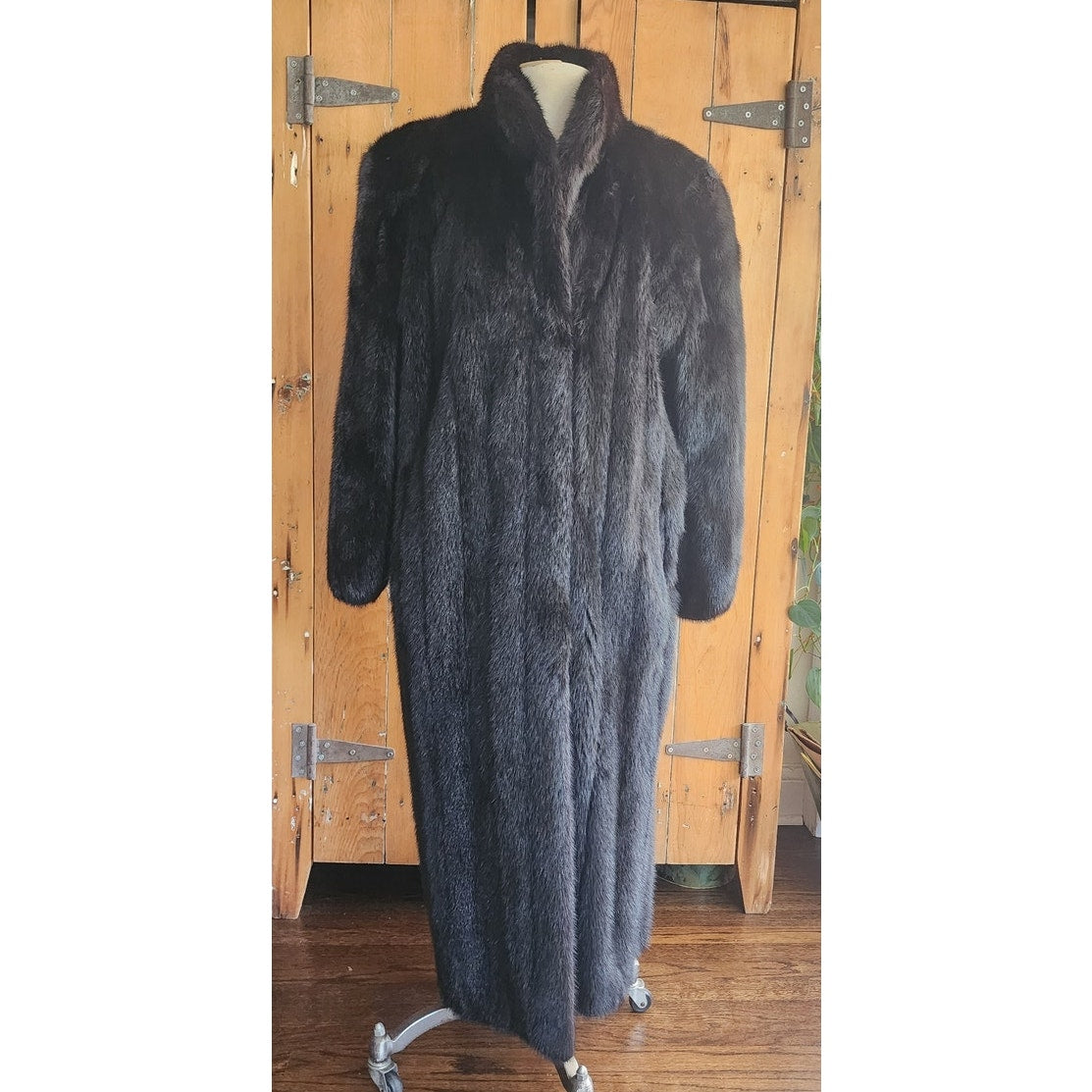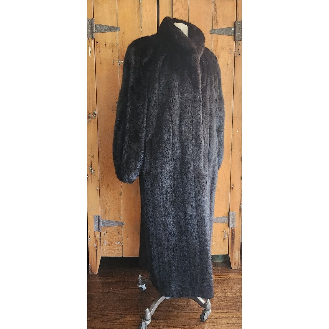 Vintage 1990s Black Ranch Mink Fur Coat Sized Medium to Large Evans Collection