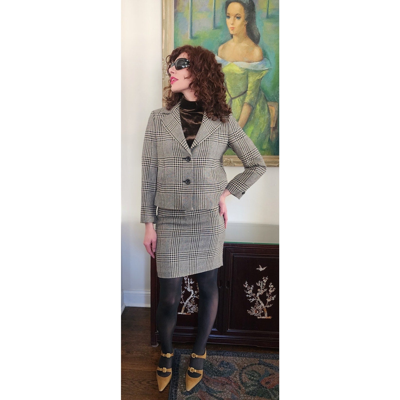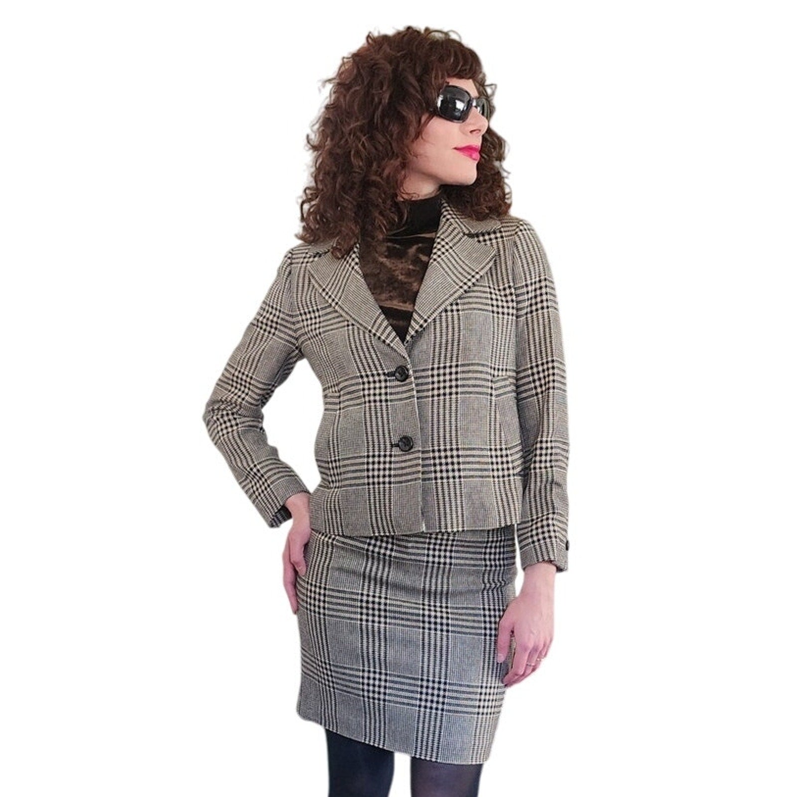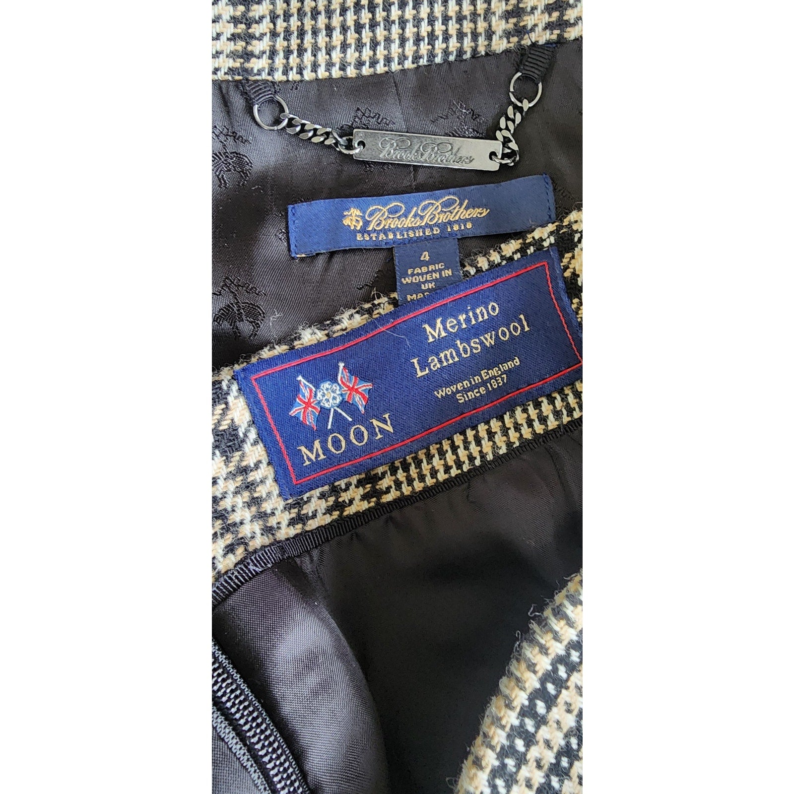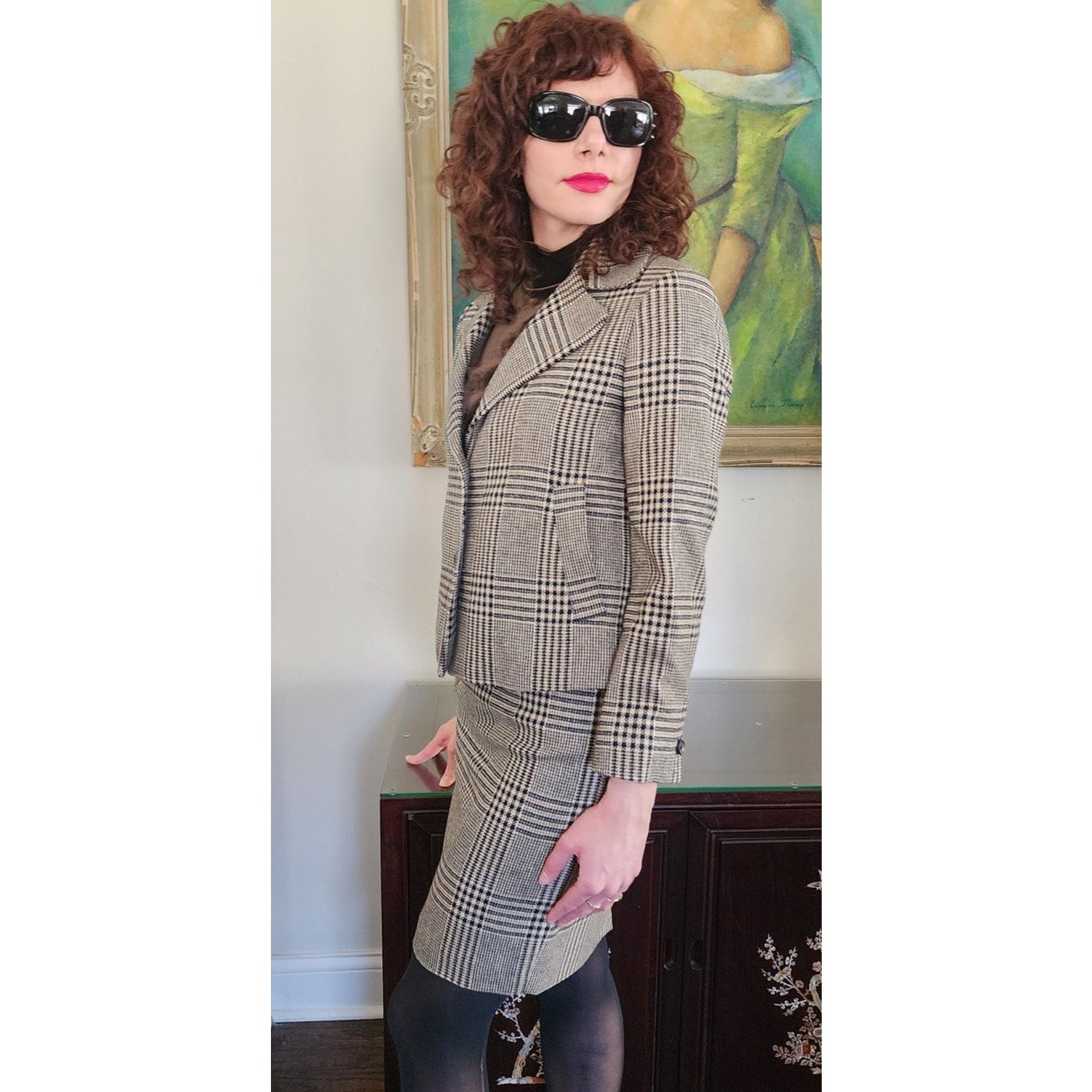 Vintage 1990s Brooks Brothers Skirt Suit Moon Wool Houndstooth Black White