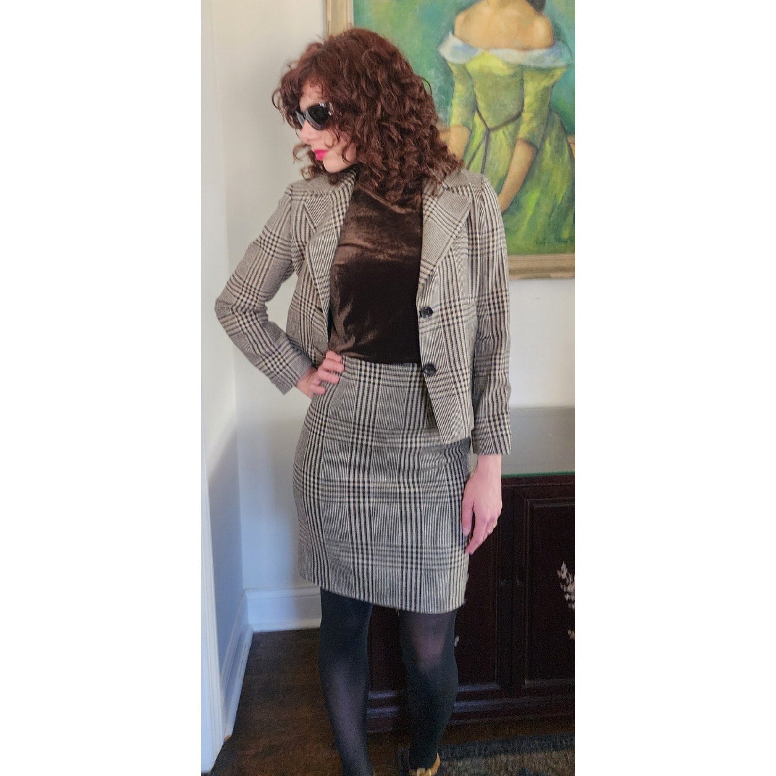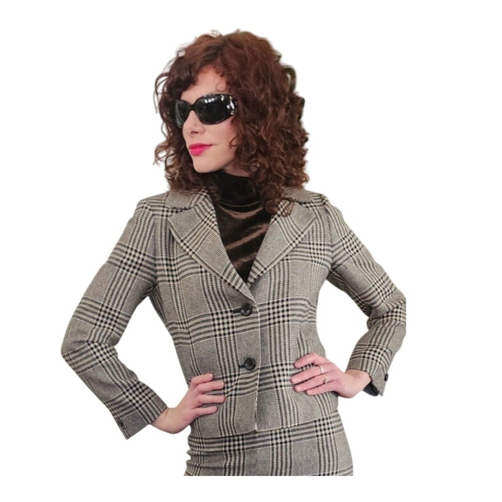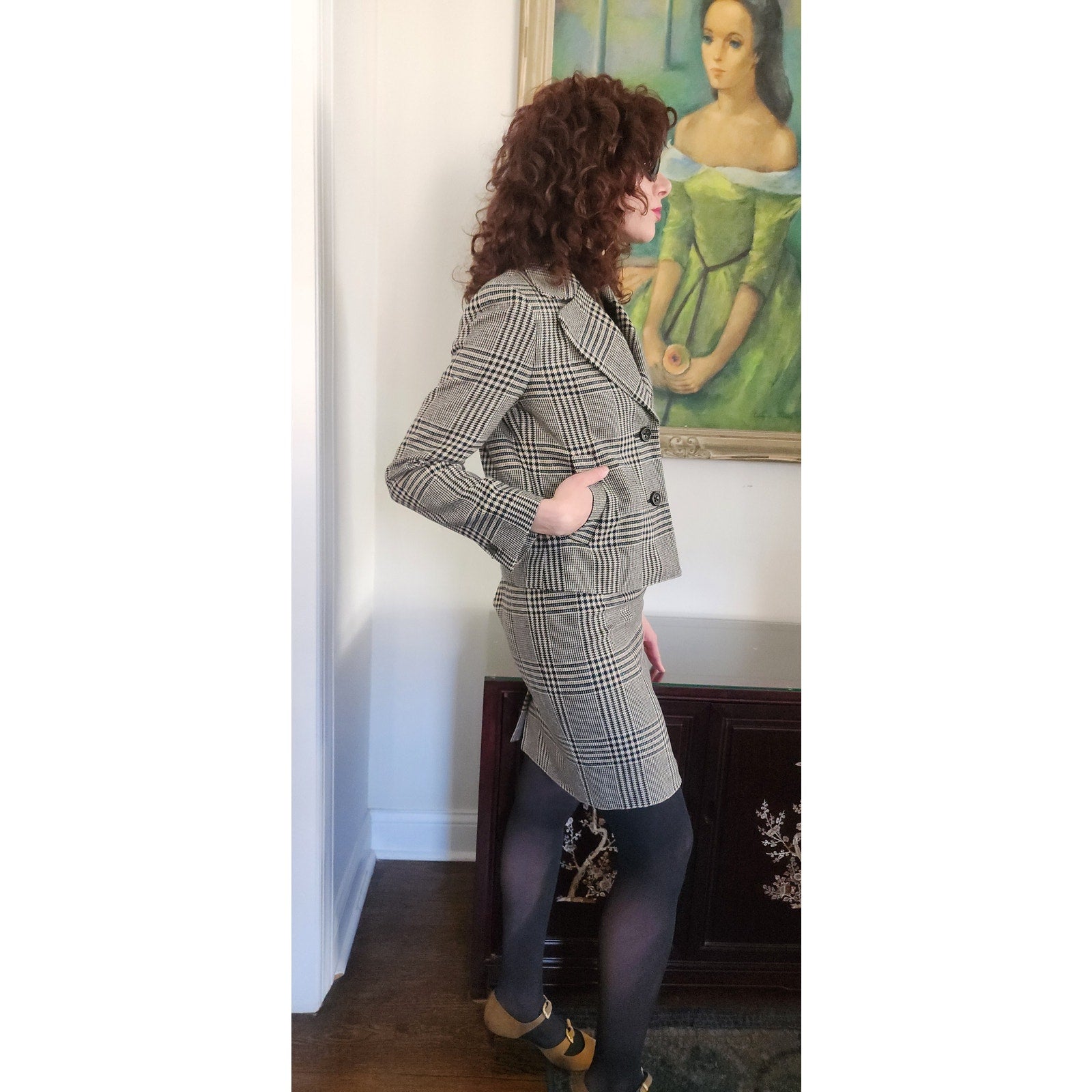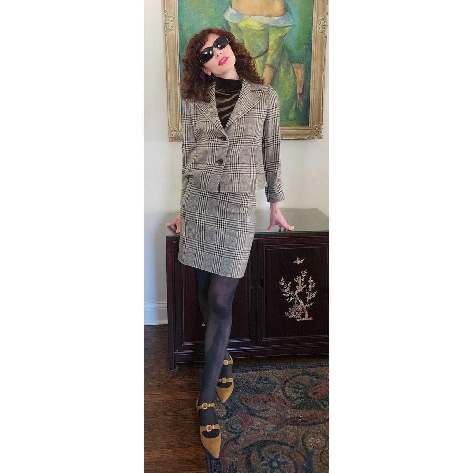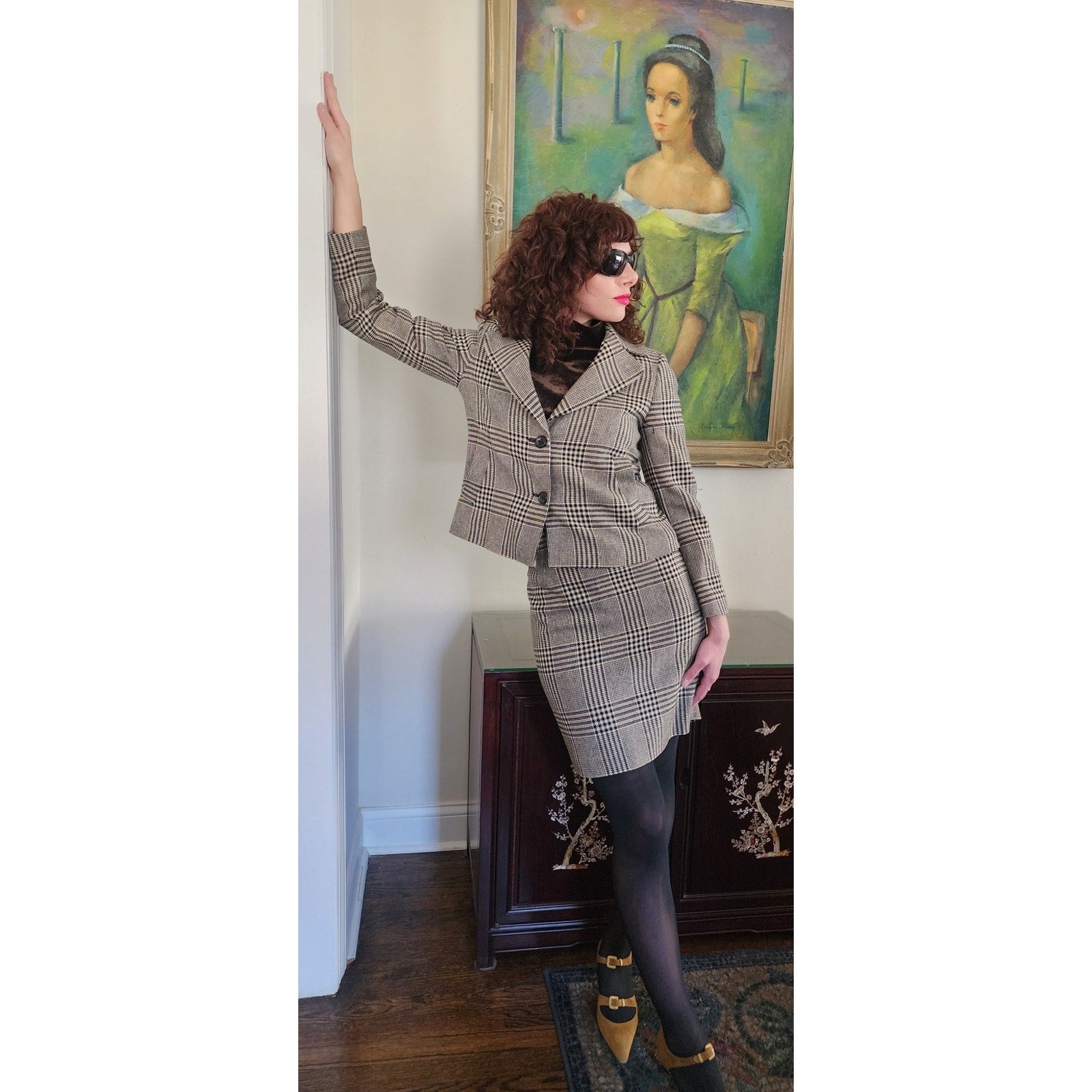 Vintage 1990s Brooks Brothers Skirt Suit Moon Wool Houndstooth Black White