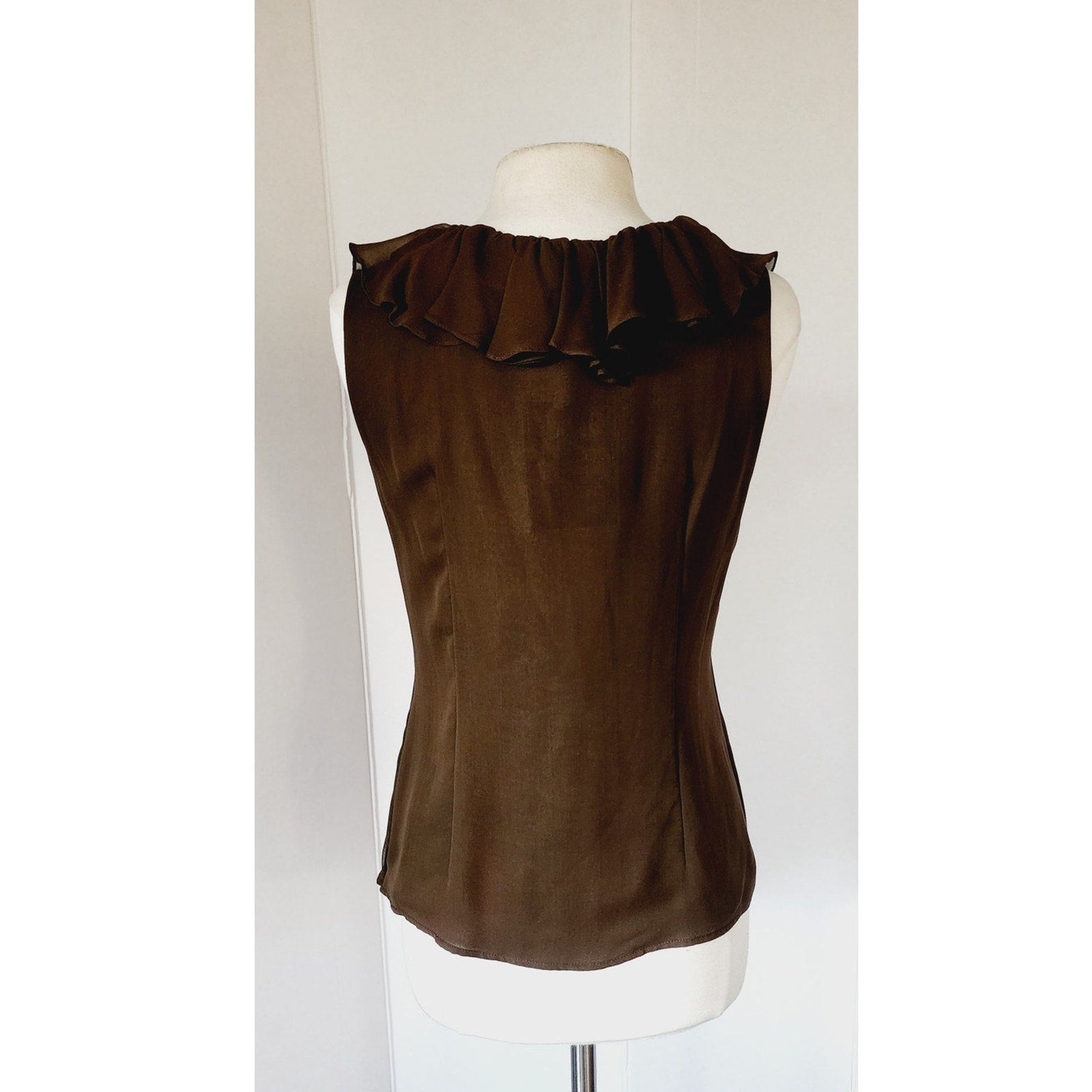 Vintage 2000s Oscar de la Renta Blouse Chiffon Silk Brown Top Ruffles NWT