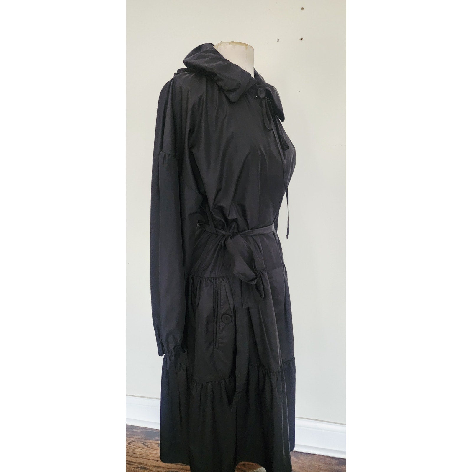Vintage 2000s Sonia Rykiel Coat Black Trench Belted Raincoat Ruffled Skirt + Hood / M