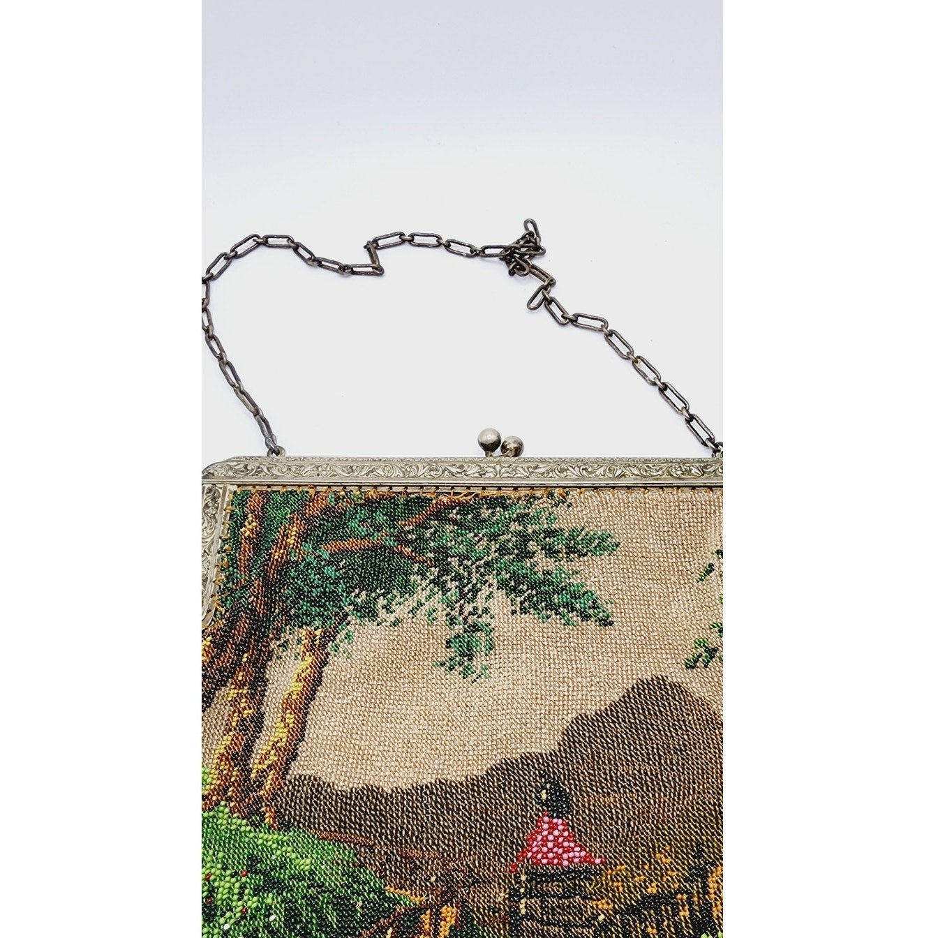Vintage 20s Beaded Bag Pictorial Landscape Scene