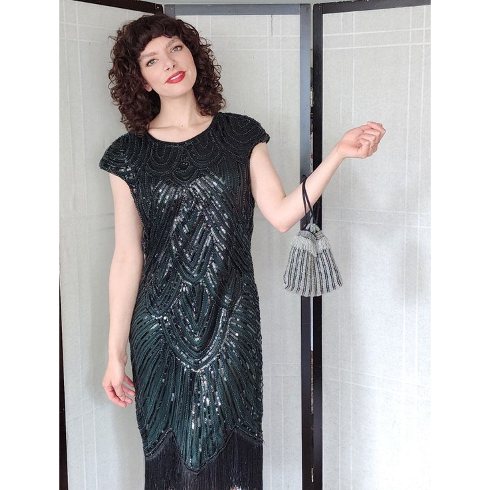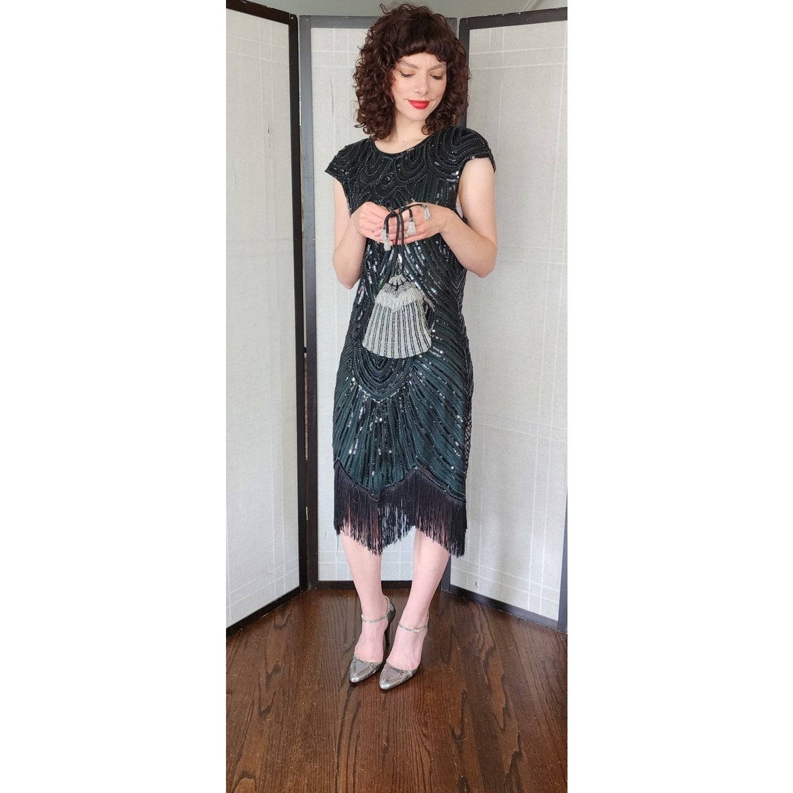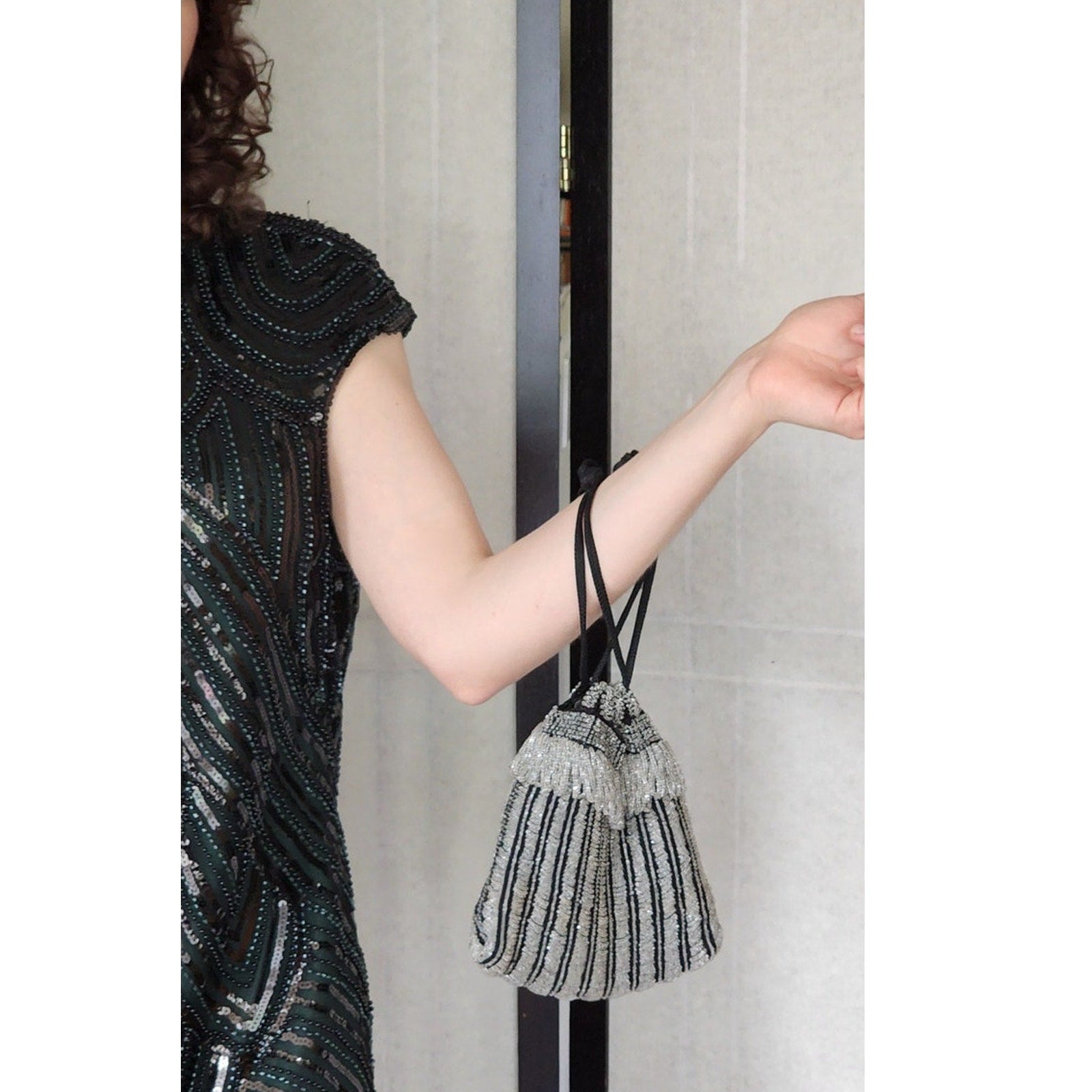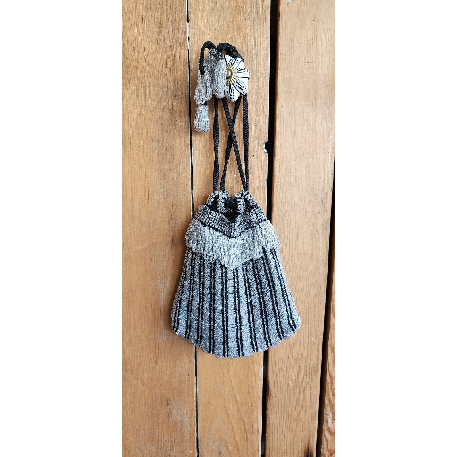 Vintage 20s Beaded Evening Bag Black Silk Pouch Flapper Purse