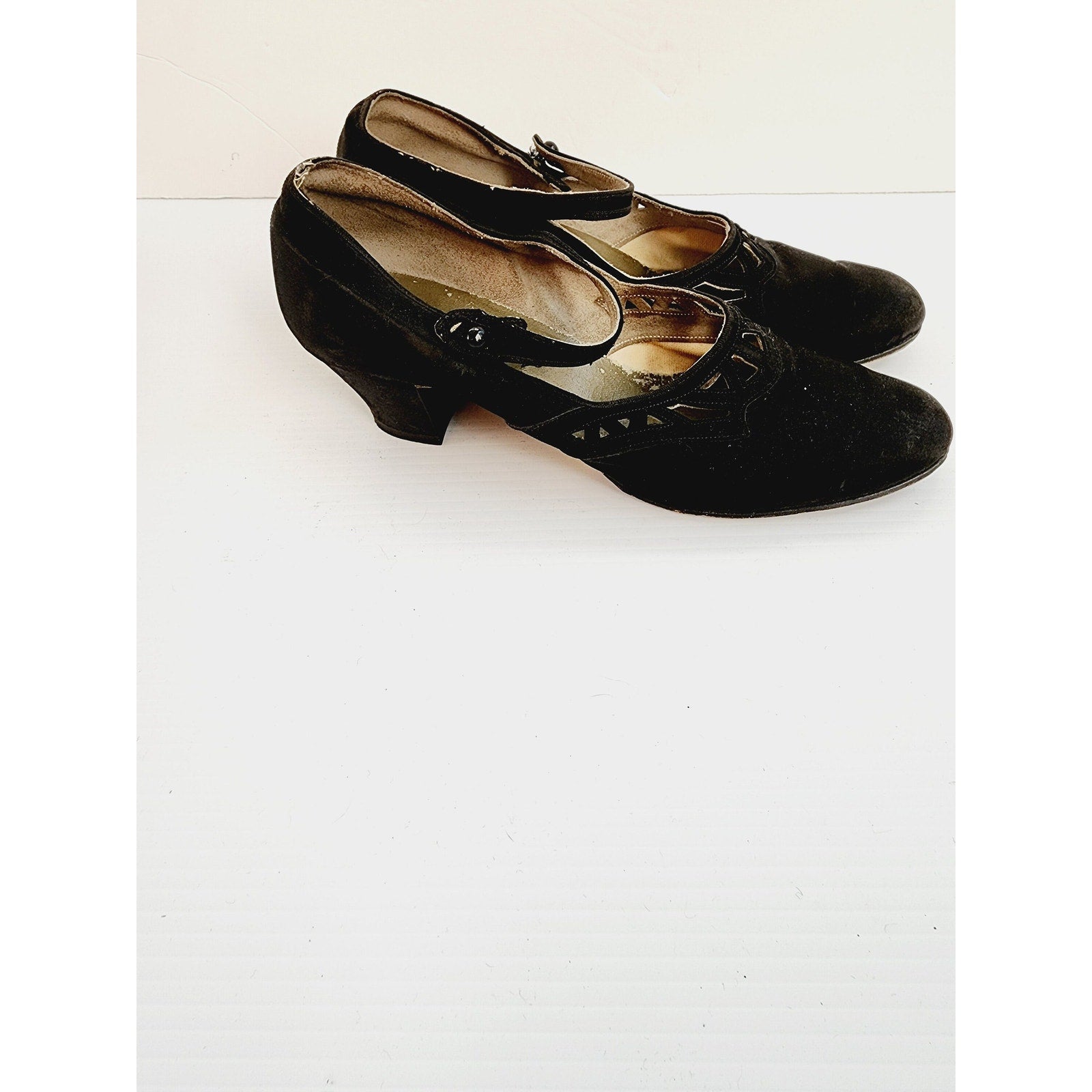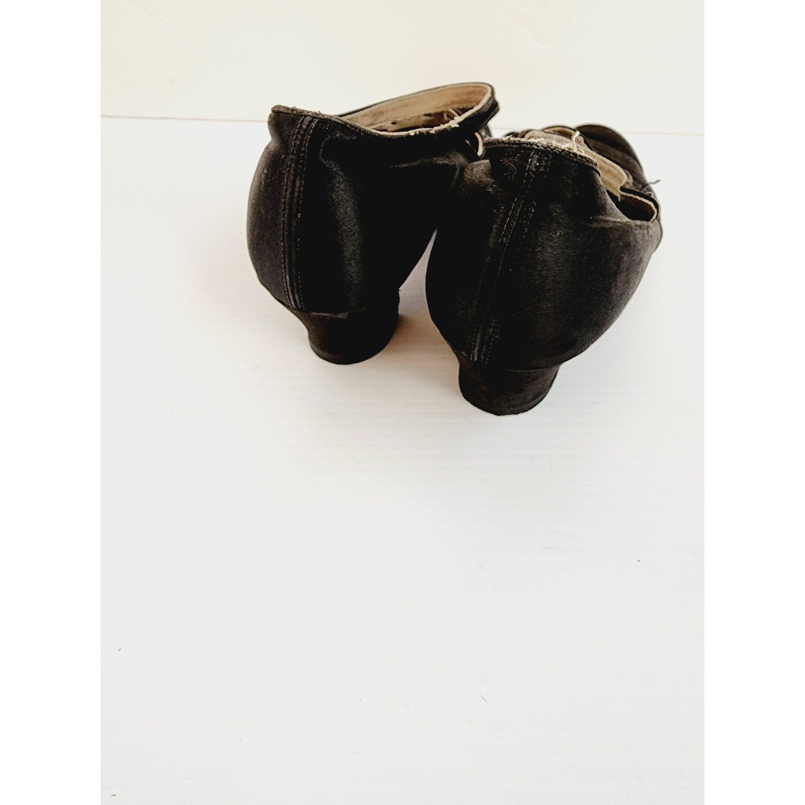 Vintage 20s Shoes Black Satin Mary Janes Size 6 AS IS
