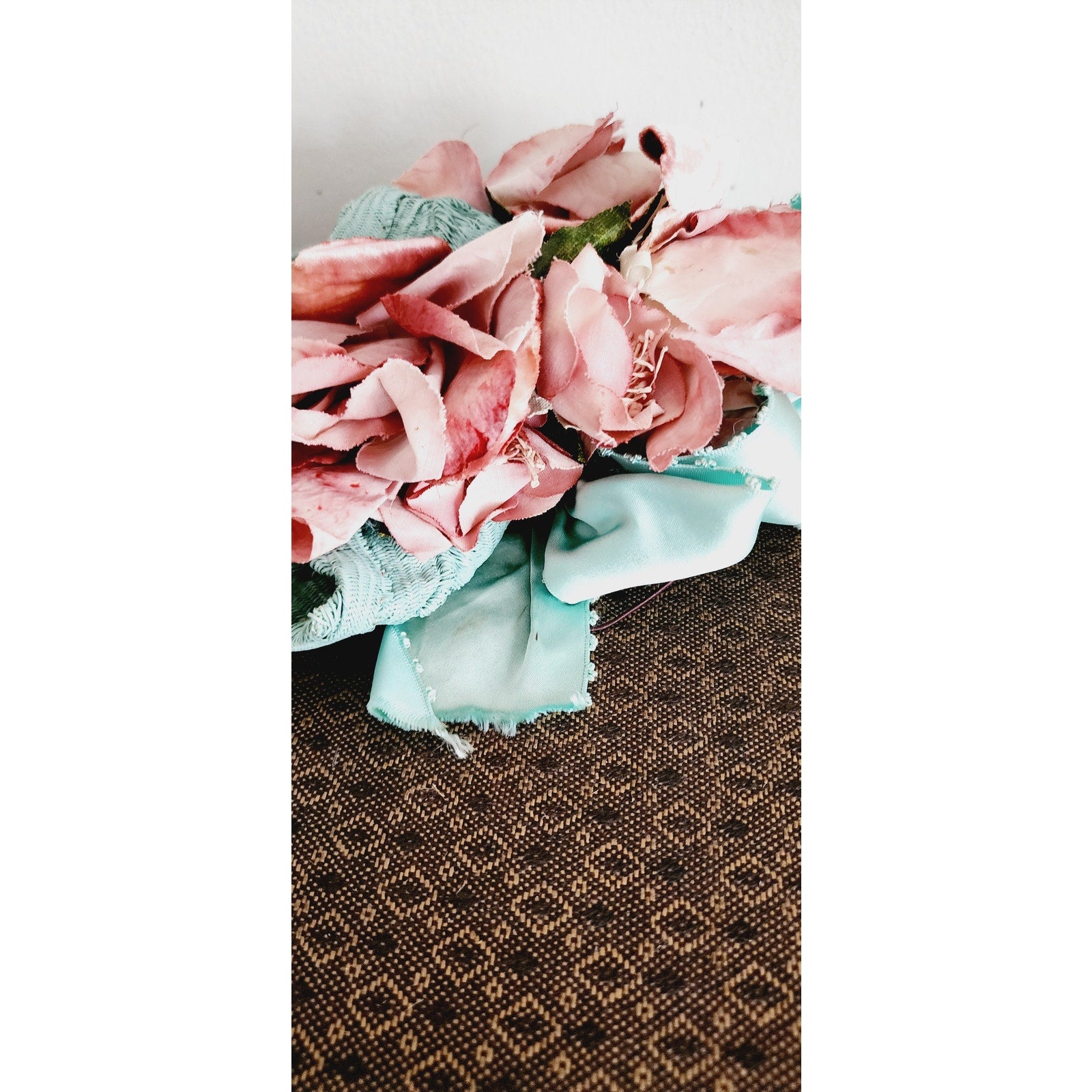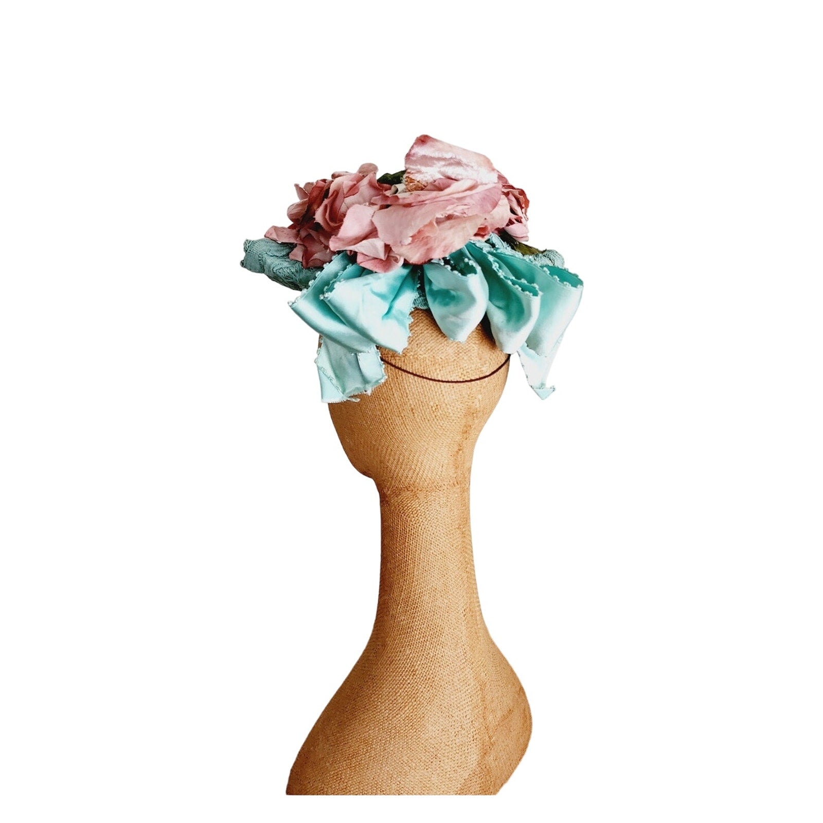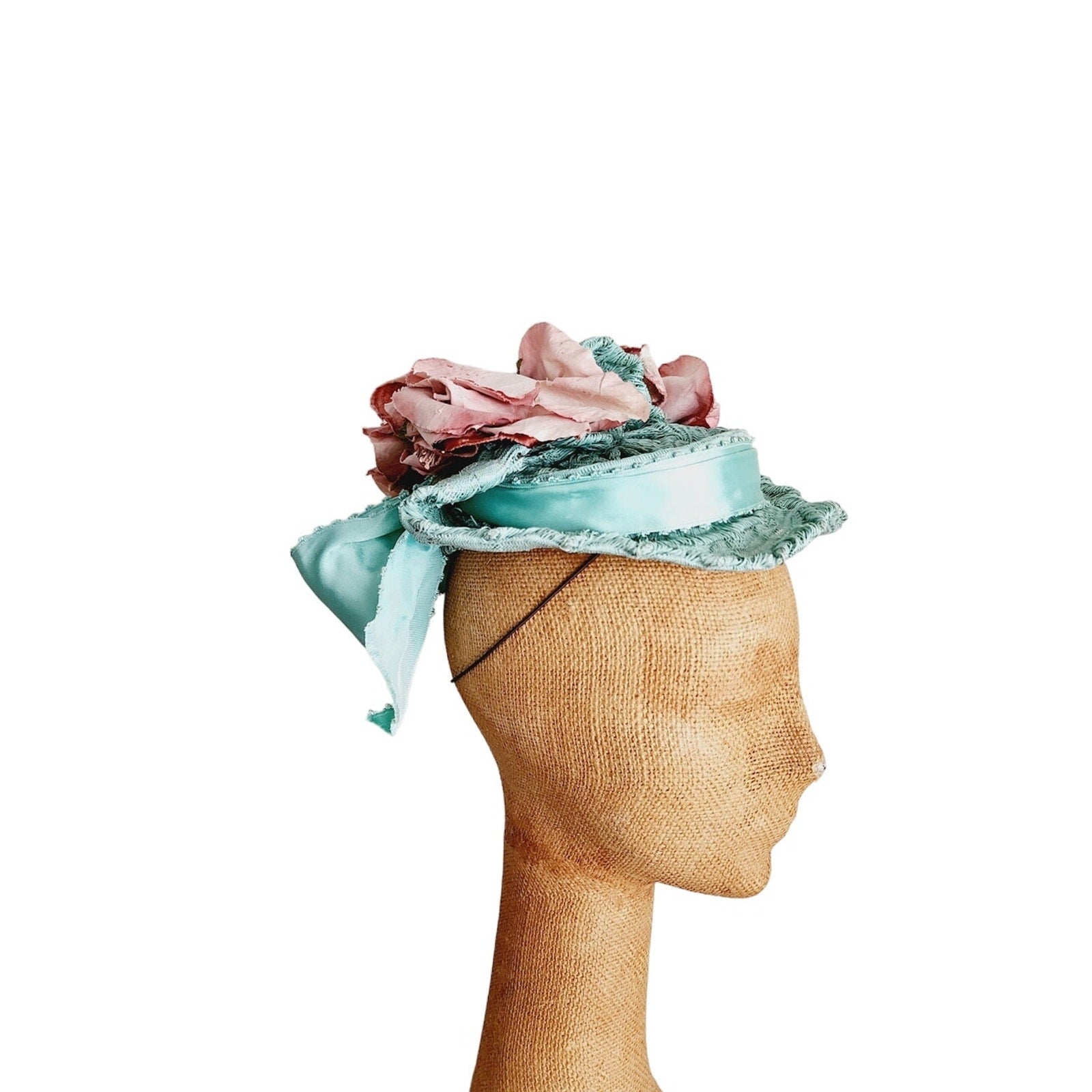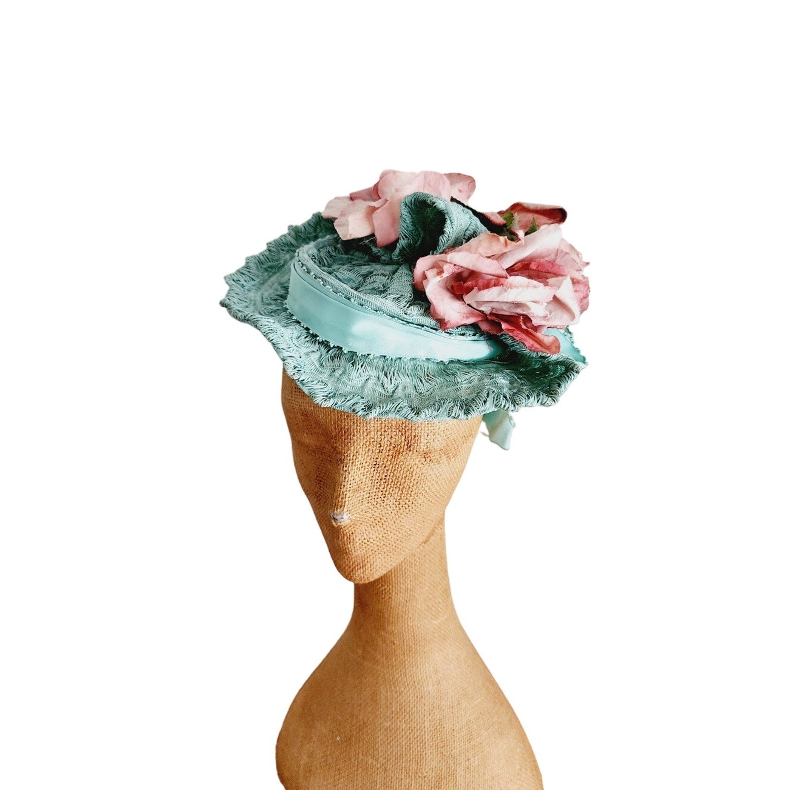 Vintage 30s Blue Pink Hat in Straw & Silk by Milgrim