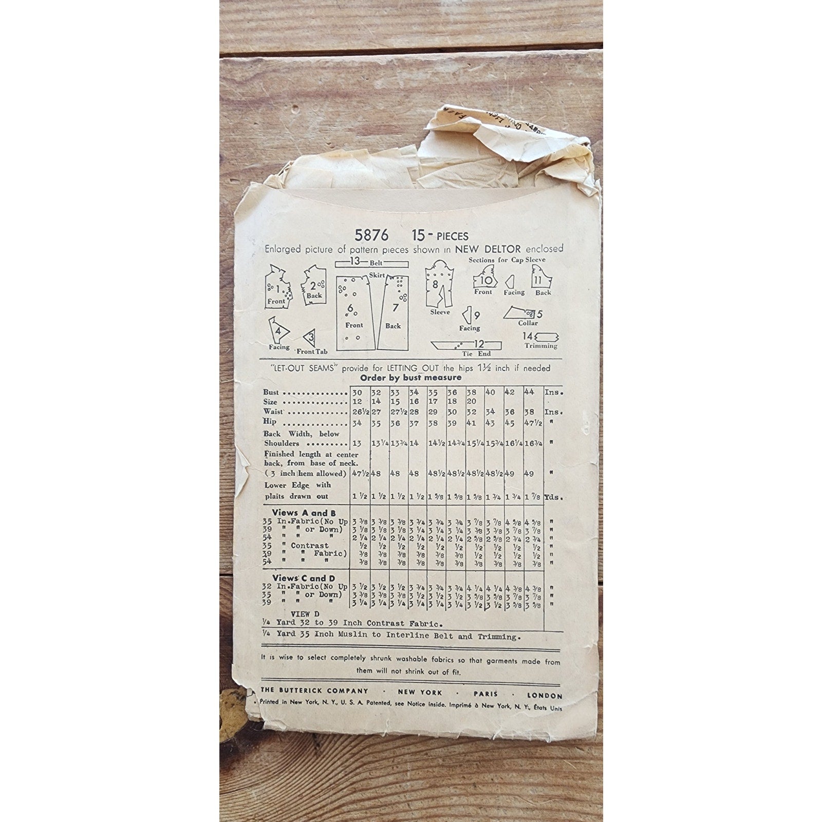Complete Pattern of 15 pieces - never used, in the original folded configuration + instructions!