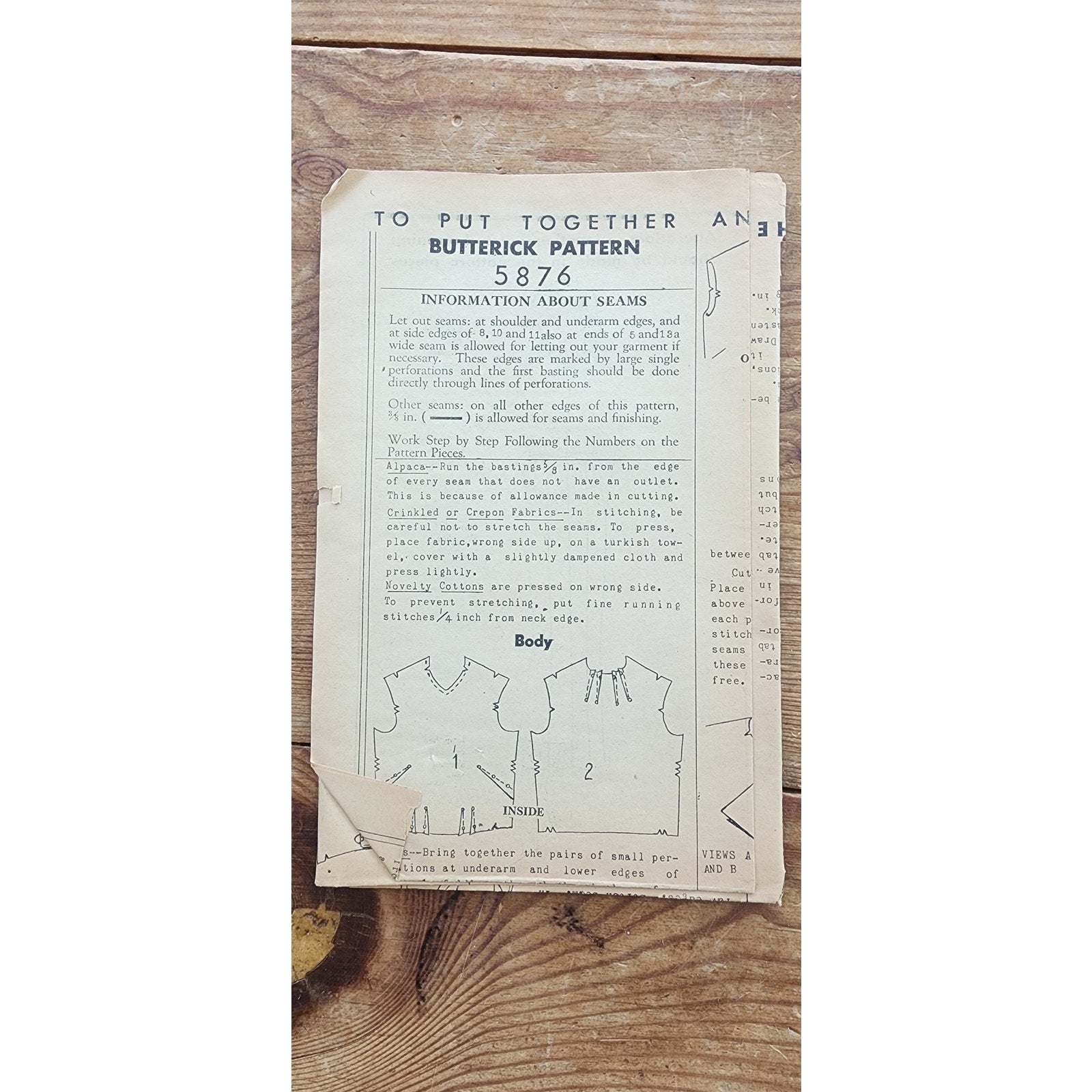 Condition: pattern never used and in original folds but the envelope shows tearing and wear corners and top flap - as seen in pics. This does not get in the way from reading any of the details front or back. Fold out instruction booklet fragile at the seams but intact.