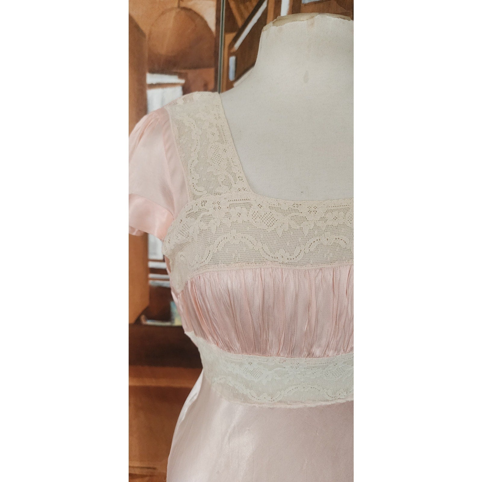 Vintage 30s Pale Pink Silk & Lace Bias Cut Nightgown Dress Long Slip Old Hollywood