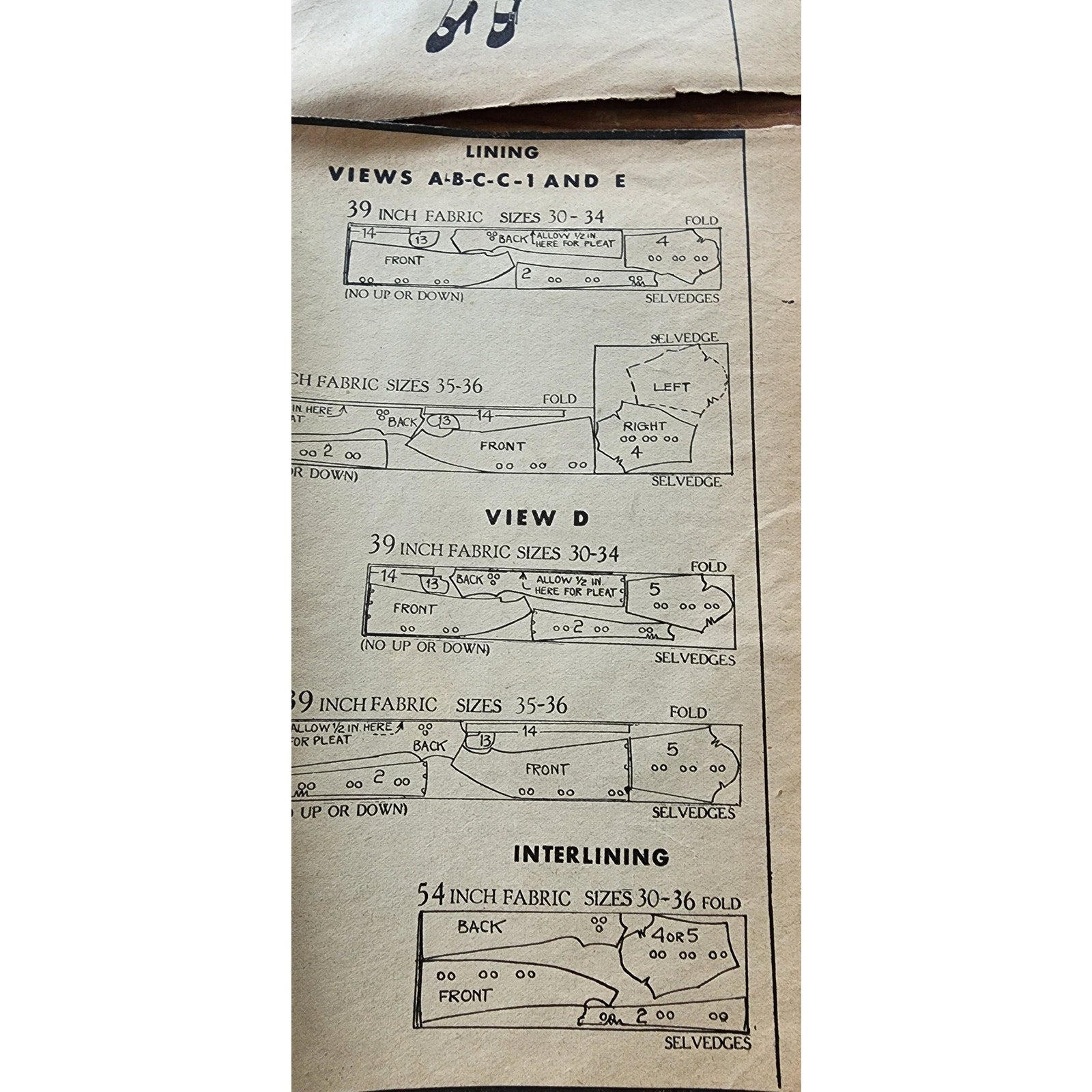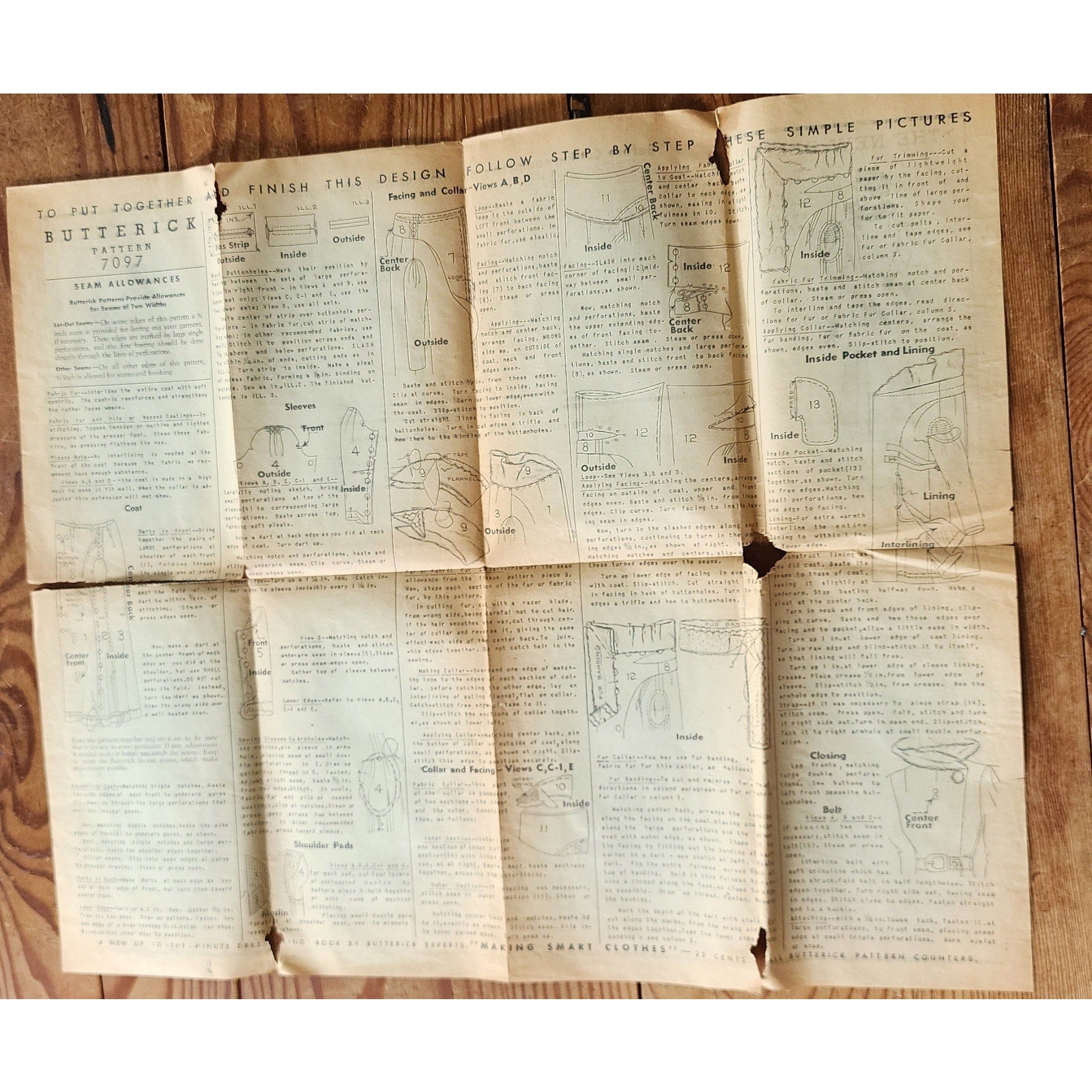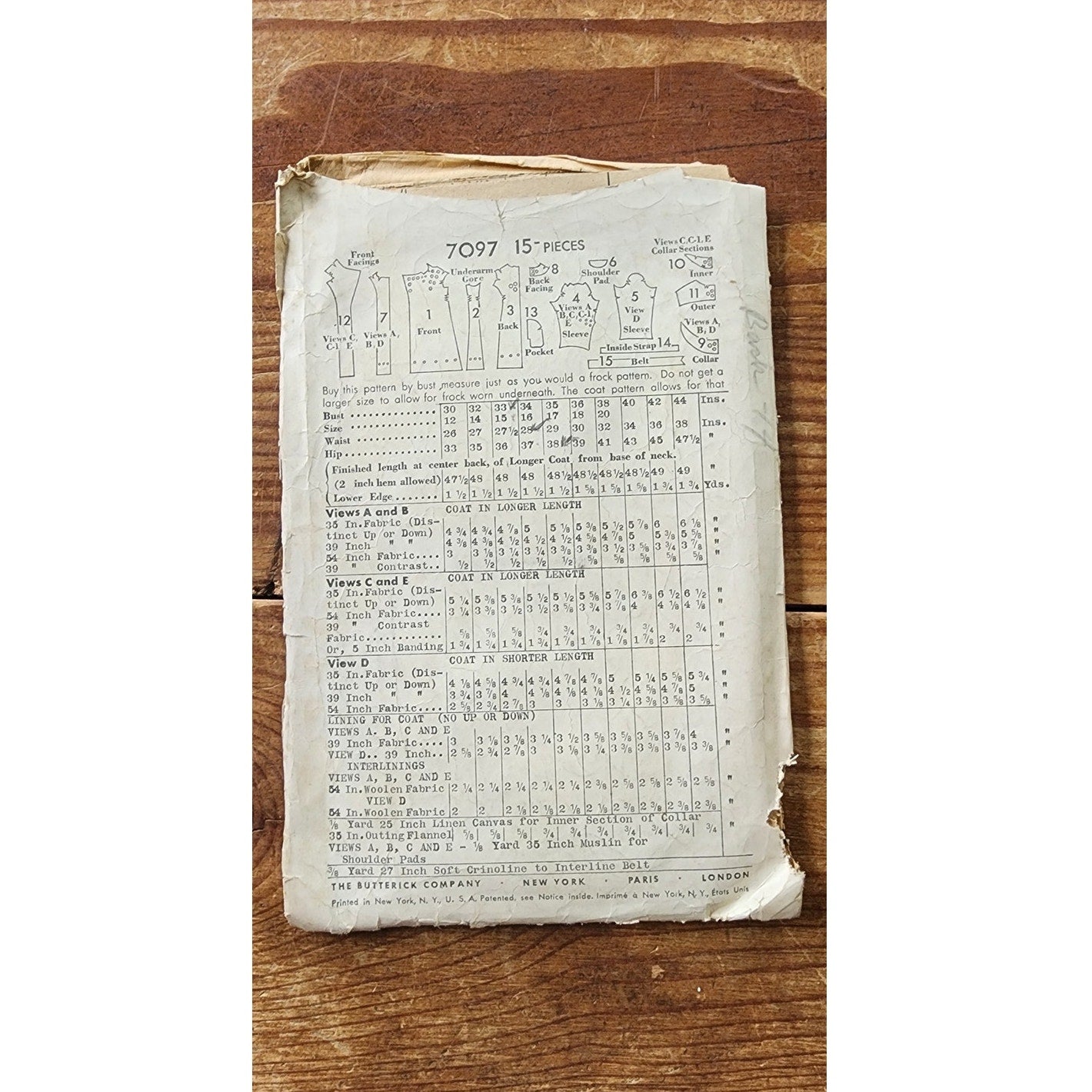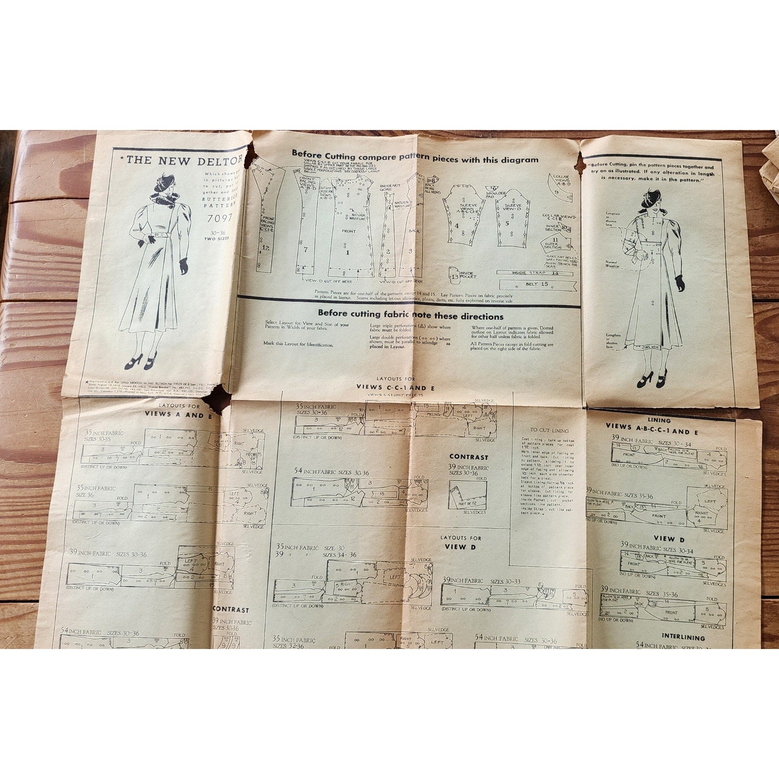 Vintage 30s Sewing Pattern of Fitted Coat w/Collar Butterick 7097 Size 33 Bust