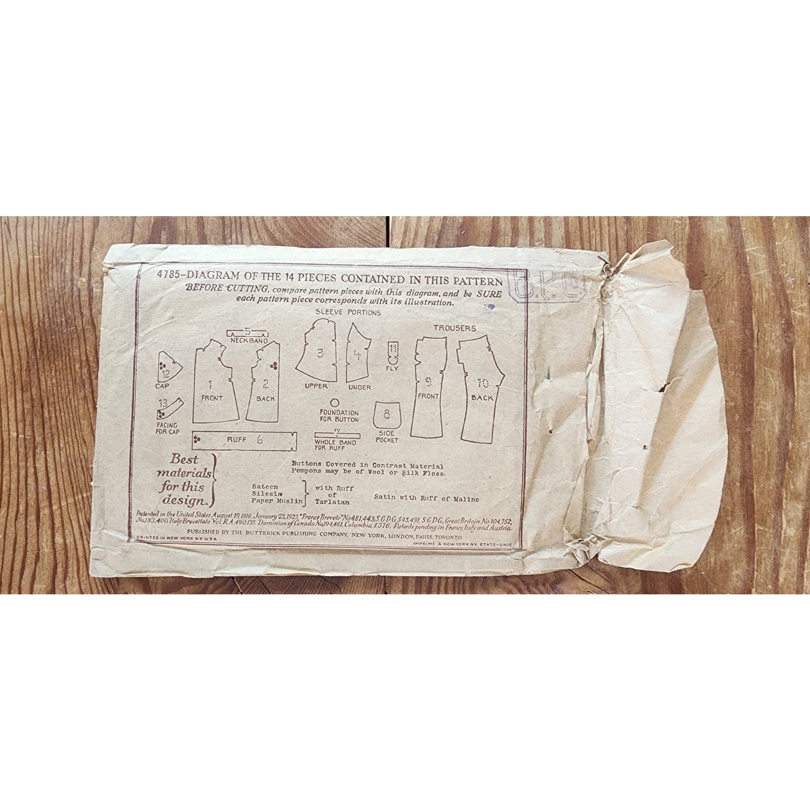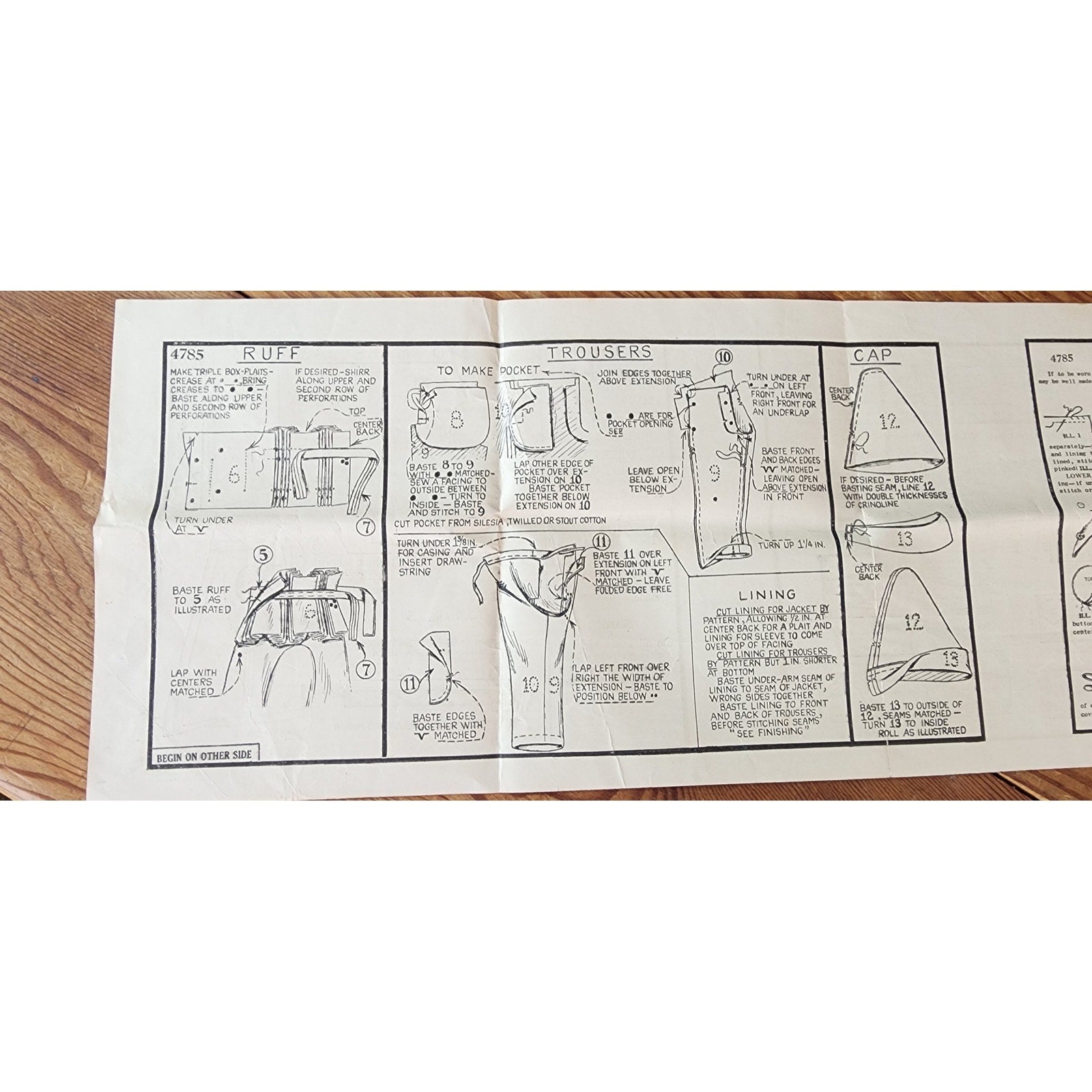 Vintage 30s Sewing Pattern ORIGINAL: Mens Boys Pierrot Clown Costume Butterick 4785