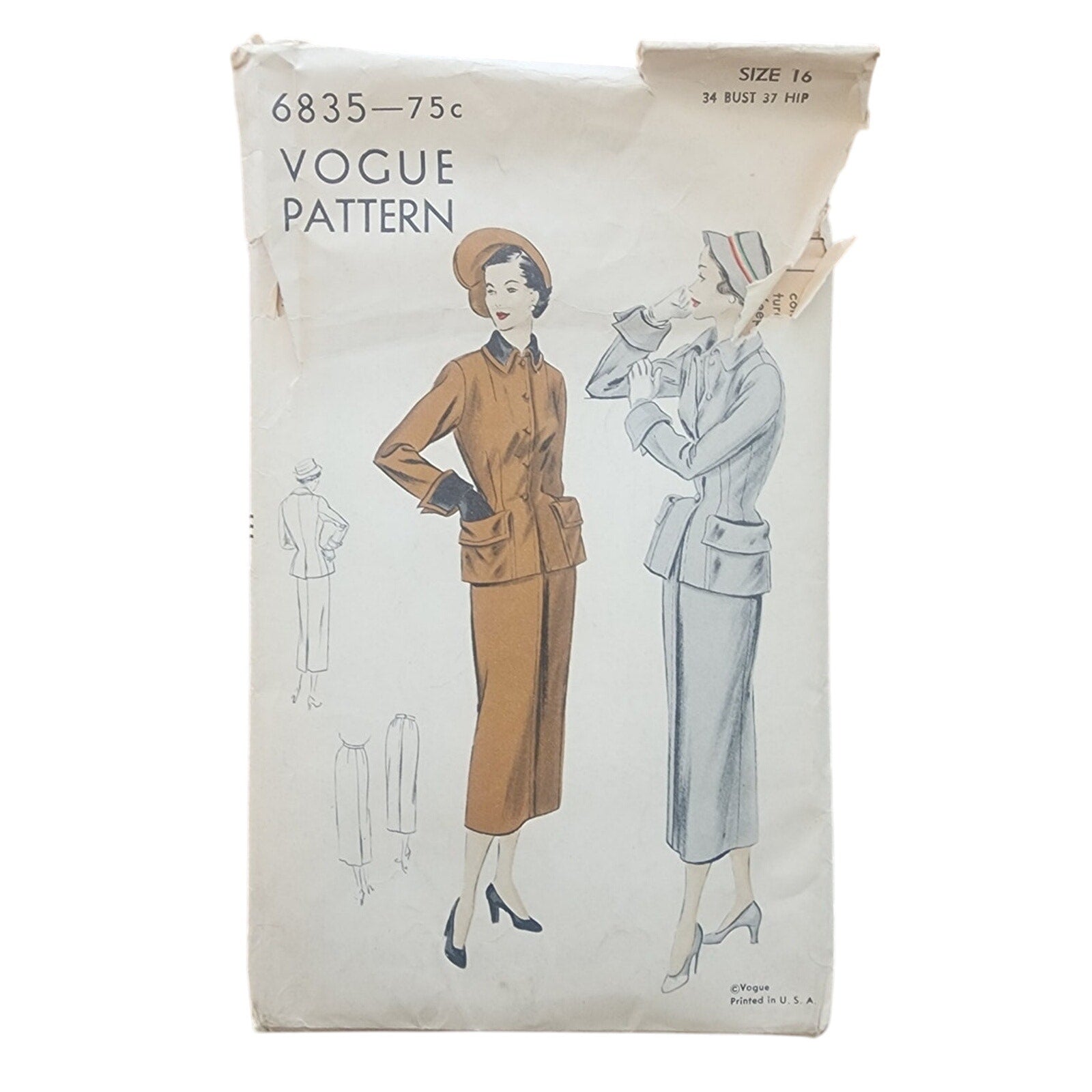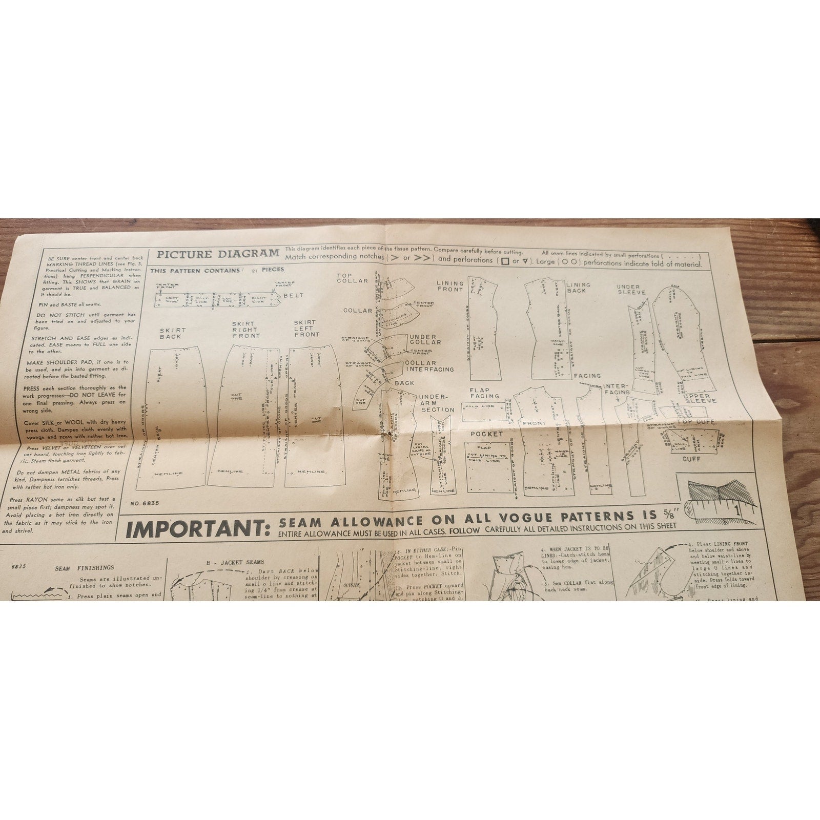 Vintage 40s ORIGINAL Sewing Pattern Skirt Suit Vogue Pattern 6835 34 Bust