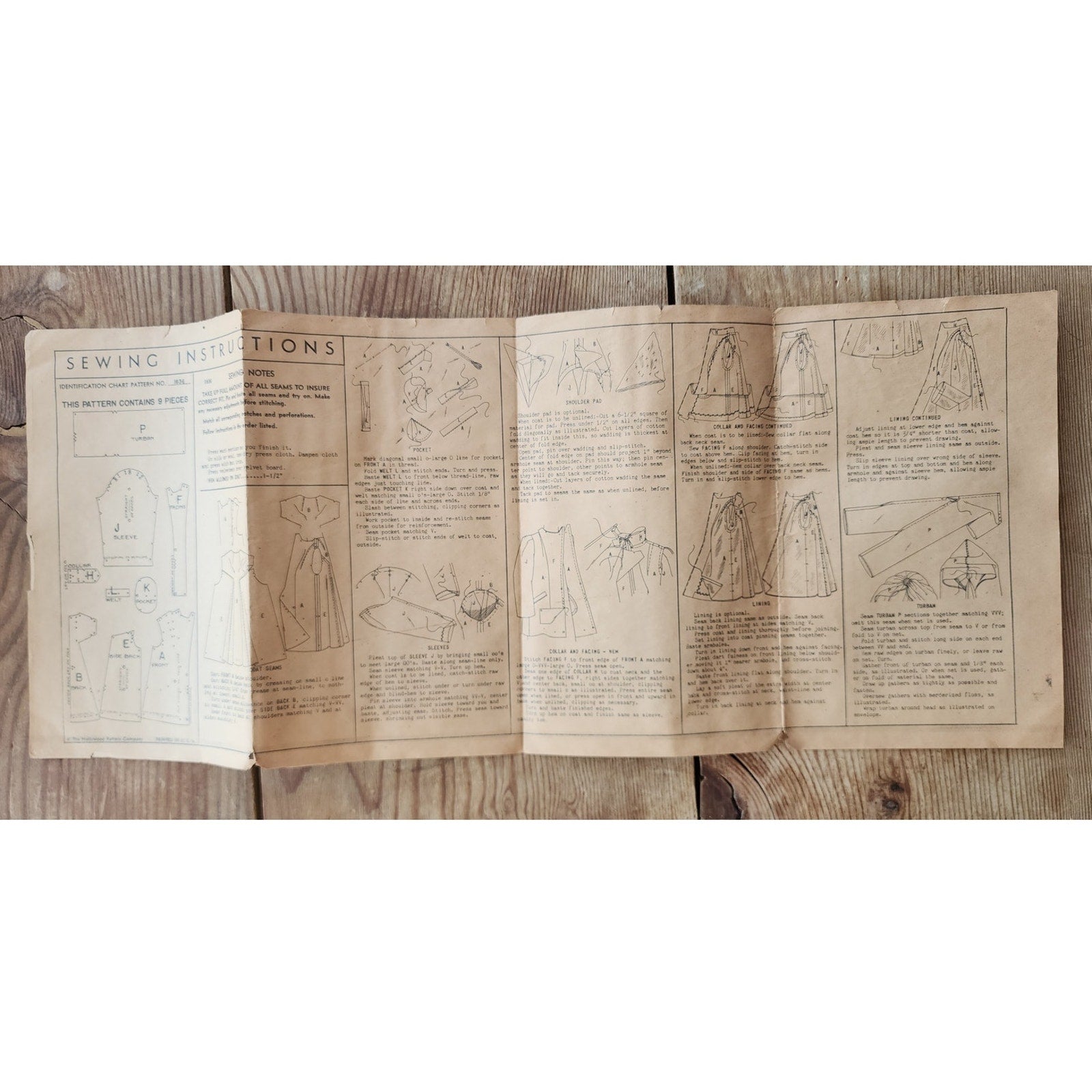 Vintage 40s Sewing Pattern ORIGINAL: Swing Coat + Turban Hollywood 1836 Bust 32