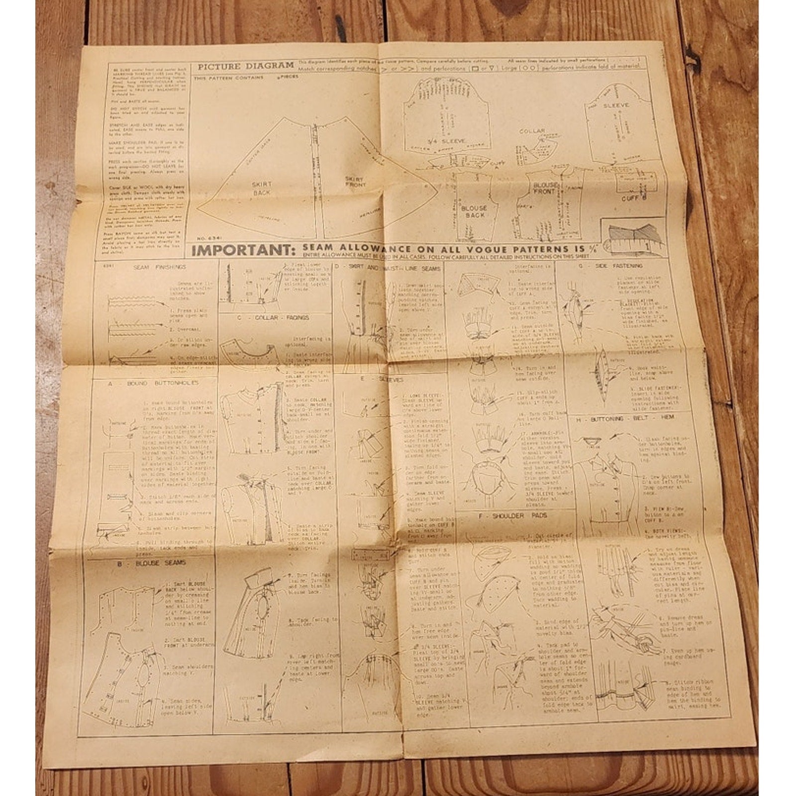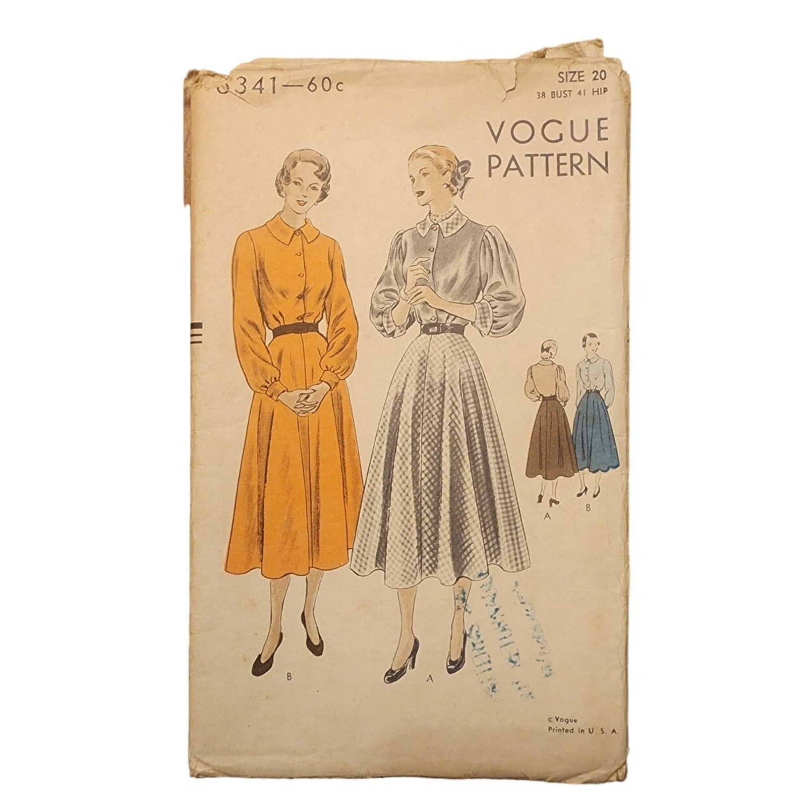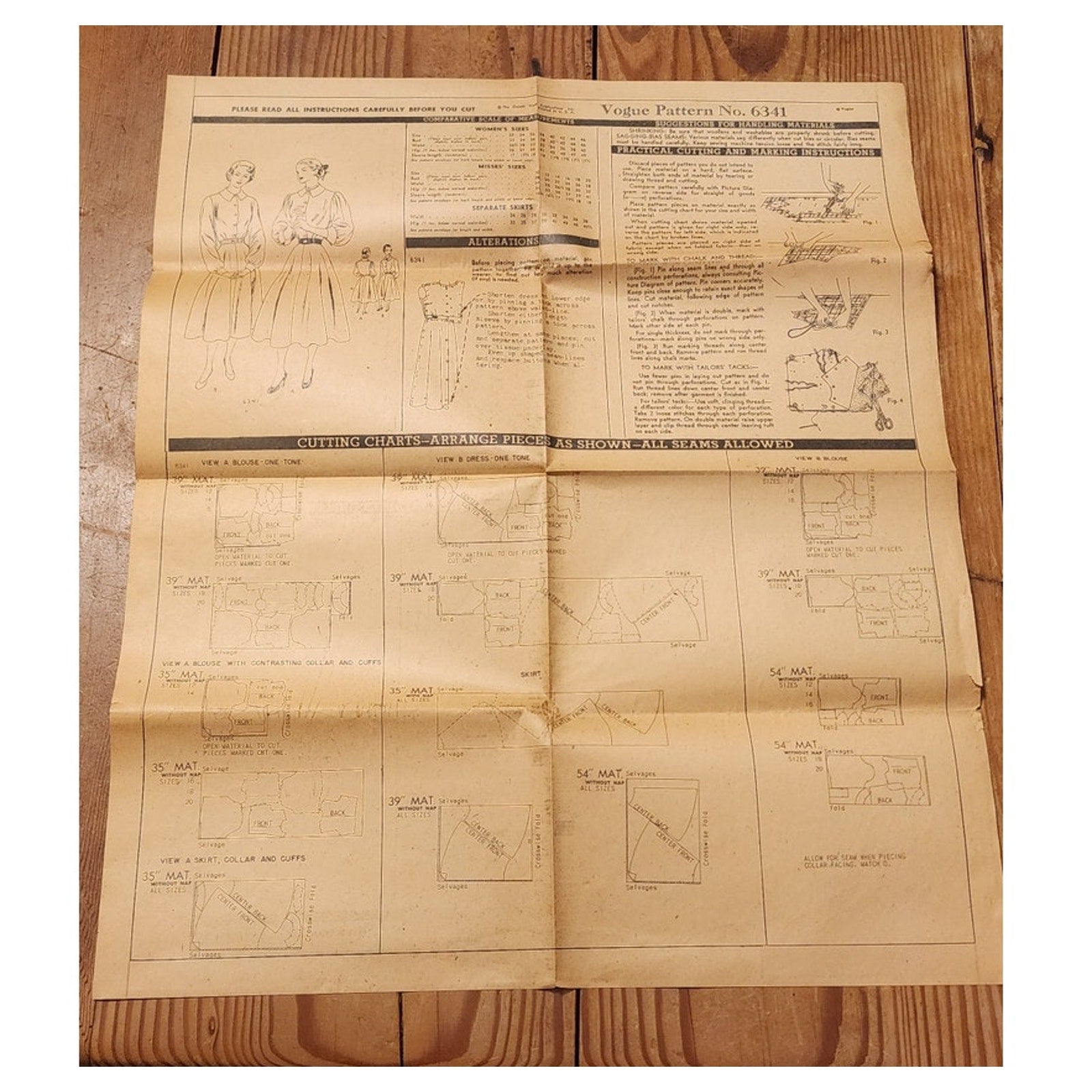 Vintage 40s Sewing Pattern: Womens One Piece Dress Vogue 6341