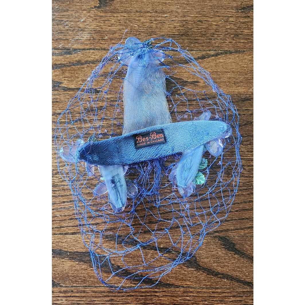 Vintage 50s Bes-Ben Hat Blue Crystal Floral Crown Fascinator w/Veil