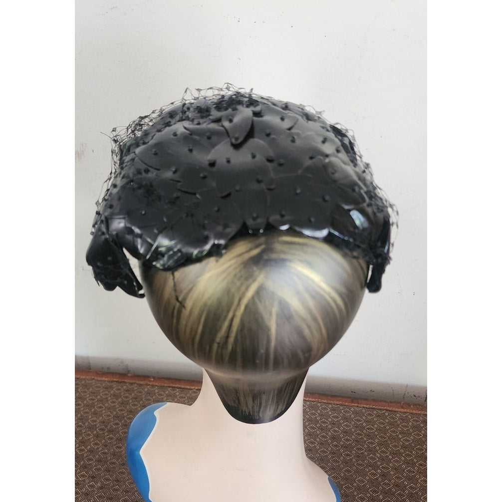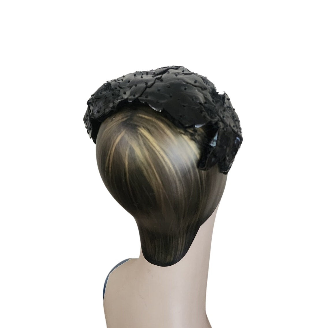 Vintage 50s Bes-Ben Hat Eggshell Style Black Leather Petals