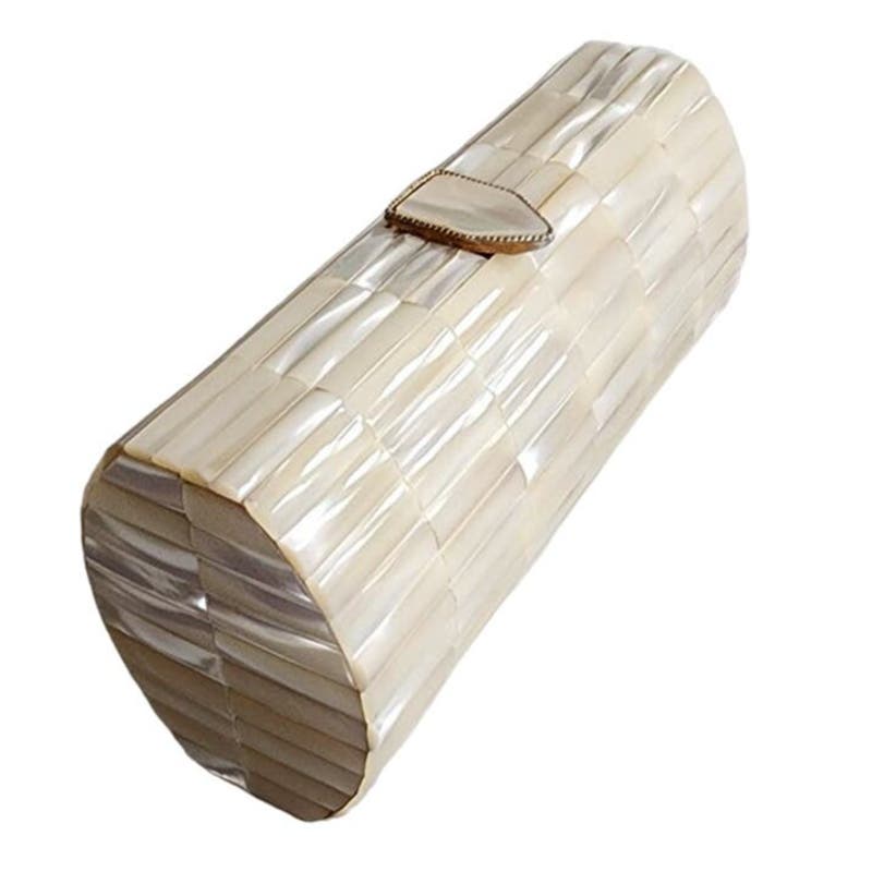 Vintage 50s Clutch Purse Mother of Pearl Cylindrical Evening Bag