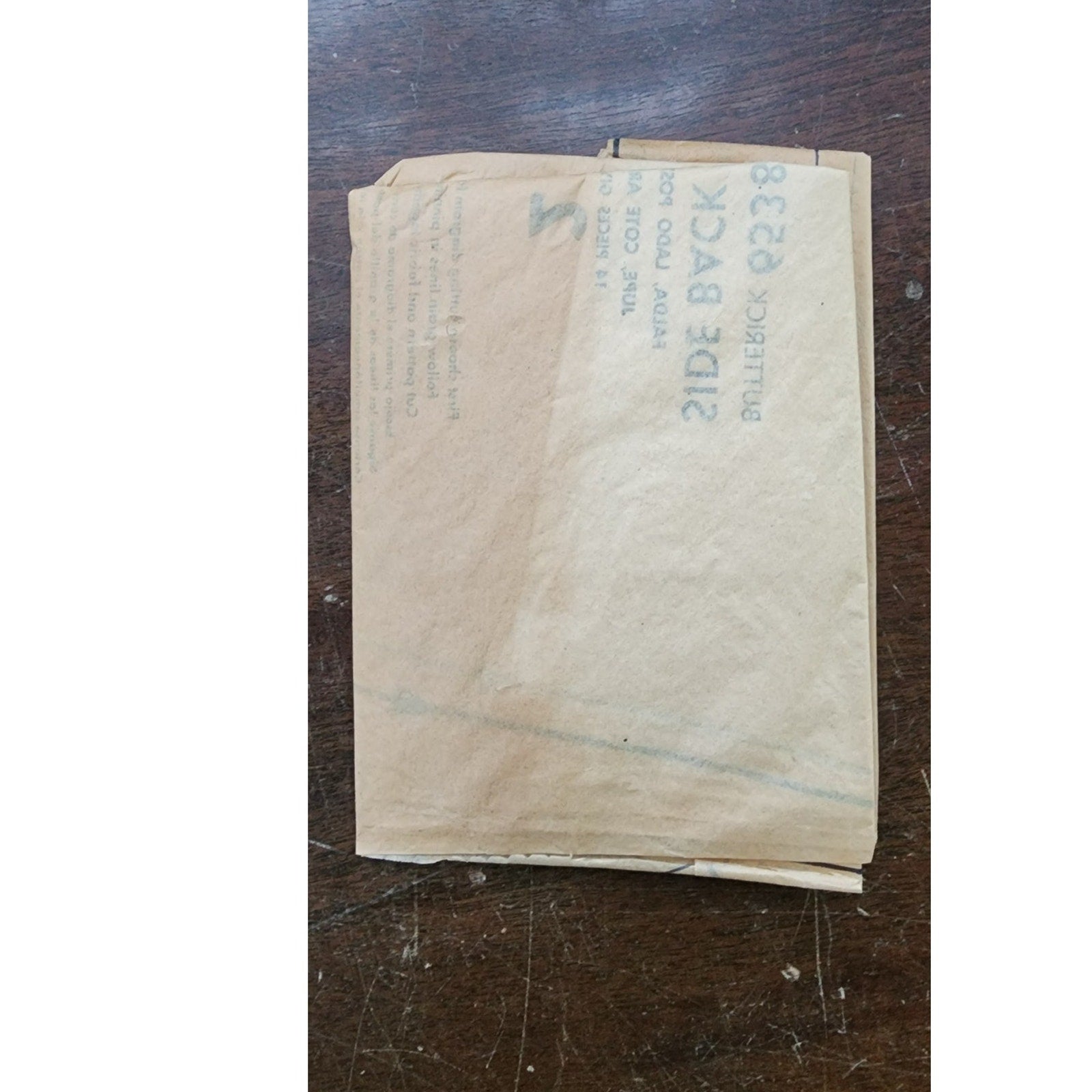Condition: pattern never used and in original folds so in excellent/like new condition, but the envelope shows wear and tear, as pictured, and there is a small chunk cut out from the instructions, as pictured.