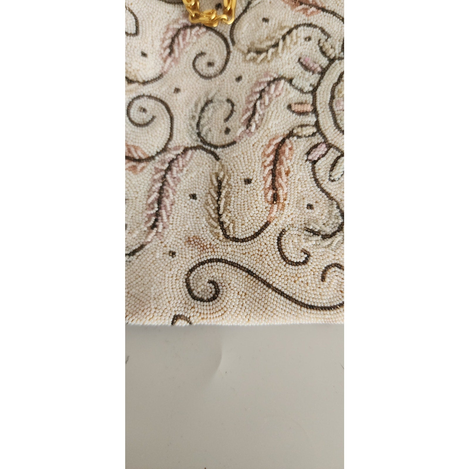 Vintage 50s Evening Bag in White Microbeads France Elaborate Scrollwork Octopus