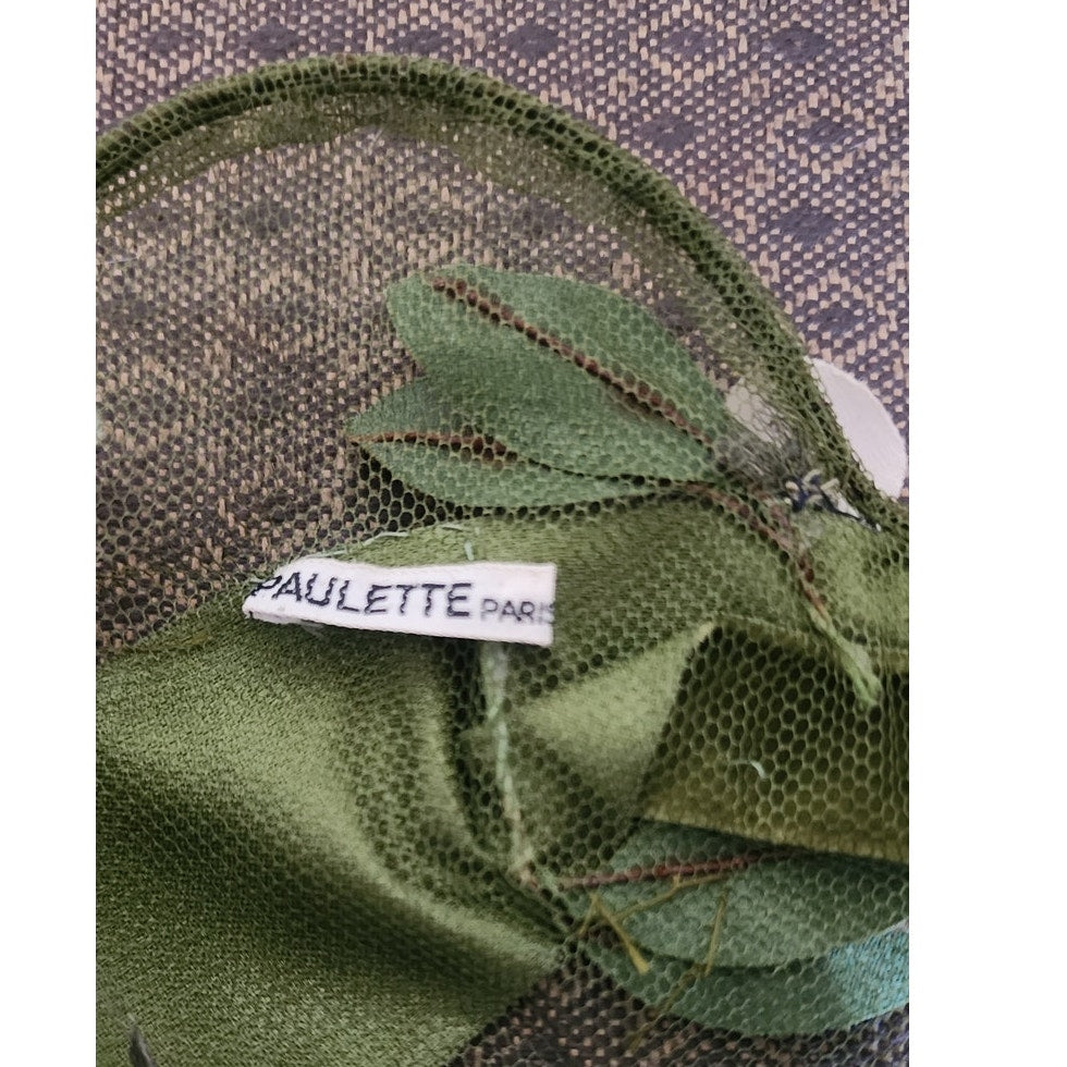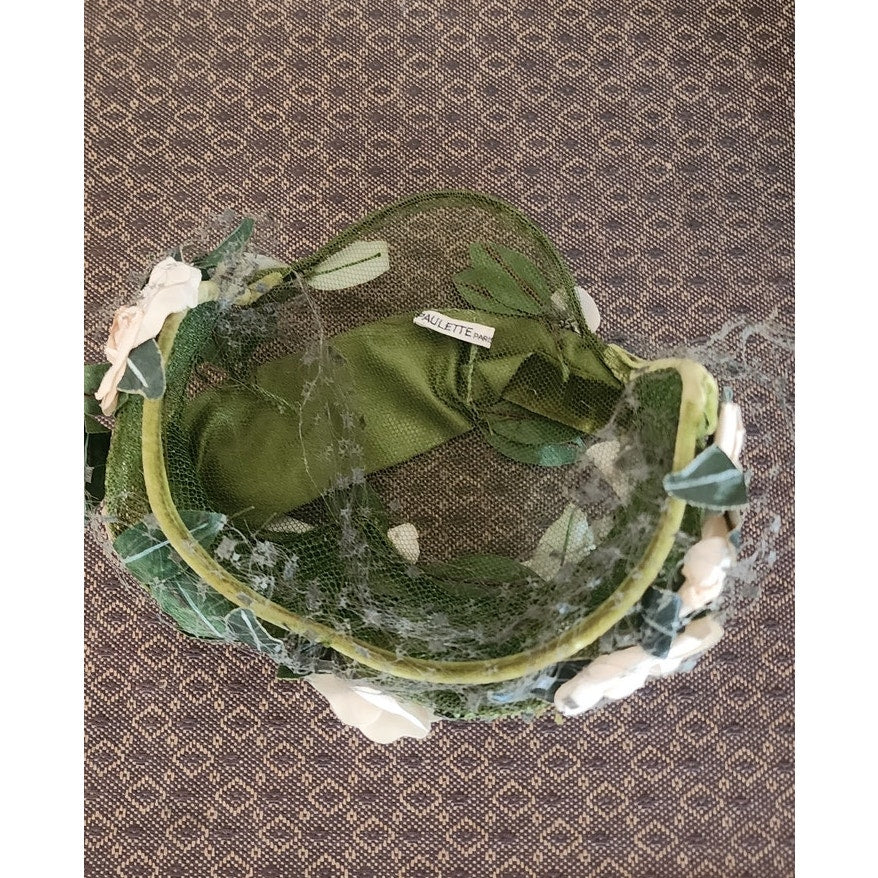 Vintage 50s Flower Hat Green Beige by Paulette Paris