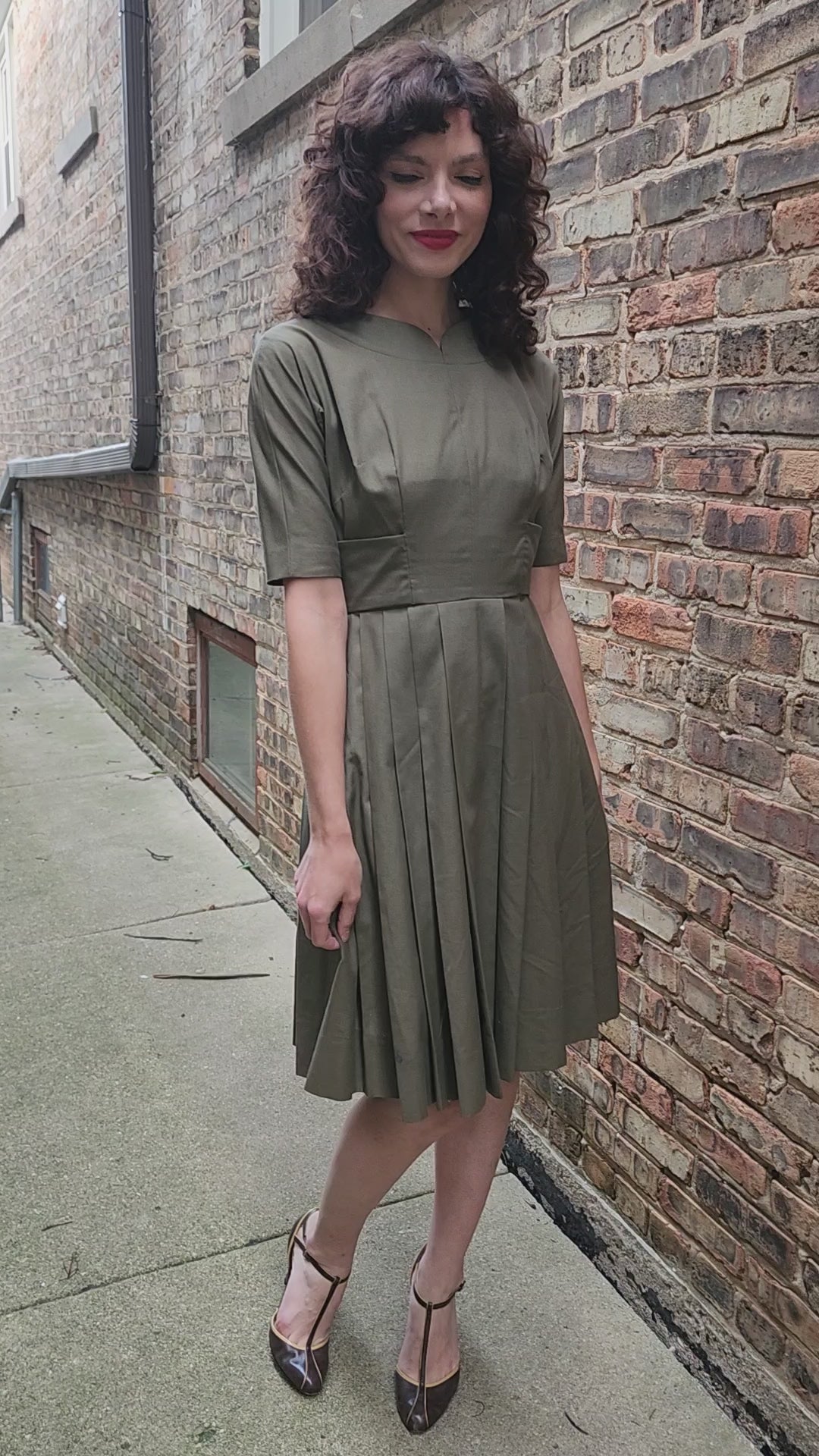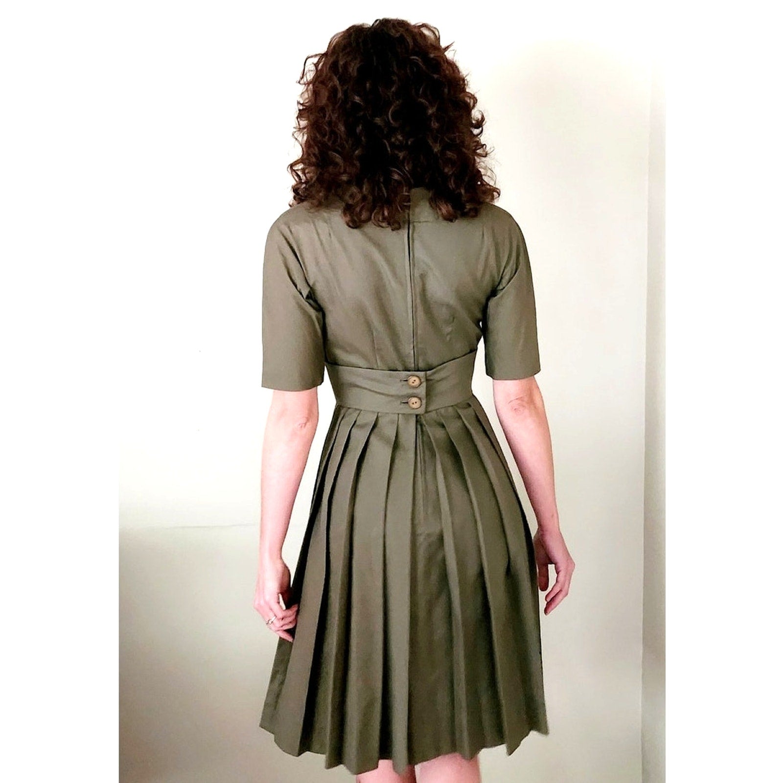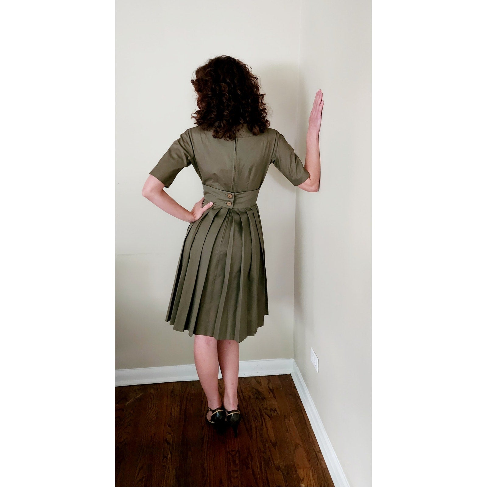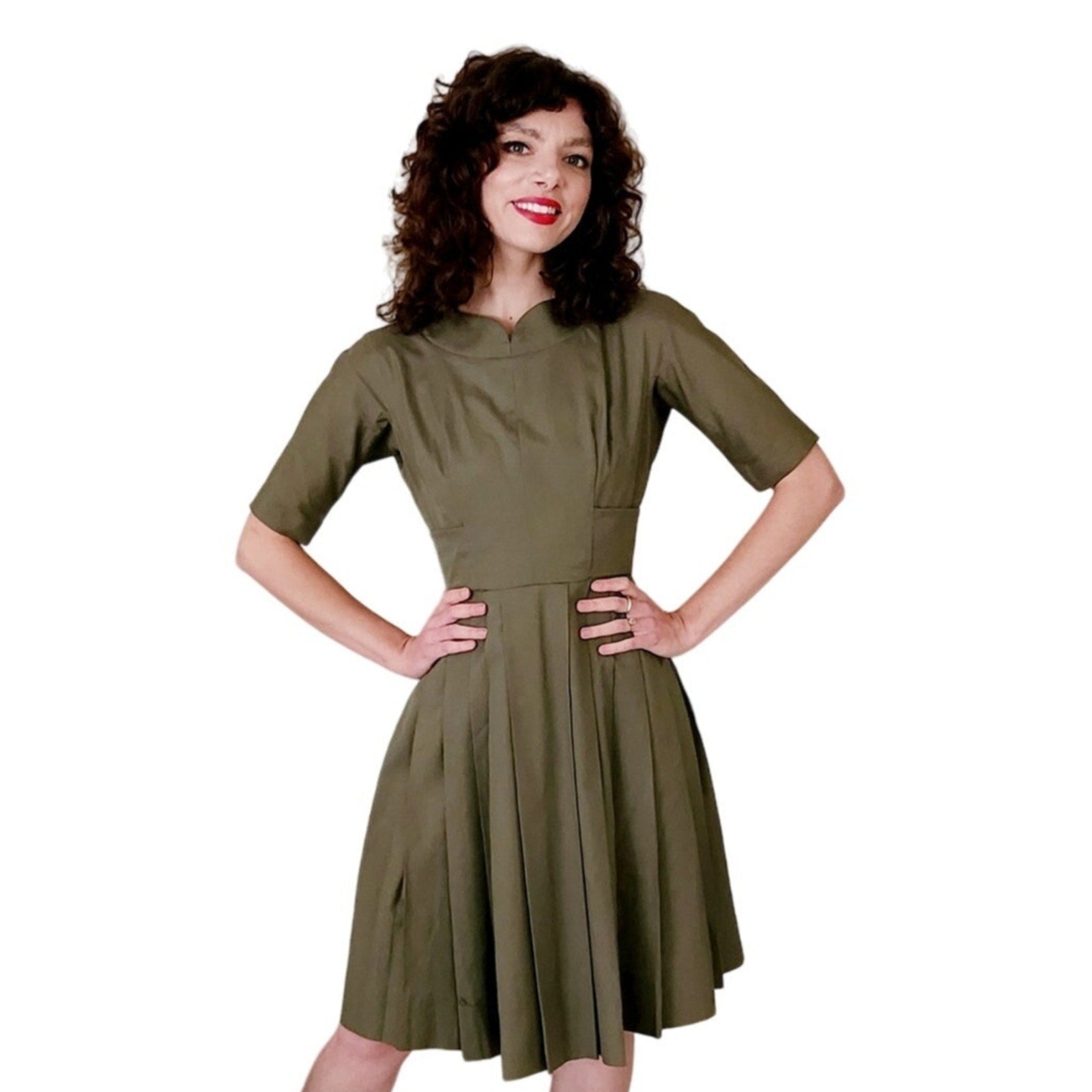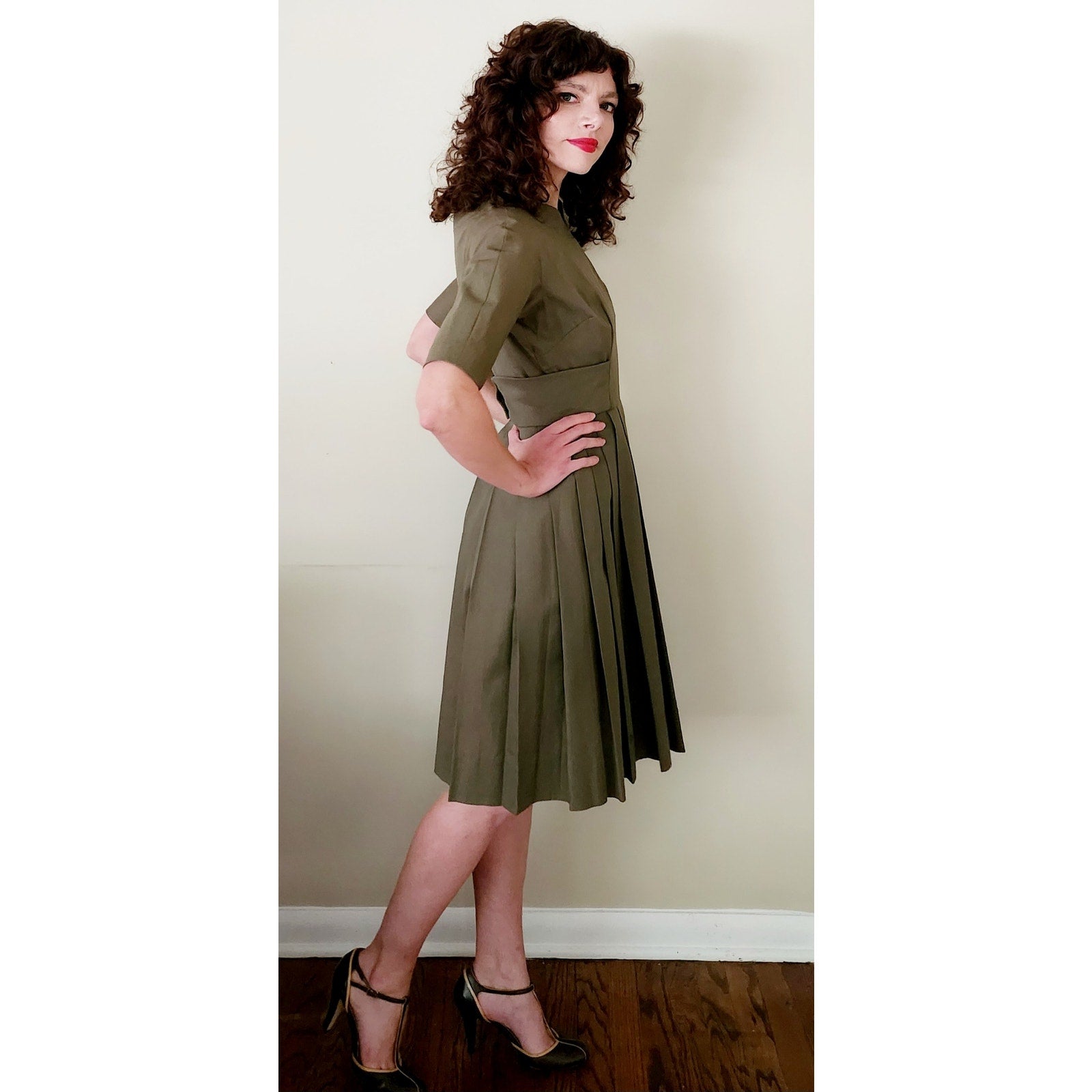 Vintage 50s Jacques Heim Couture Dress Olive Green Wool / Small