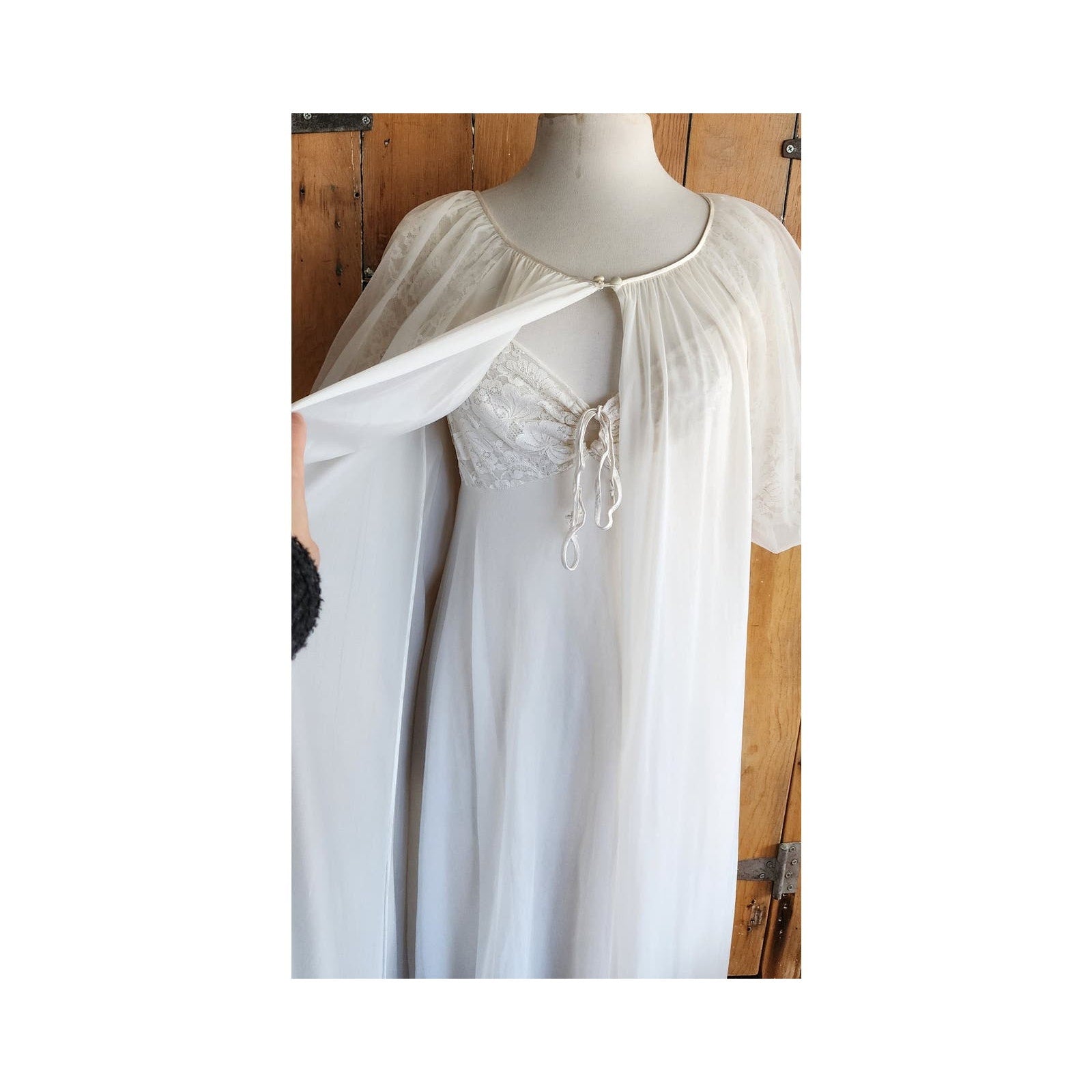 Vintage 50s Peignoir White Nylon Robe + Slip Dress Vanity Fair
