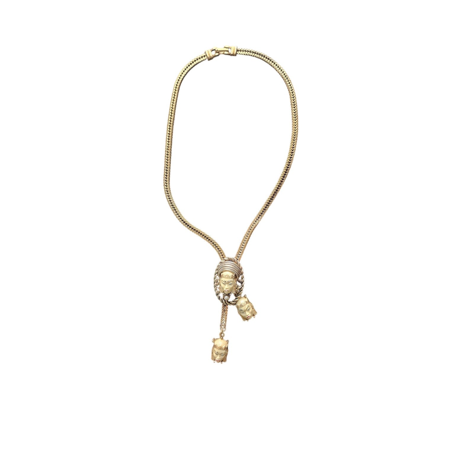 Vintage 50s SELRO SELINI Necklace Asian Princess Pendants Thai Girl Heads Faces Masks