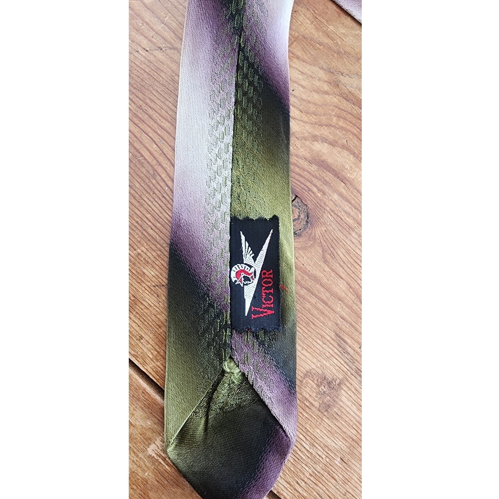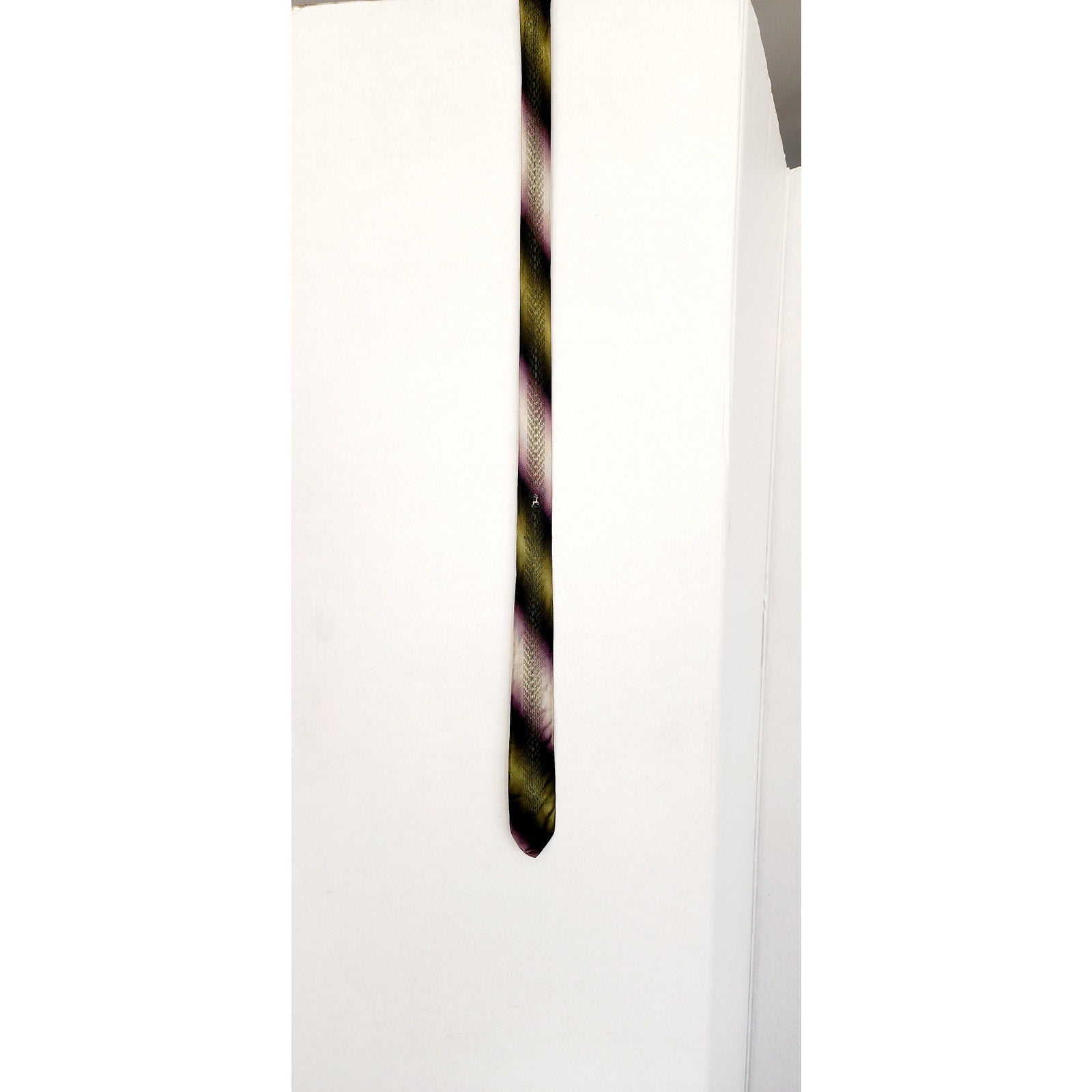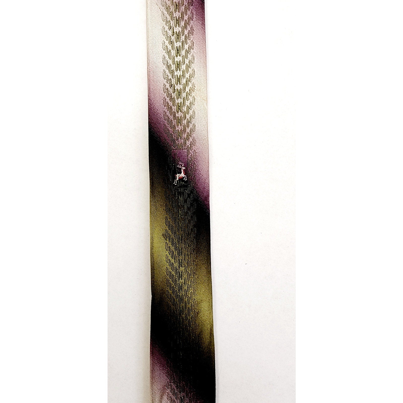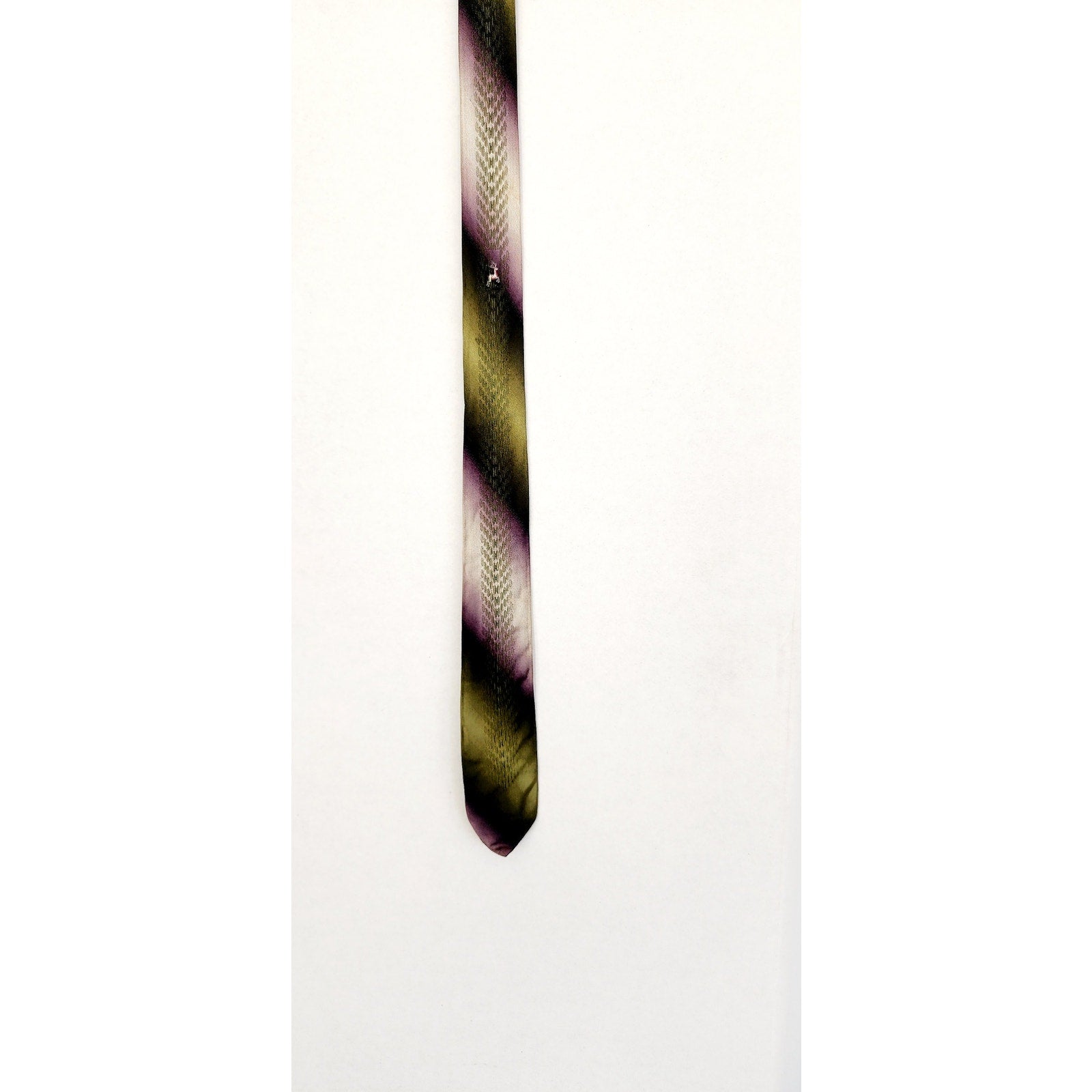 Vintage 50s Skinny Tie Mens Neckite Purple Green Ombre Stripe Embroidered Deer