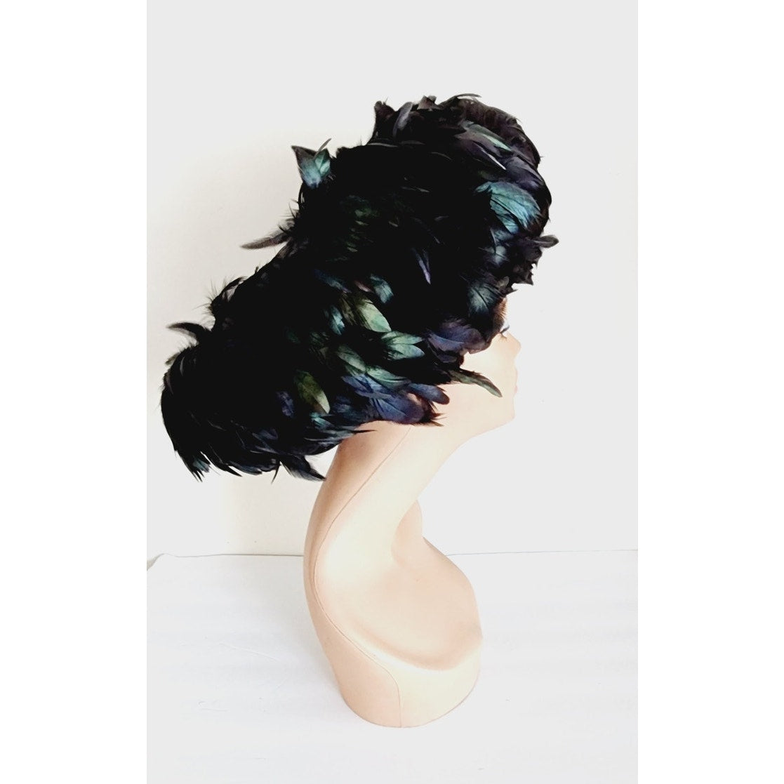 Vintage 60s Black Feather Hat Oversized Phyllis Diller Style