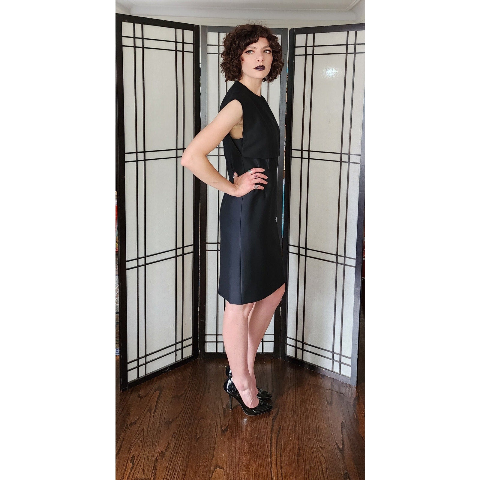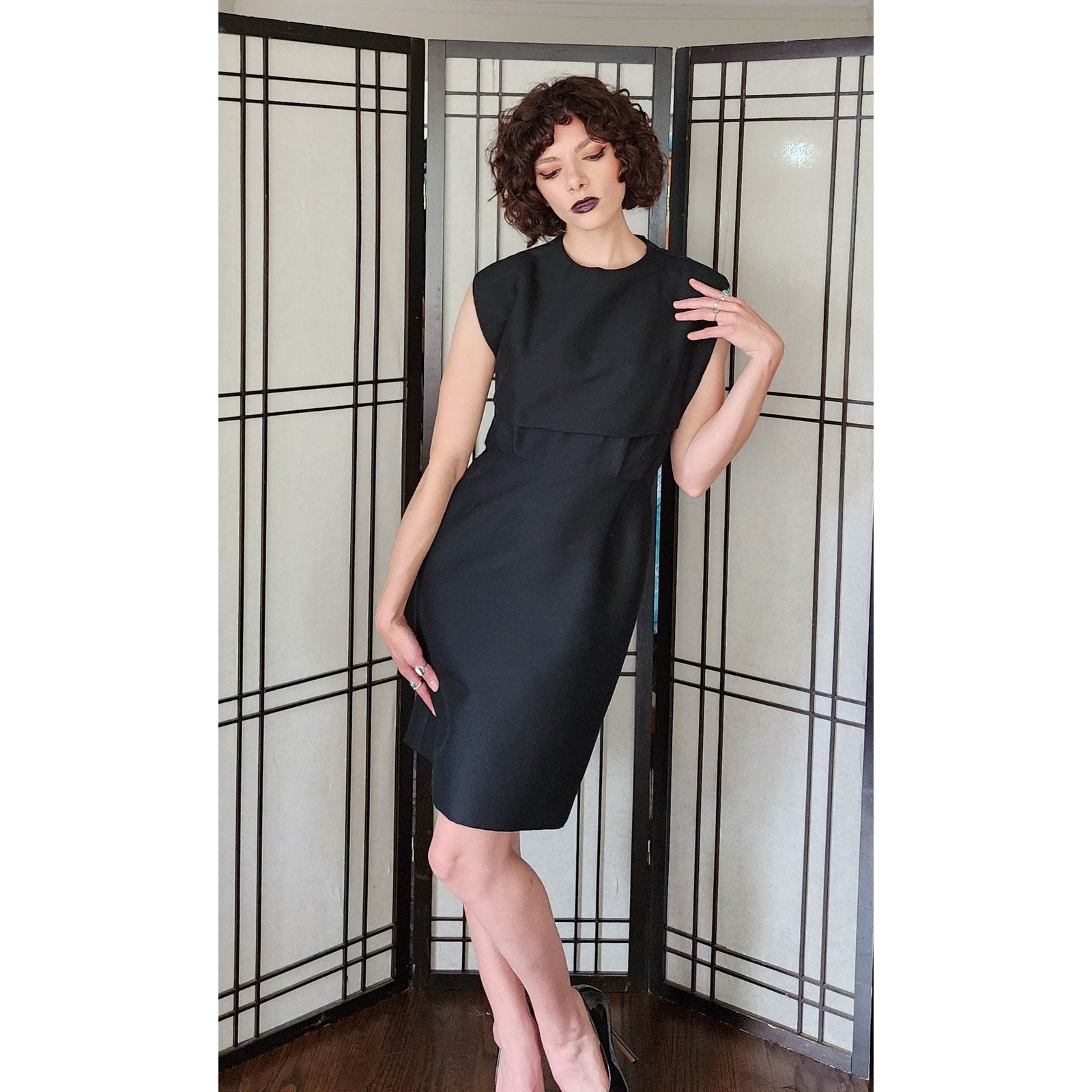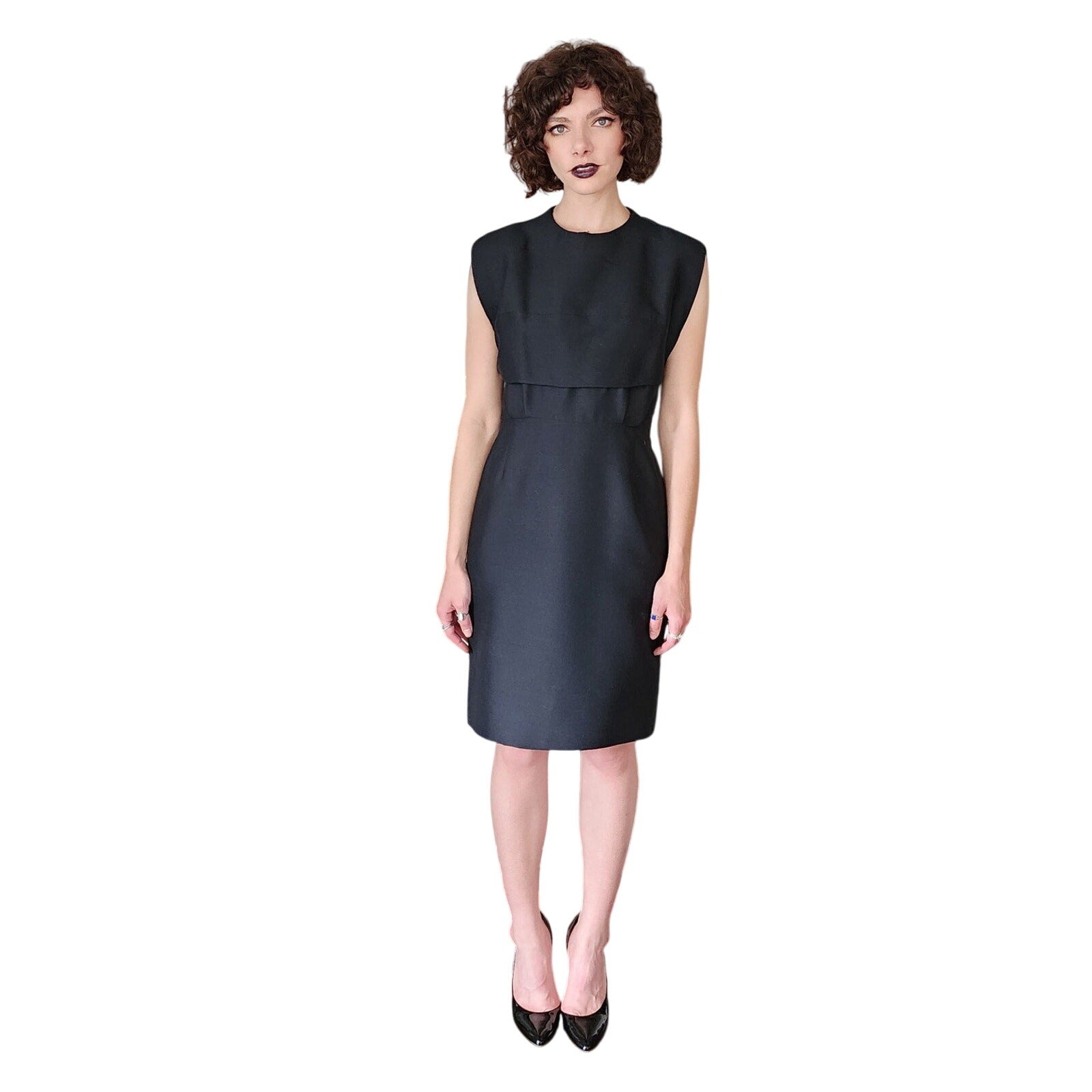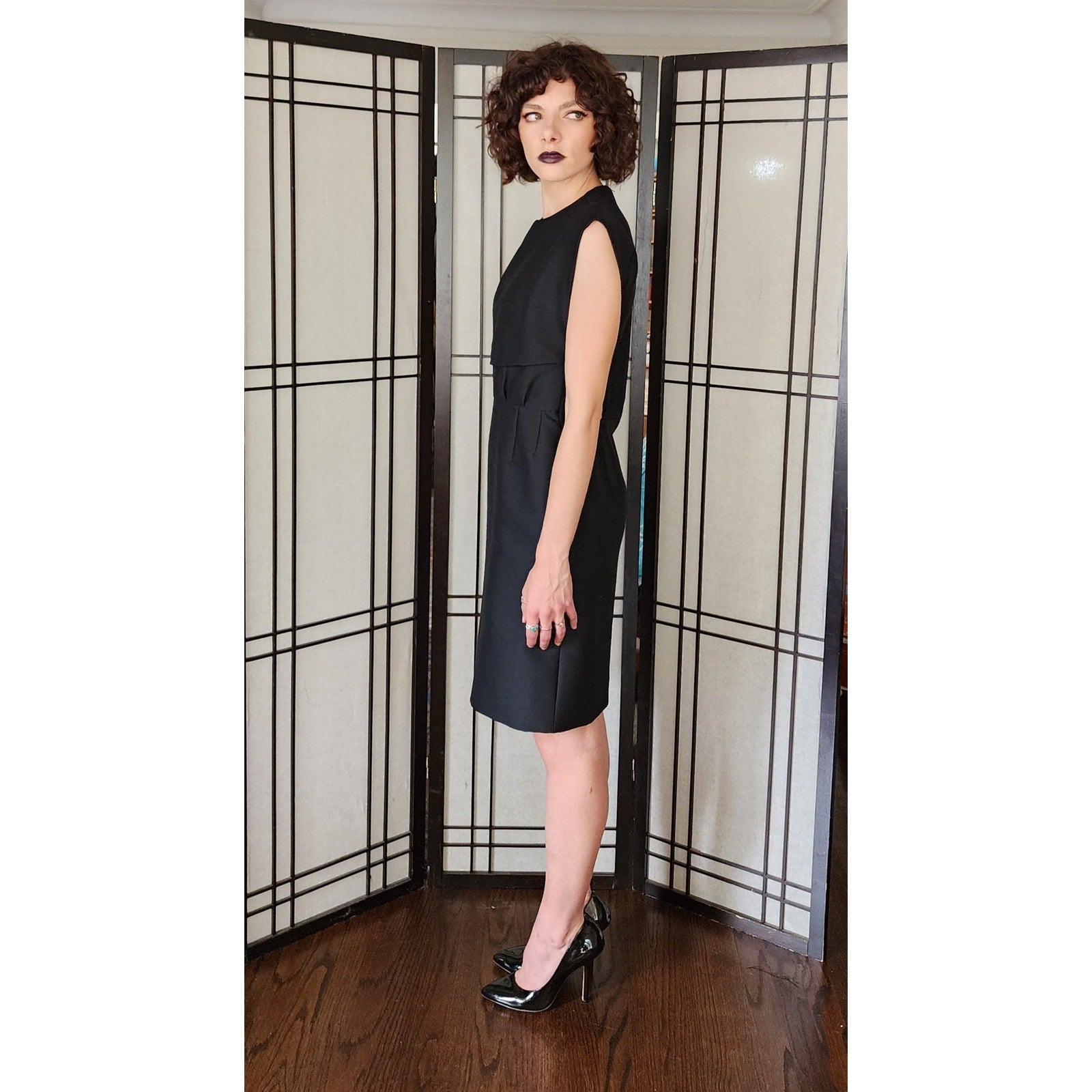 Vintage 60s Black Mod Dress in Tailored Wool, Sleeveless, M