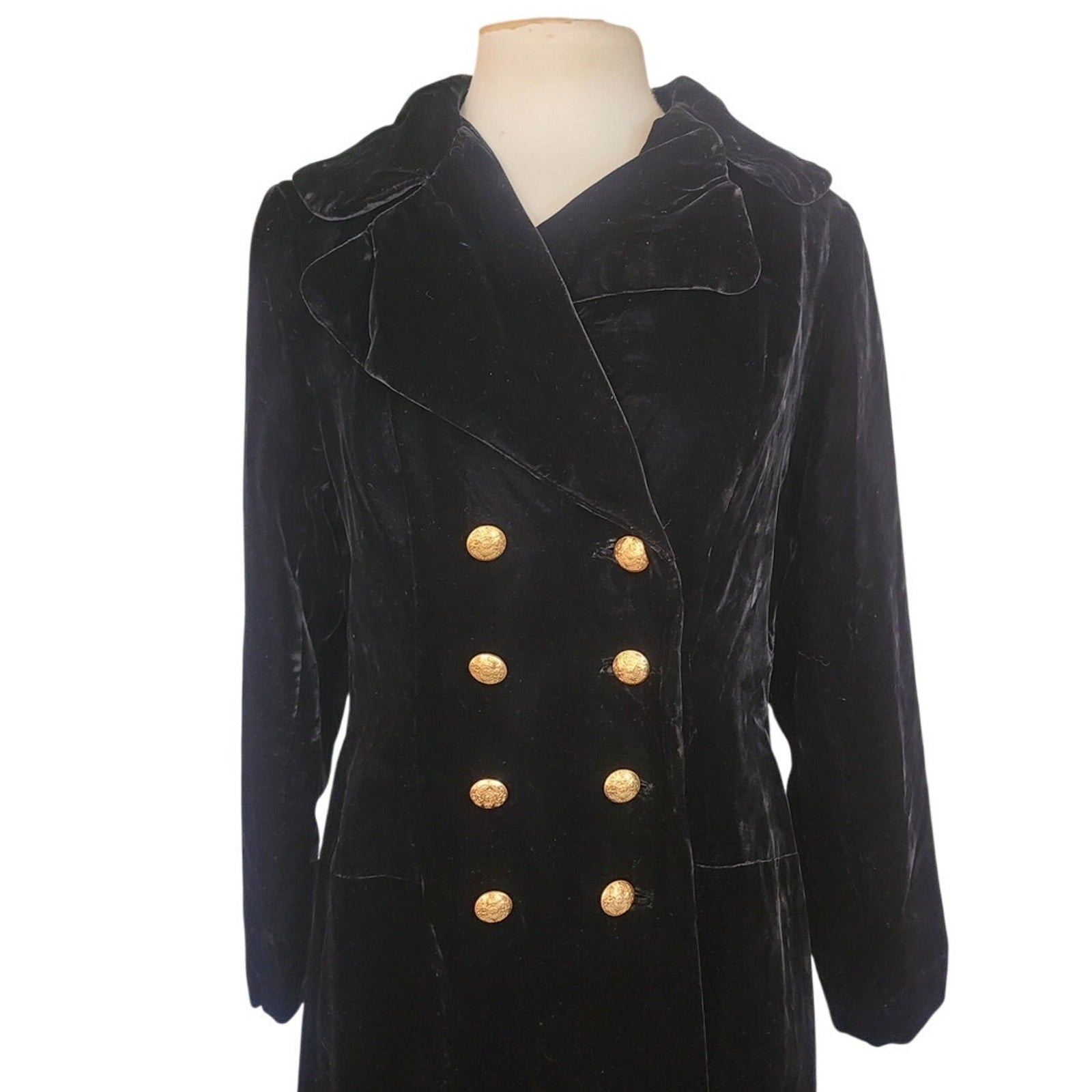 Vintage 60s Black Velvet Opera Coat Double Breasted Gold Buttons