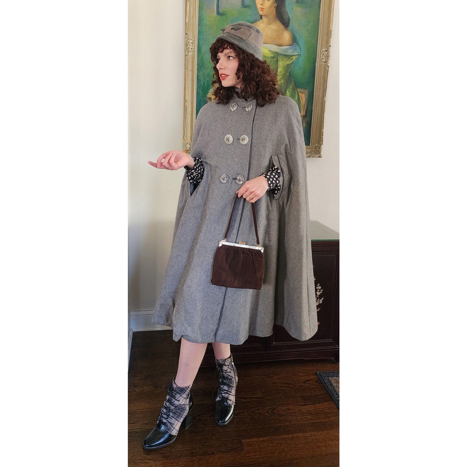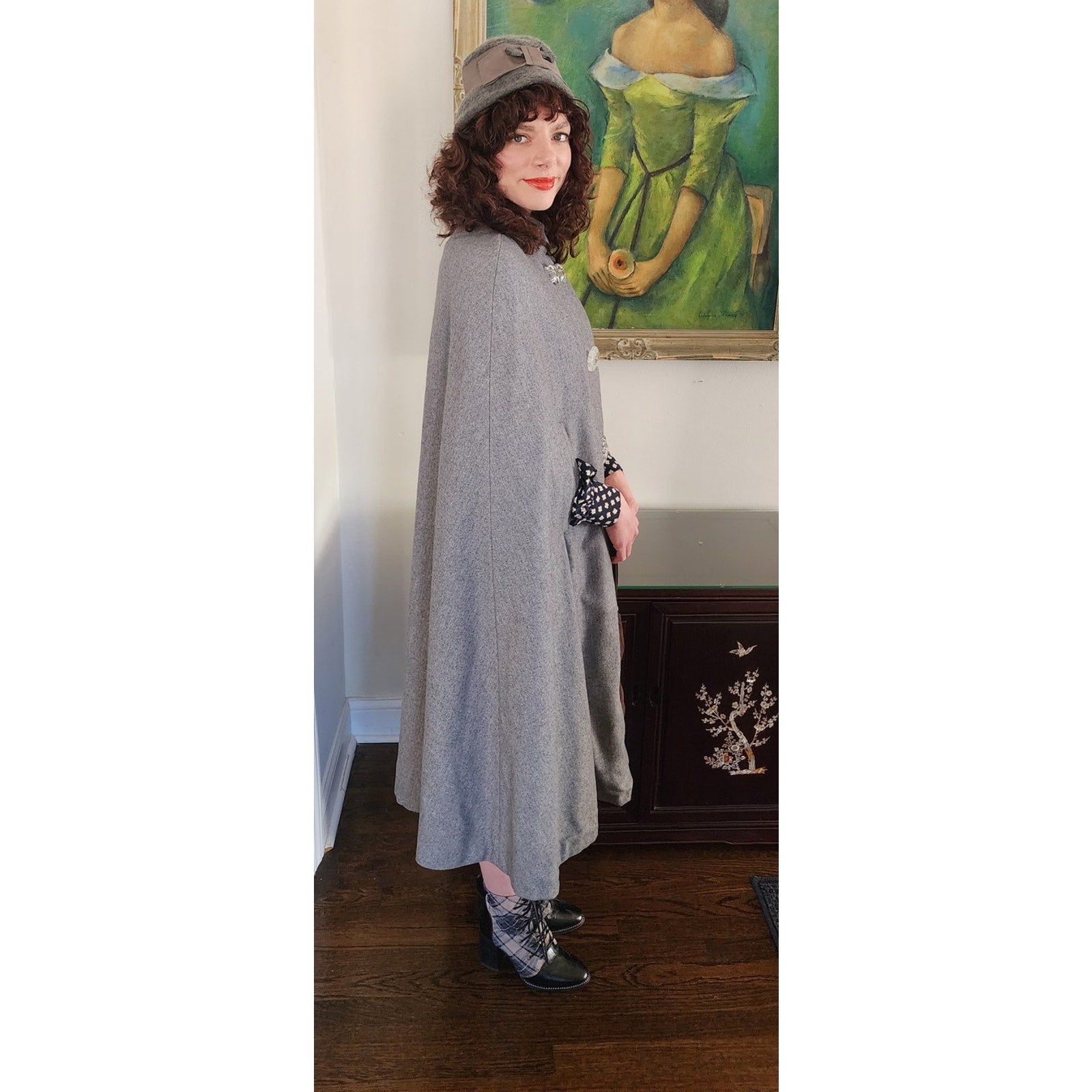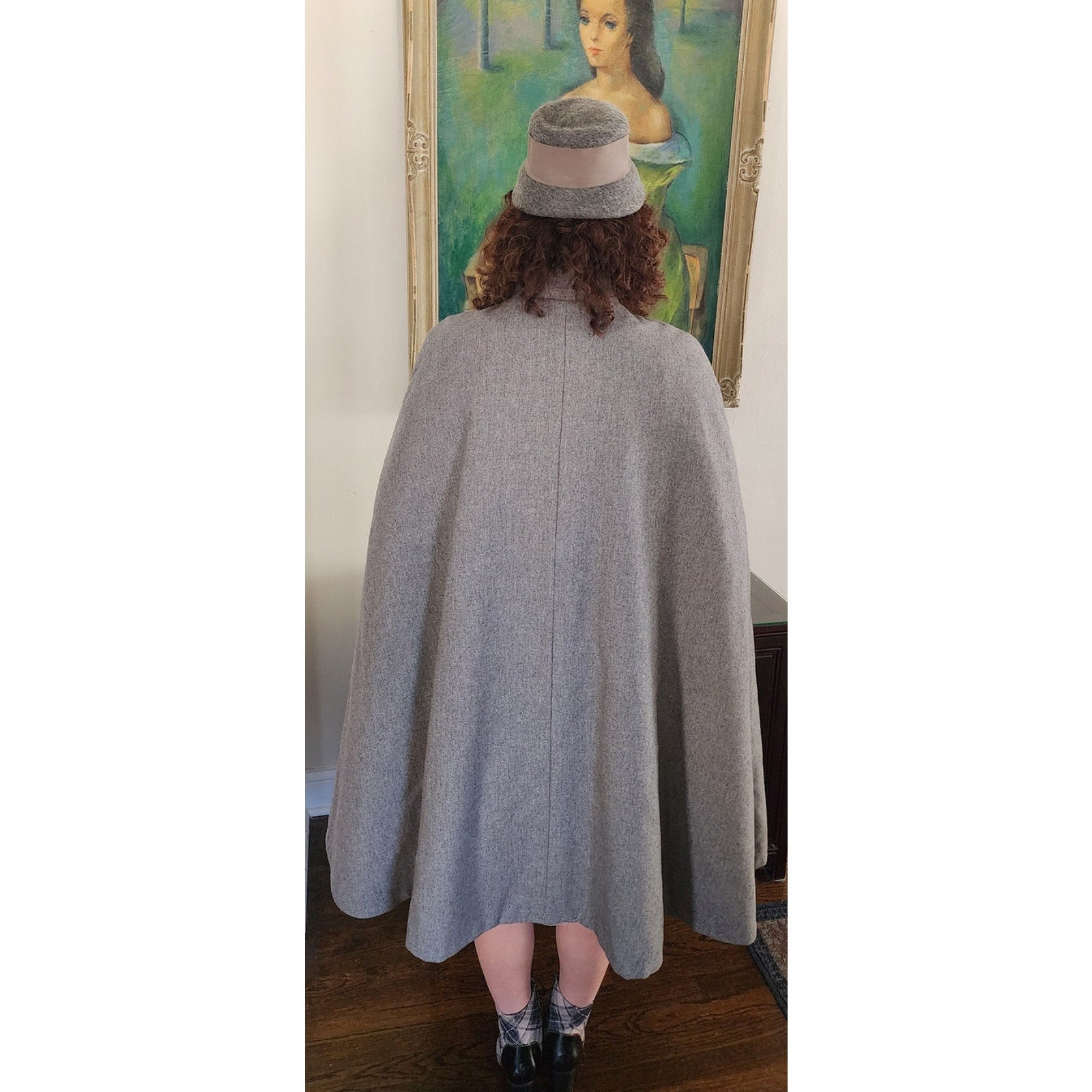 Vintage 60s Cape Coat Gray Wool Cloak w/Fuzzy Liner Mod Style / Med