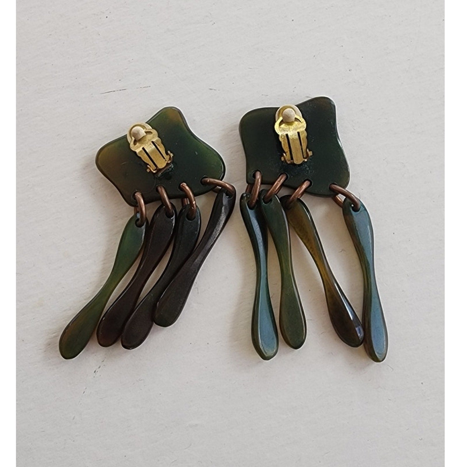 Vintage 60s Dangly Earrings Dark Green Lucite Oversized Clips.