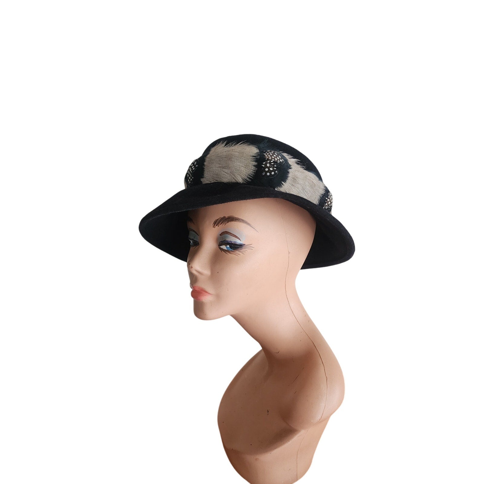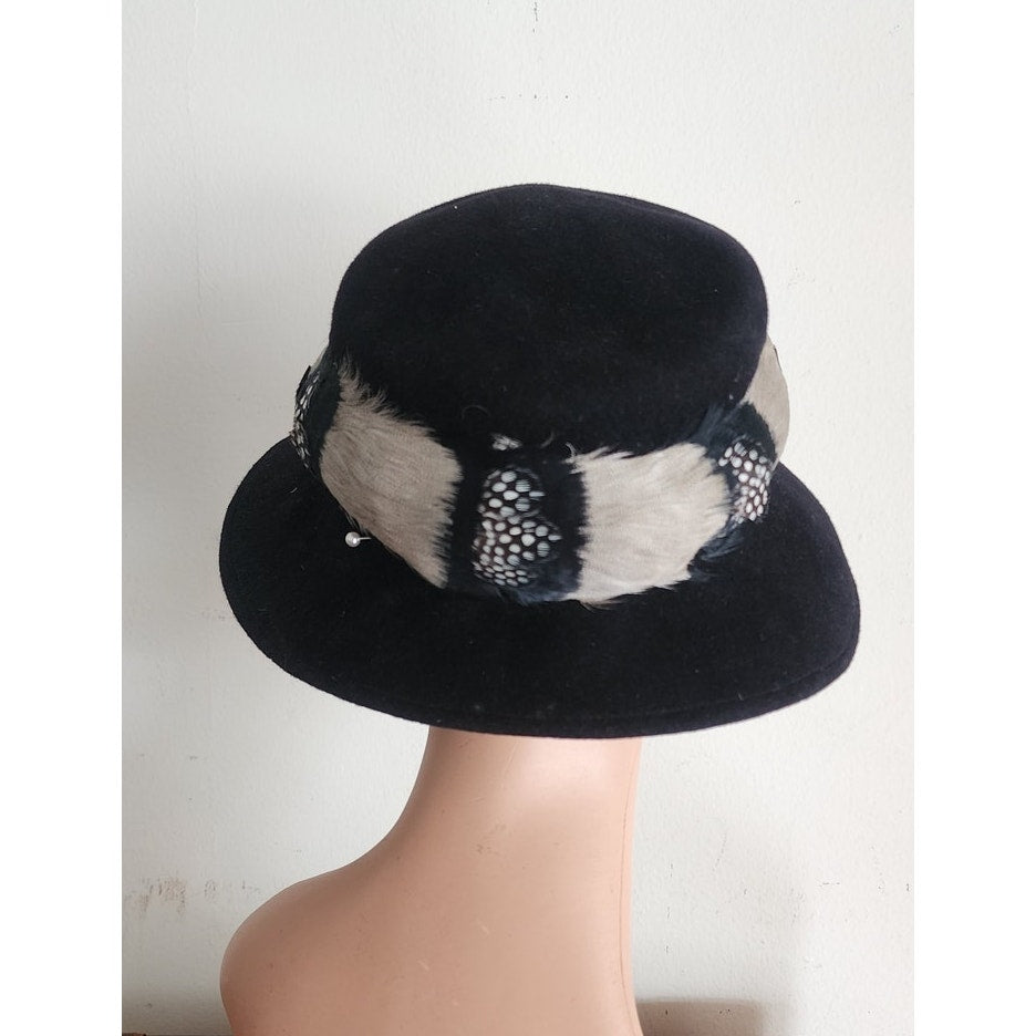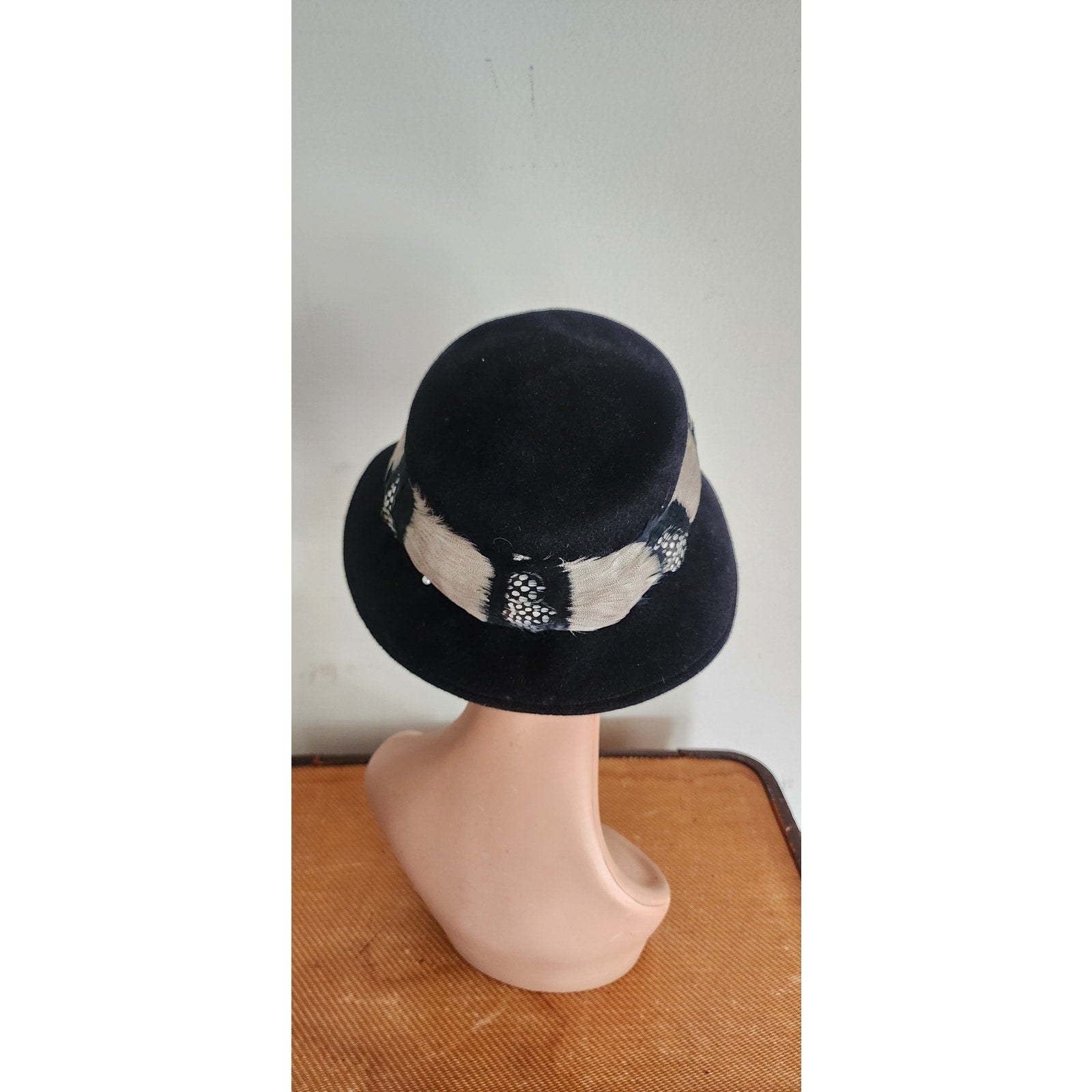 Vintage 60s Ladies Fedora Hat by Gelot Paris Black Felt + Feathers