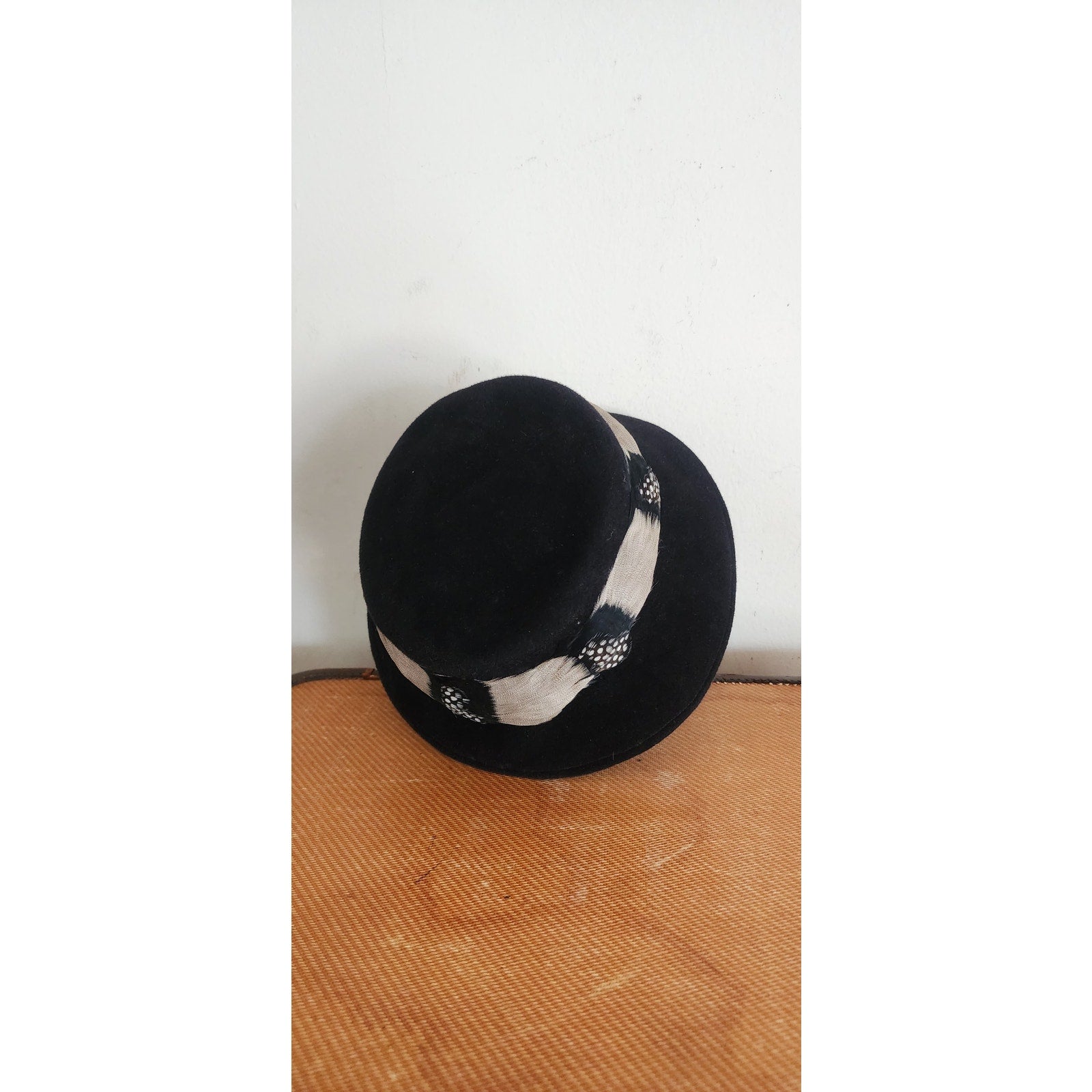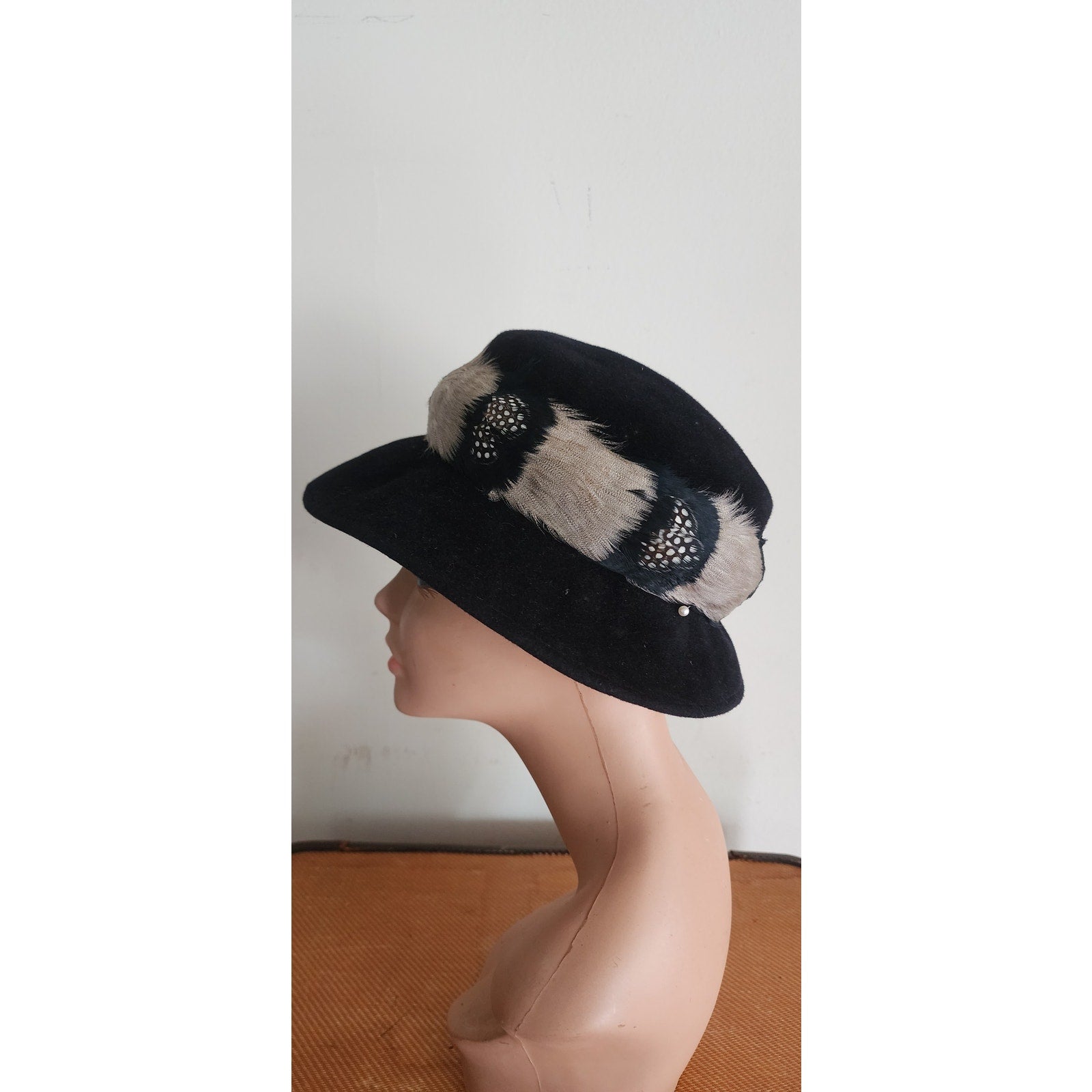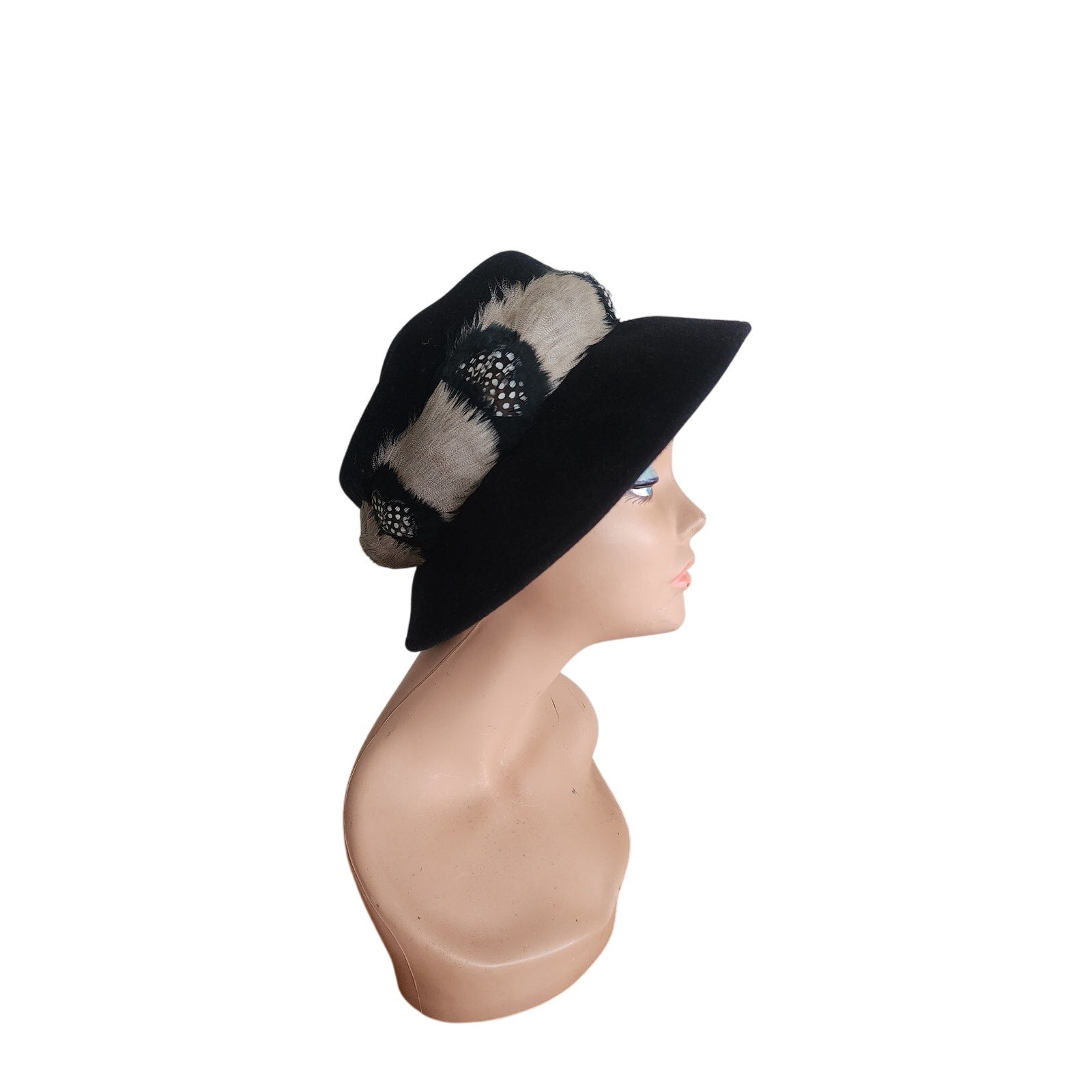 Vintage 60s Ladies Fedora Hat by Gelot Paris Black Felt + Feathers