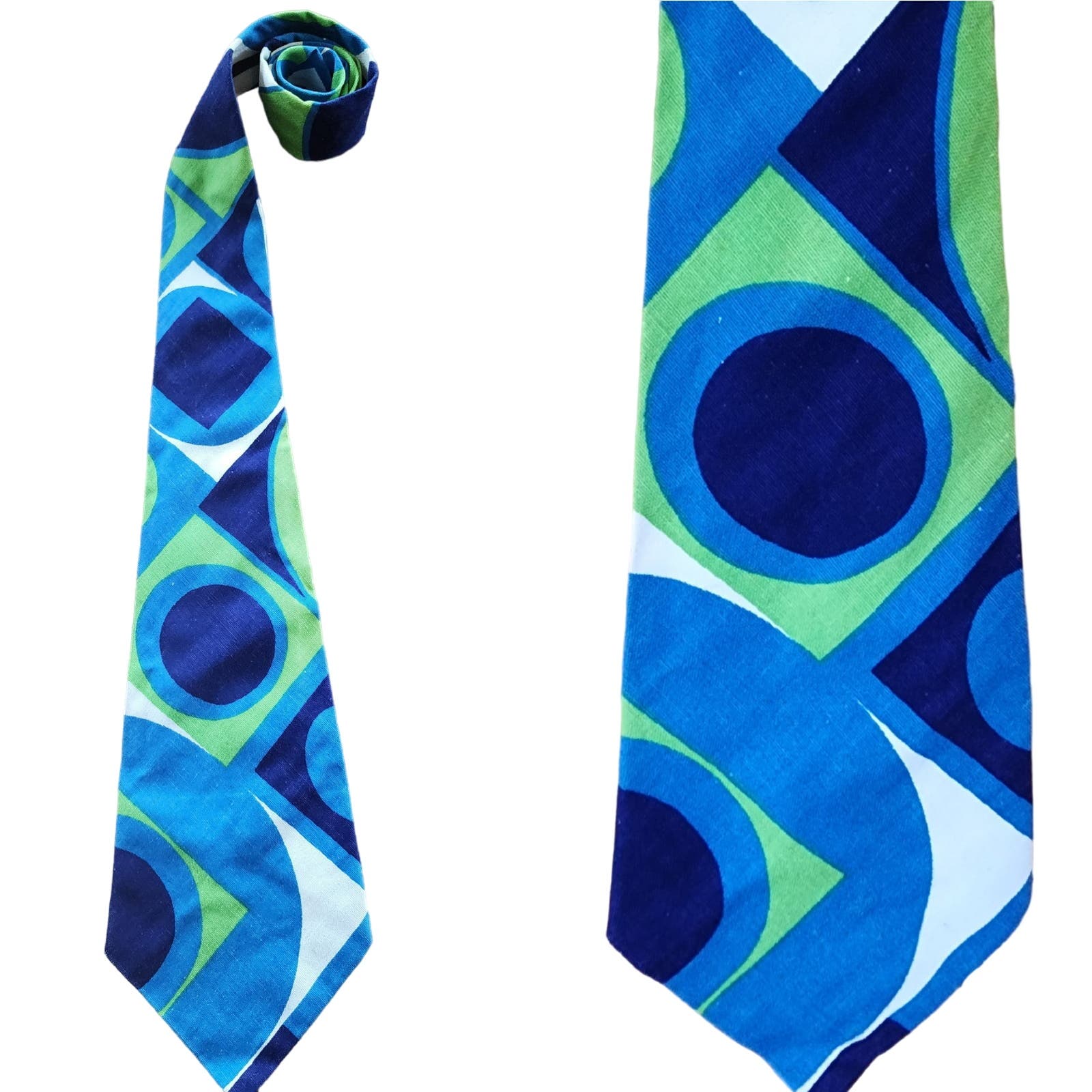 Vintage 60s Mens WideTie Bold Geometric Print Psychedelic Blue Green