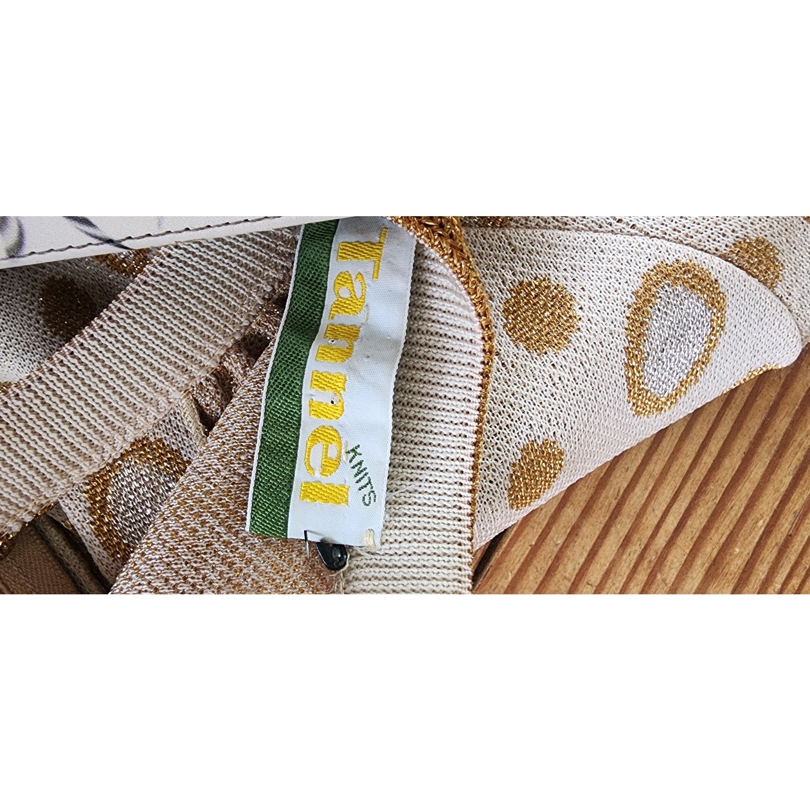 Vintage 60s Metallic Print Dress Beige Gold Tannel Knits / M