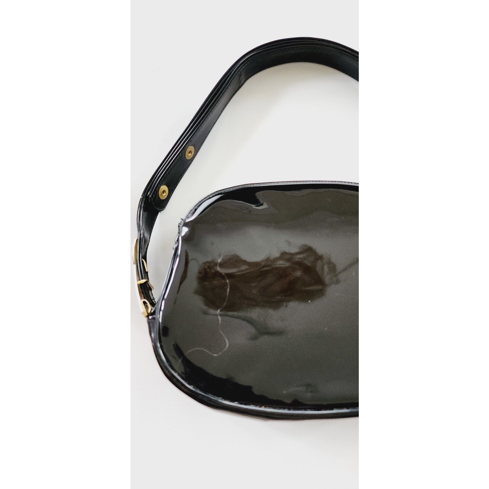 Vintage 60s Mod Black Purse Patent Leather Convertible Shoulder Bag