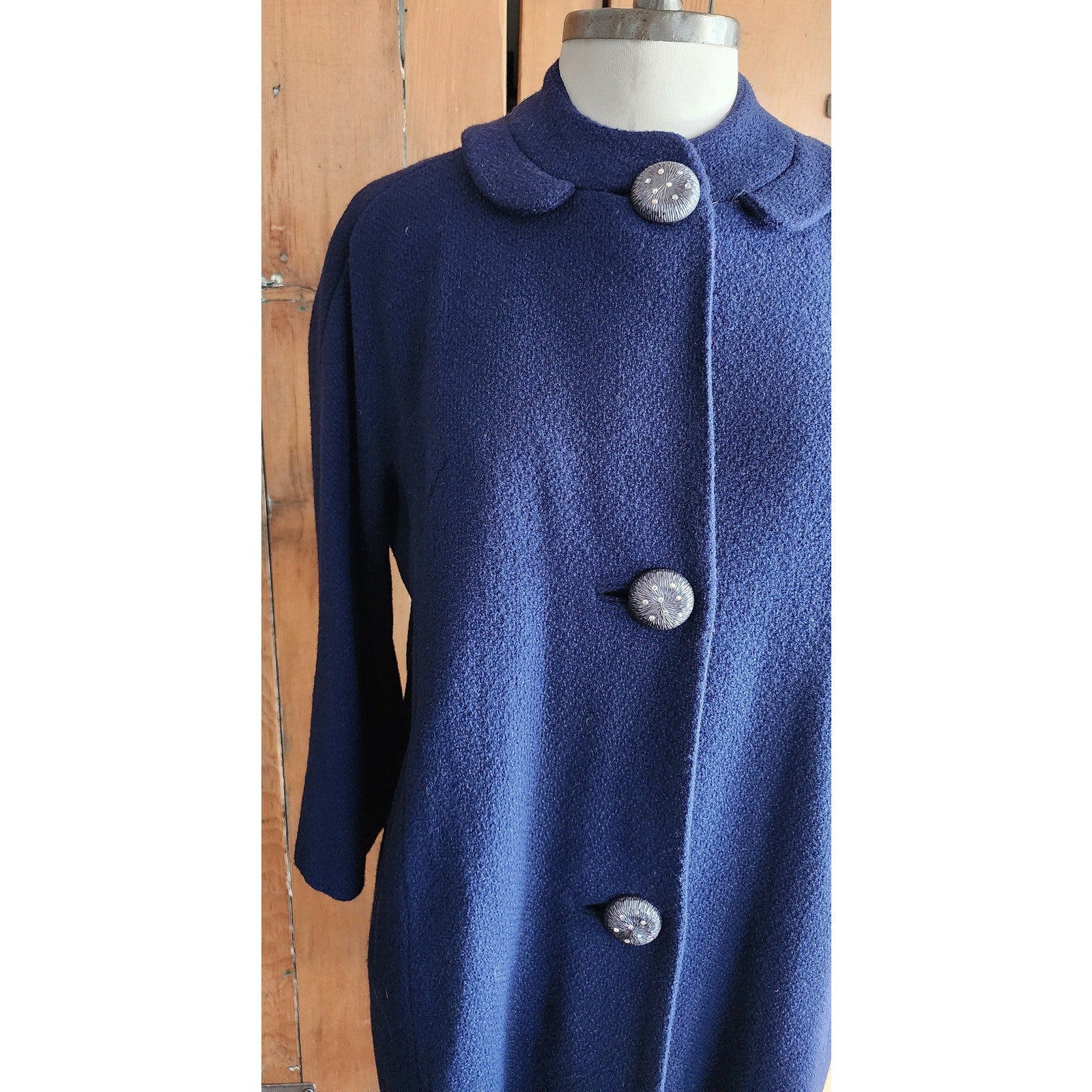 Vintage 60s Navy Blue Coat Rhinestone Buttons Lytton's