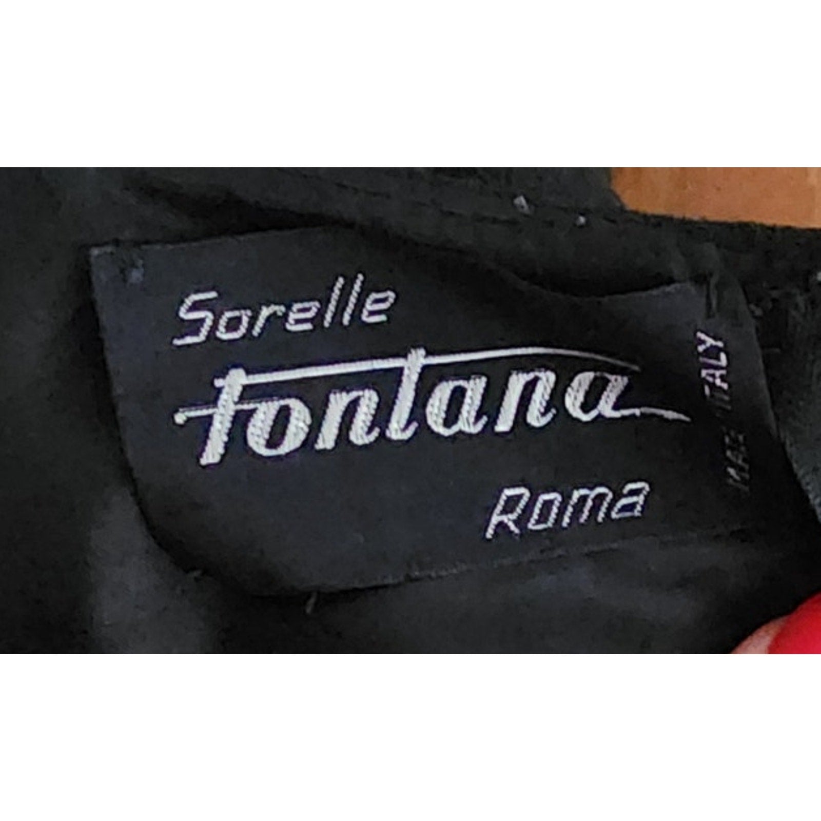 Vintage 60s Sorelle Fontana Dress Black Rayon Crepe w/Pleated Fringe Italian Designer