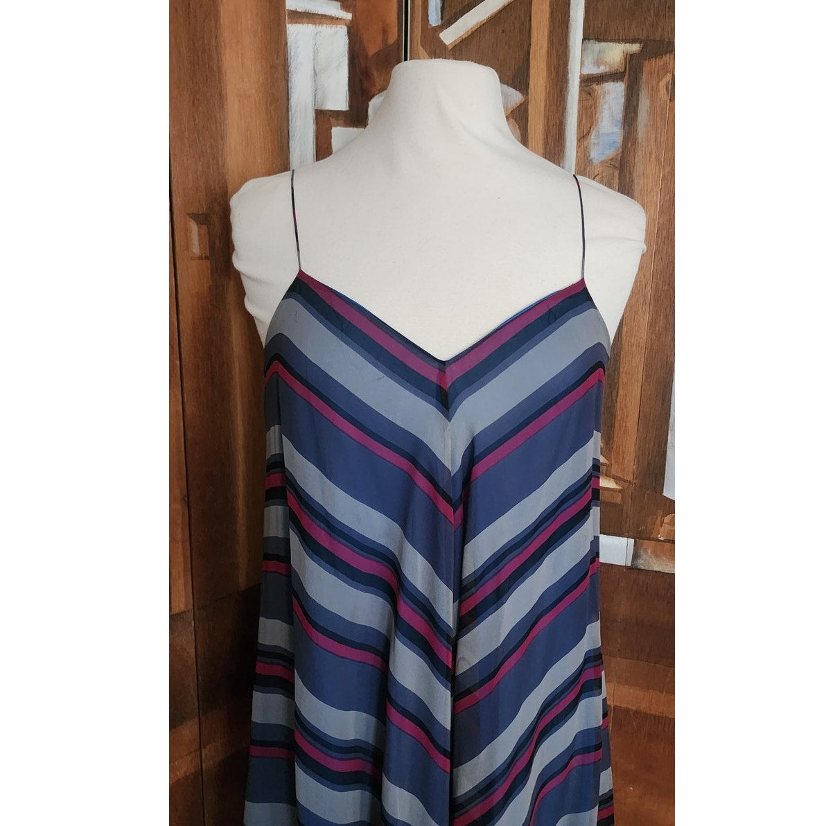 Vintage 70s Chiffon Silk Sun Dress Chevron Stripe Charlotte Ford Spaghetti Strap