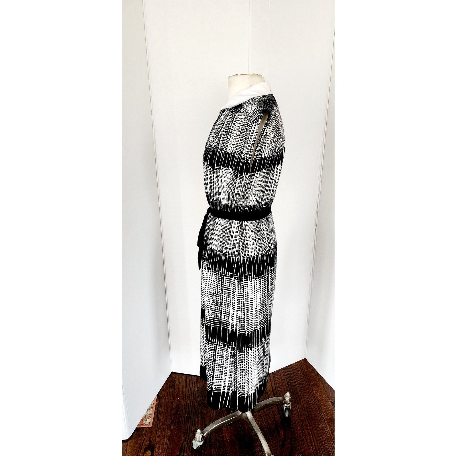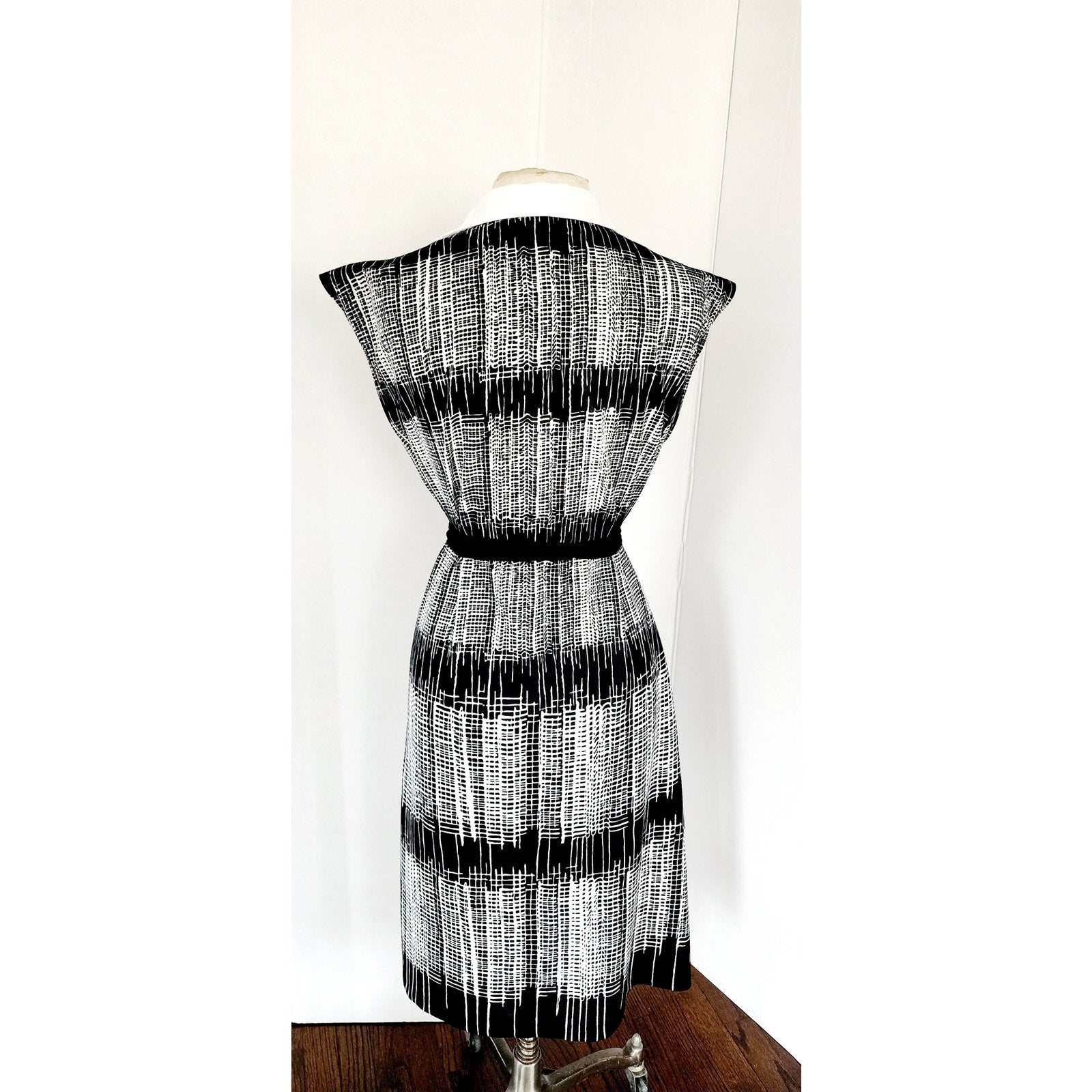 Vintage 70s Day Dress Black White Stripe, Belted,  Lady Page