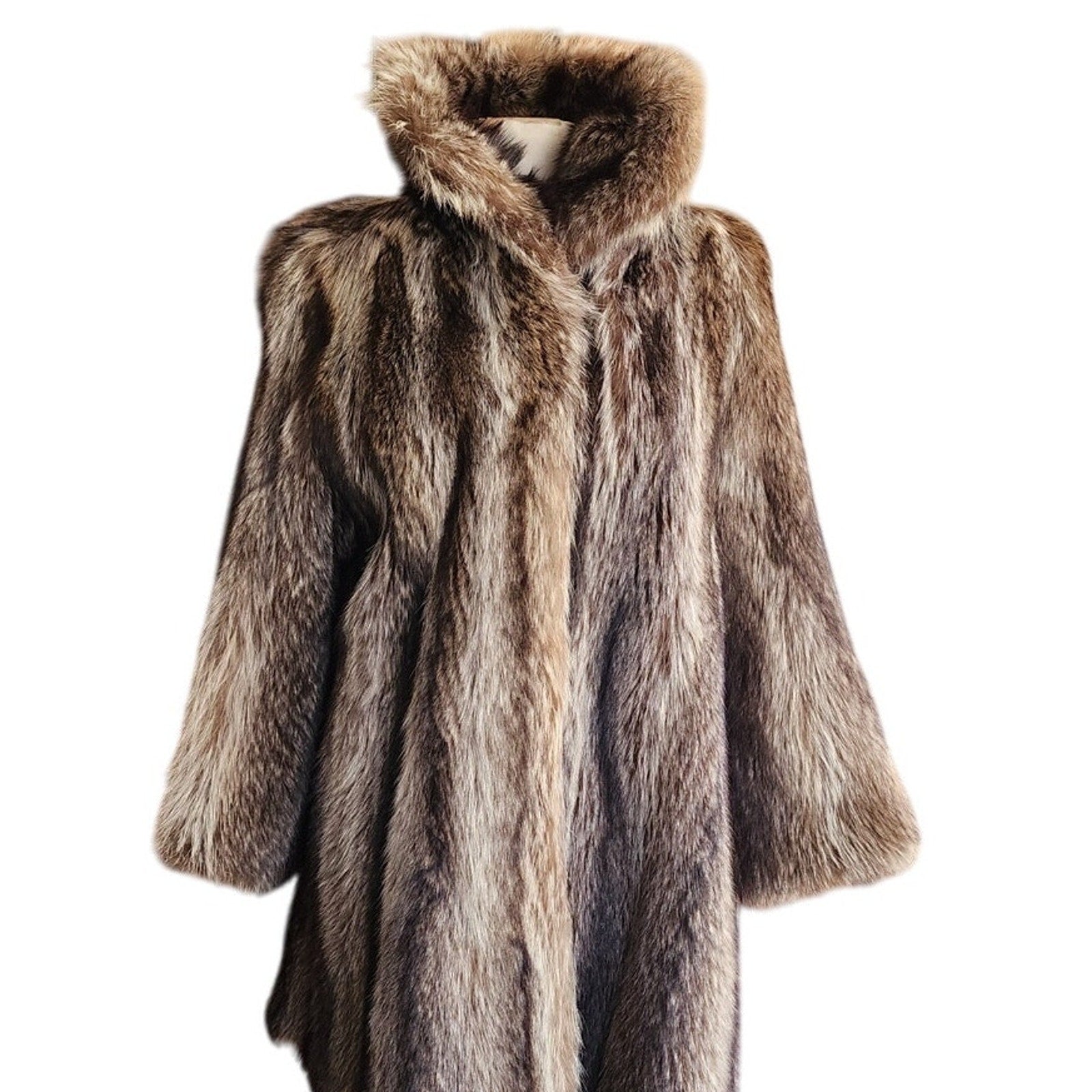 Vintage 70s Fur Coat Silver Tipped Raccoon Hip Length Revillon SATC