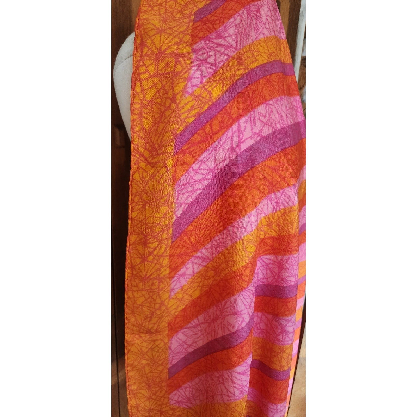 Vintage 70s Liberty of London Silk Scarf Large Orange Pink Diagonal Stripe